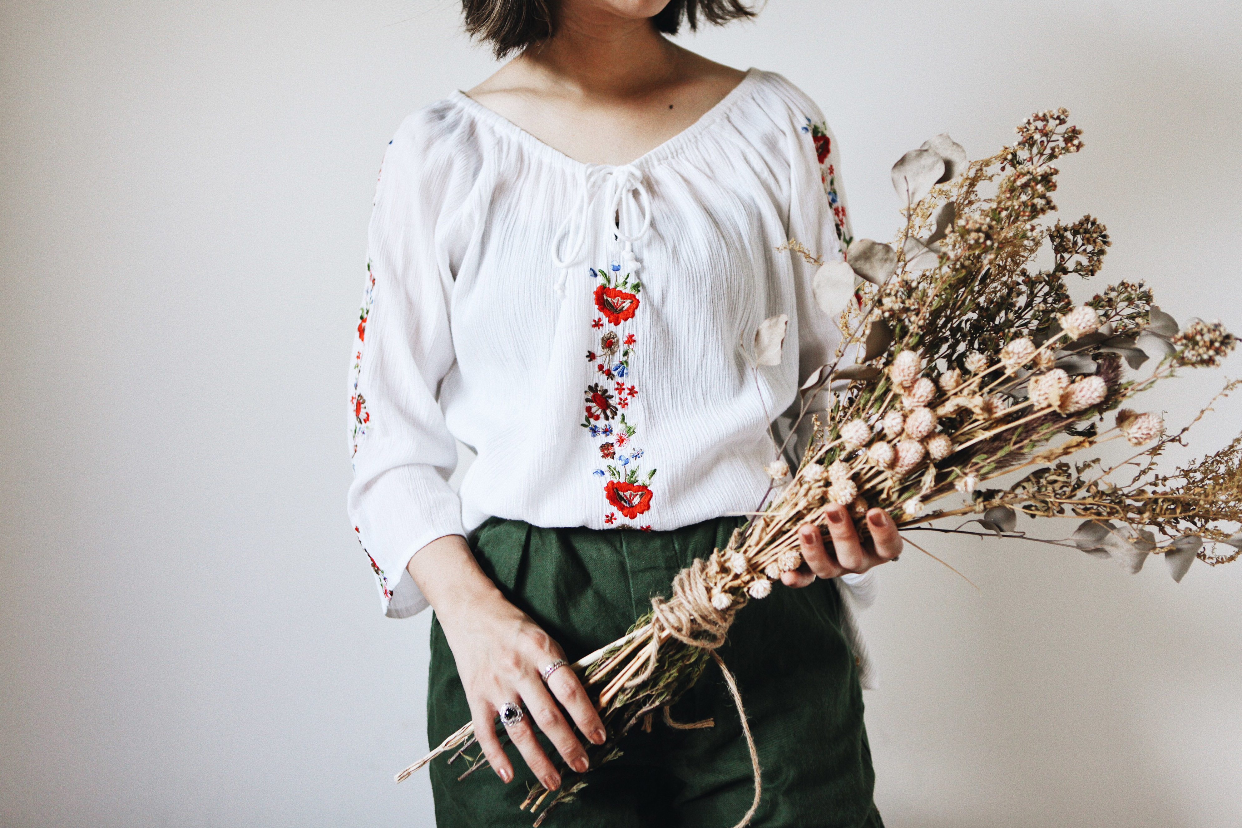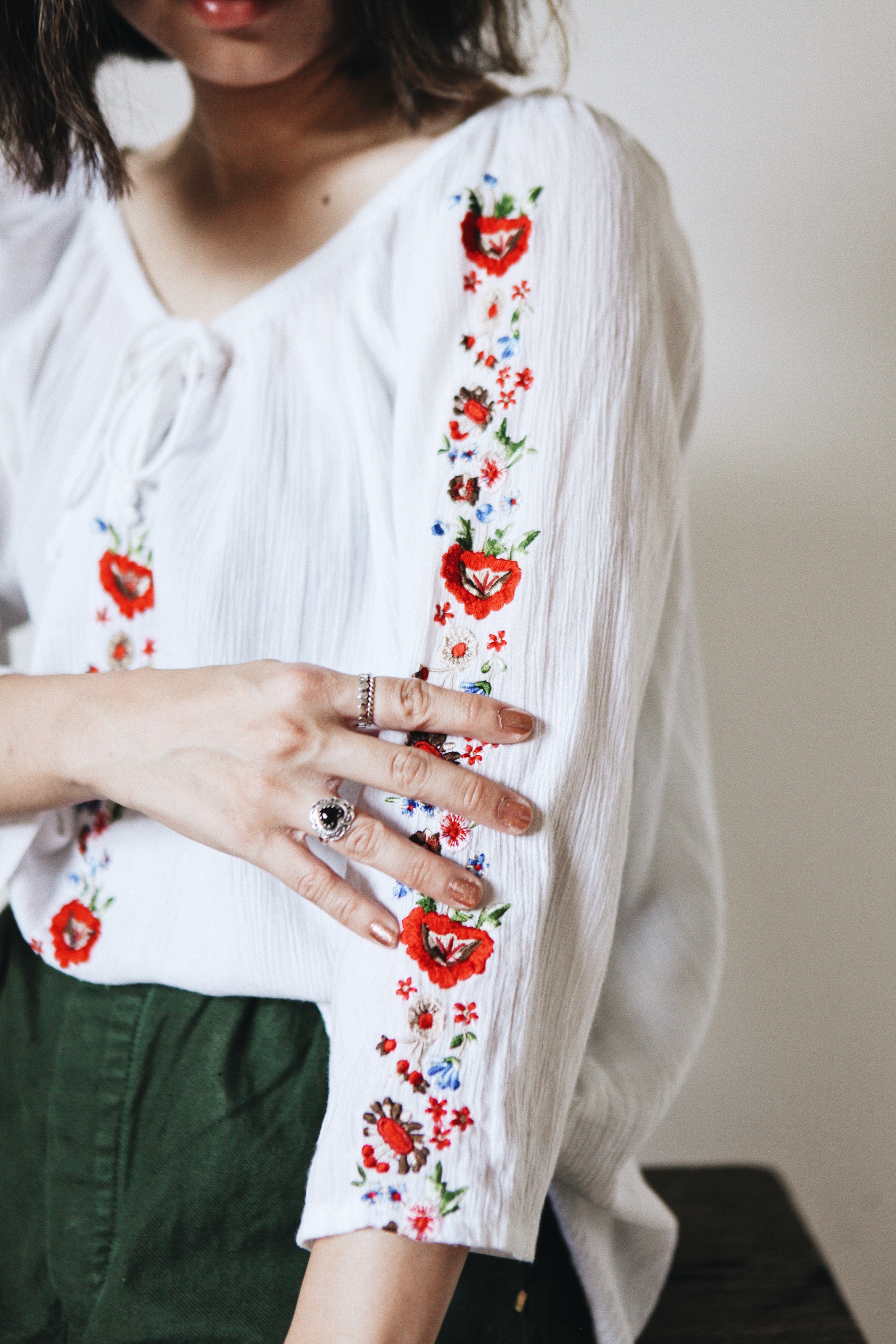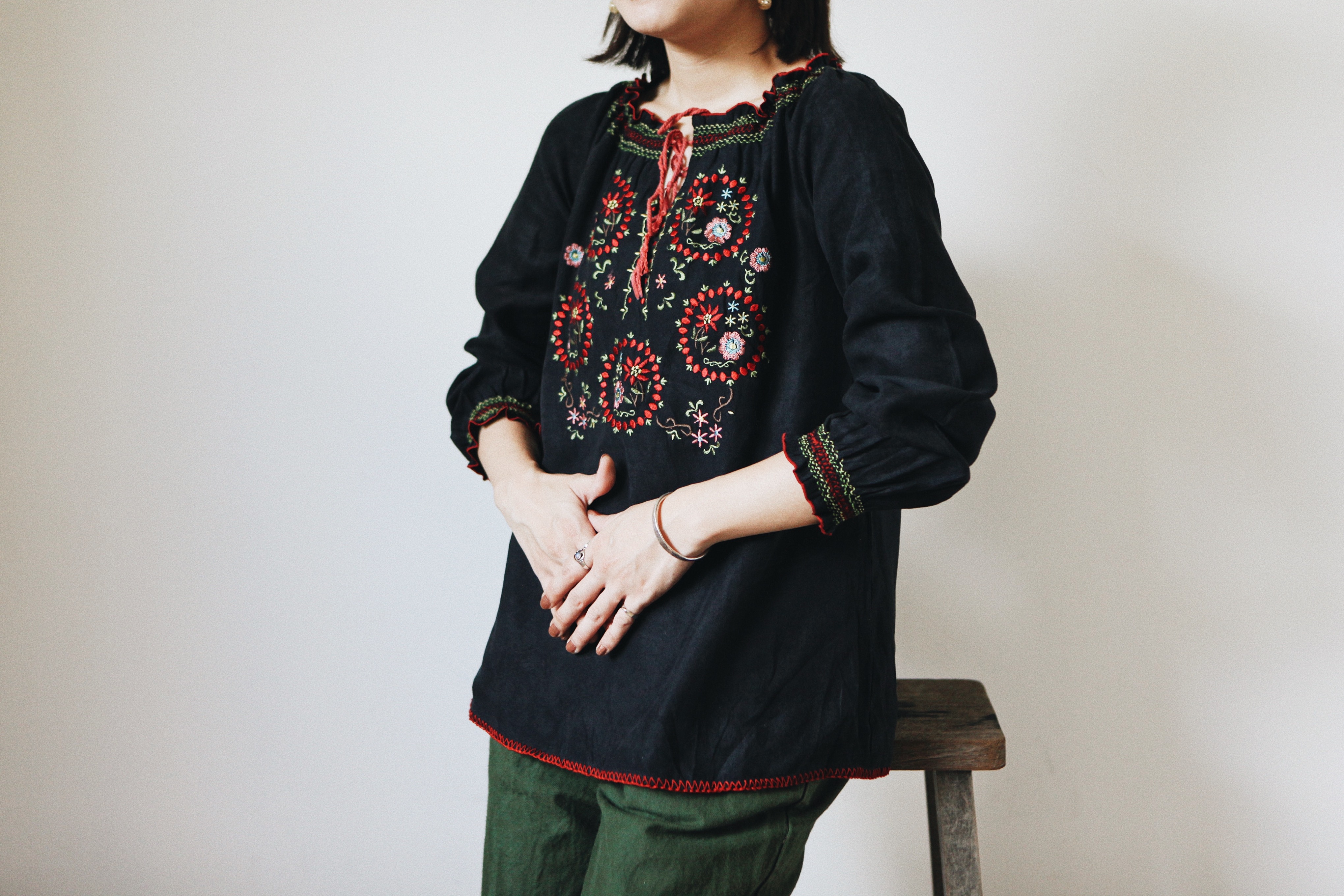 色彩組成較為單純、圖文神秘有氣質的東歐刺繡上衣容易穿出典雅乾淨的味道,適合浪漫的兩人晚餐、文鄒鄒的場合。