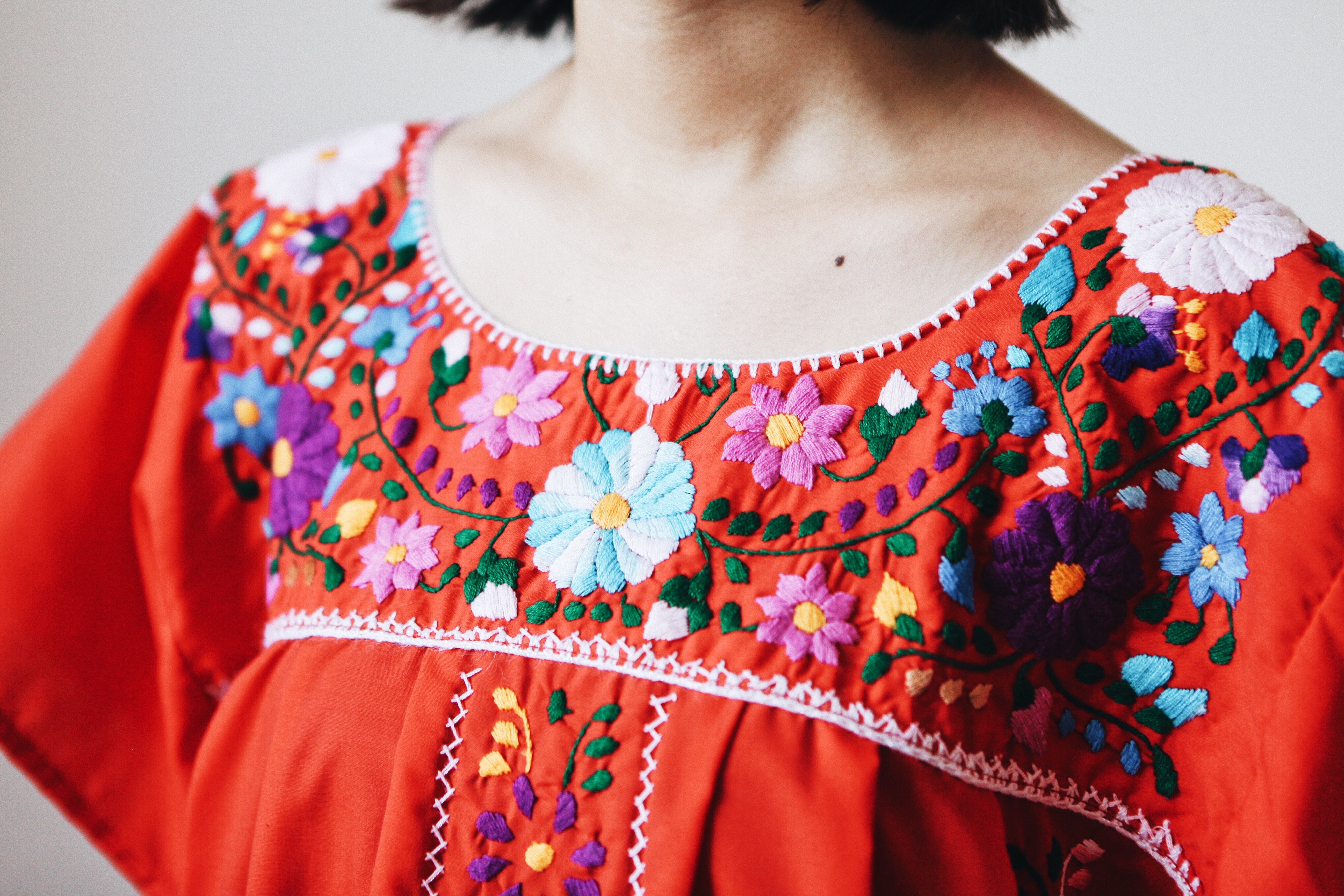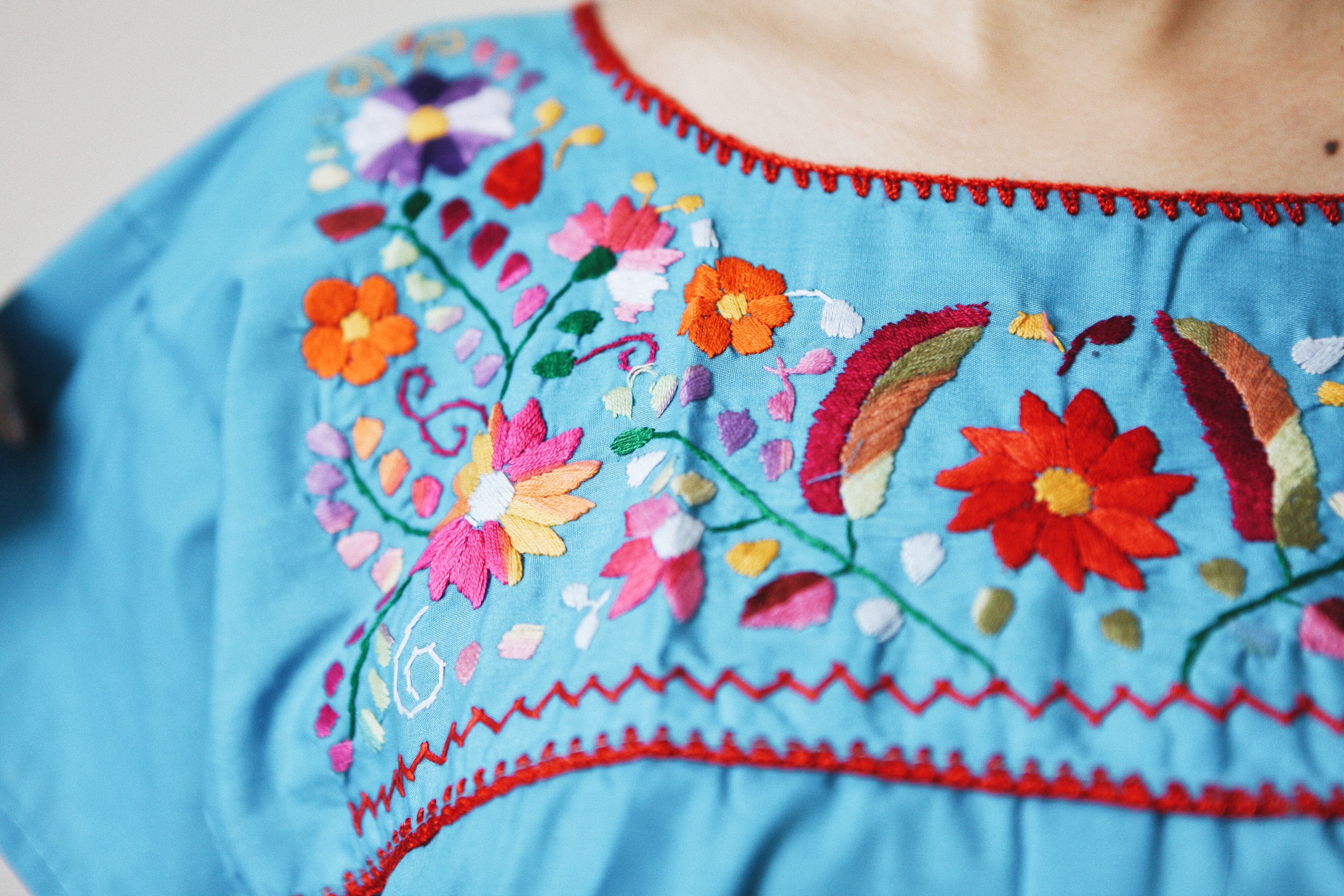 傳統的墨西哥文化具有魔幻與活力的氛圍,服裝色彩鮮豔活潑,飽和的紅色、橙色、綠色、黃色大面積的映入眼前,讓人印象深刻。在離墨西哥城約4小時車程的普埃布拉州(Puebla)與瓦哈卡州,仍保留著致力於刺繡藝術的文化。刺繡在此又稱為「生活工藝」,優秀的編織者在社區中的地位備受尊崇,一代傳承一代,婦女為家人編織製作服裝、禮儀服,小女孩從小便模仿母親準備紗線、編織、操作織布機,在16歲便是一名熟稔的編織工匠。