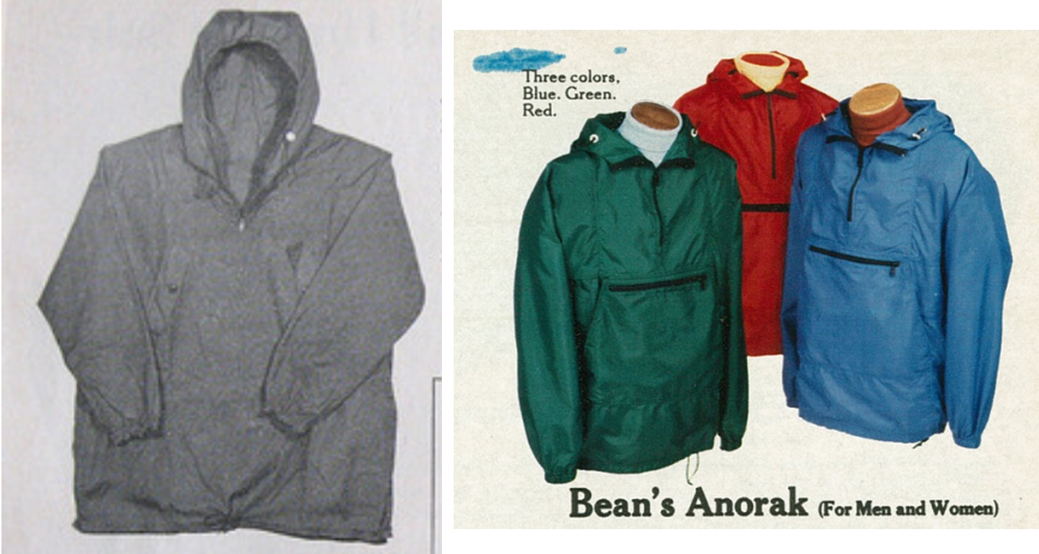 Anorak在L.L. Bean的服裝發展上也沒有缺席過,最早的款式在1960年代有紀錄,胸前雙口袋、下擺束口的連帽款罩衫,使用60/40的棉所製成。