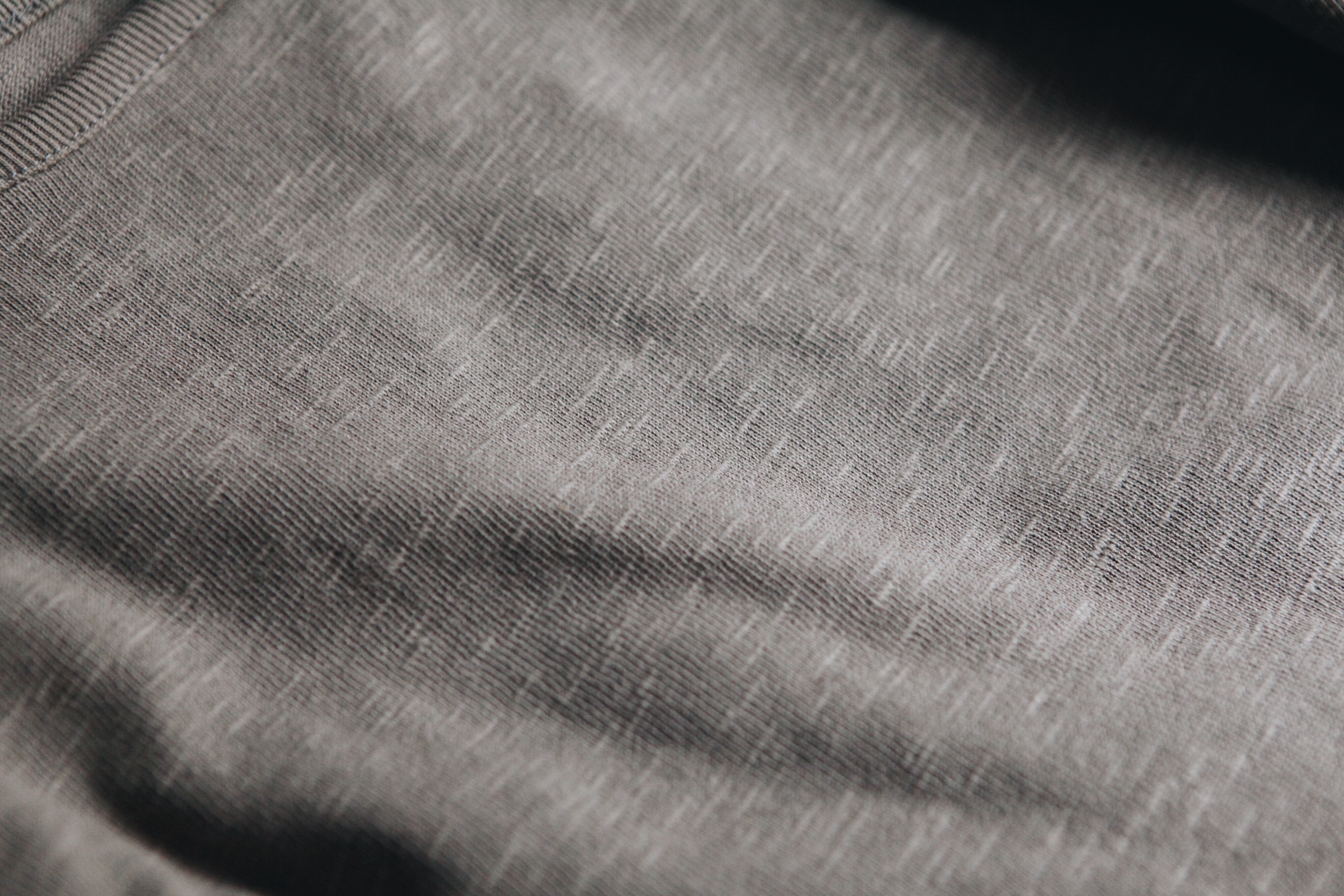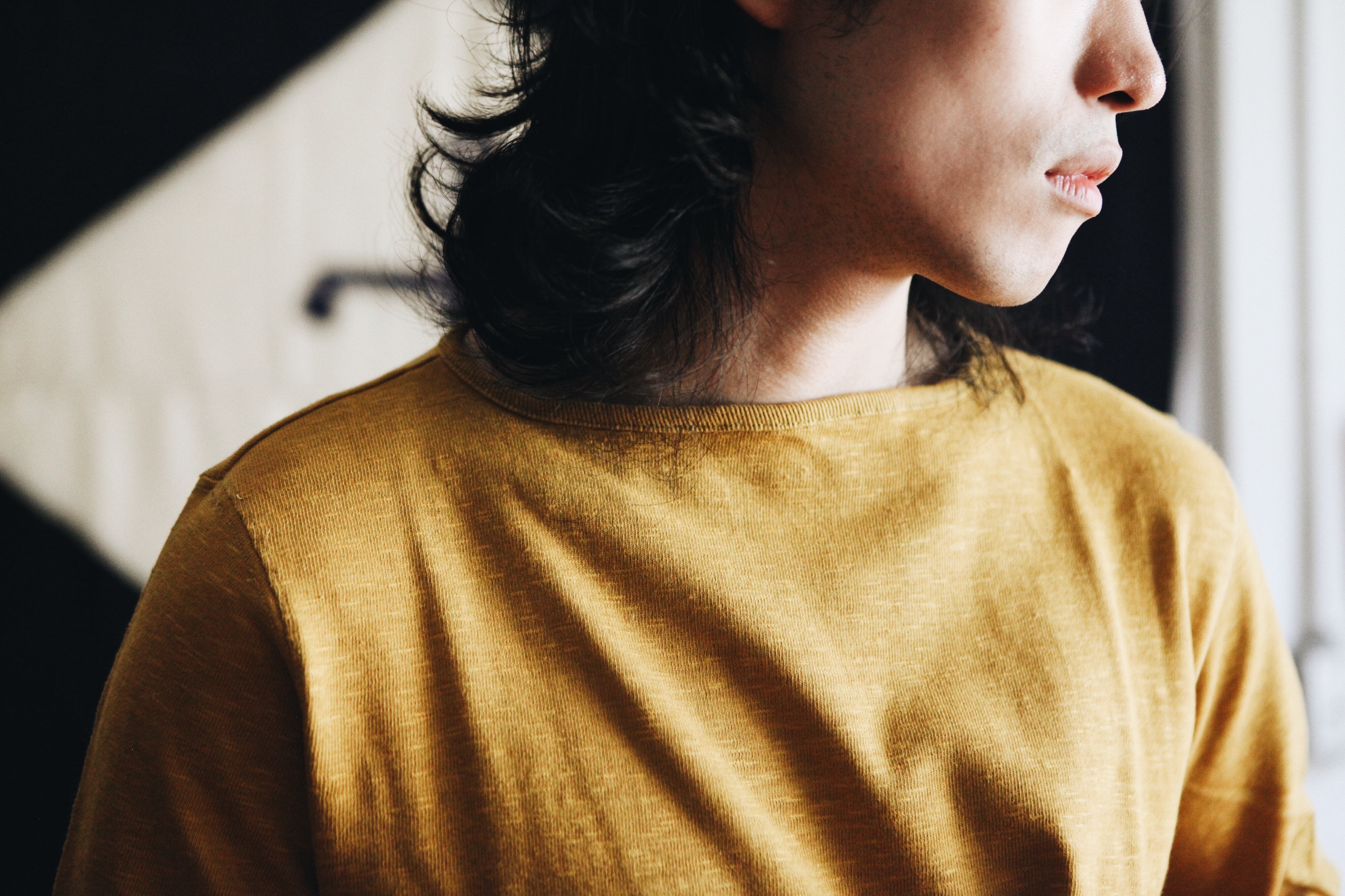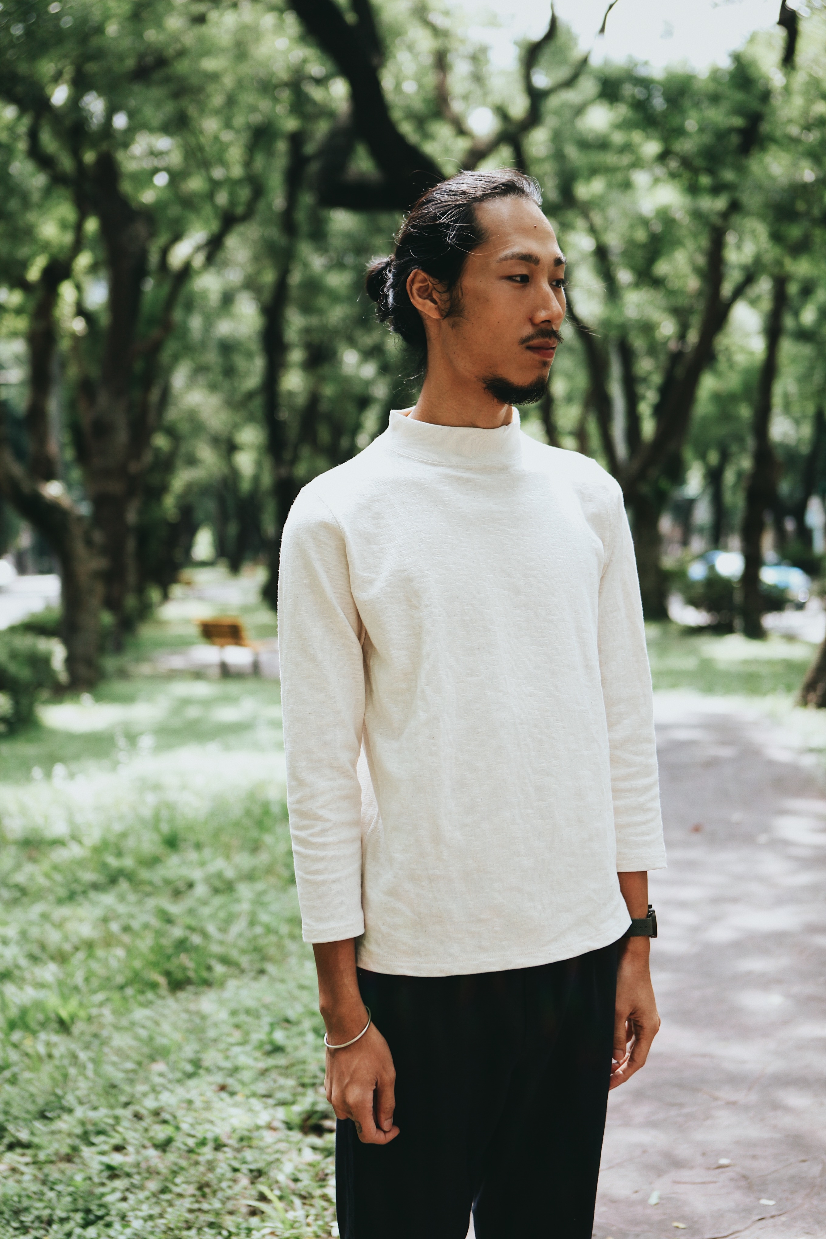 HDCS Cotton比起一般T-shirt的棉布製作速度更慢,質地更加飽滿、柔軟且觸感佳;竹節紗密度高但透氣保暖讓肌膚良好呼吸,最特別的是布料表層摸得到起伏的橫向平紋,是老式織布機才能編織出的獨特手感;而Organic SRAB Cotton使用美國優質有機棉花,從紡紗開始,到老式針織機經緯編織、縫紉及最後的染製都在日本嚴謹做工下完成。