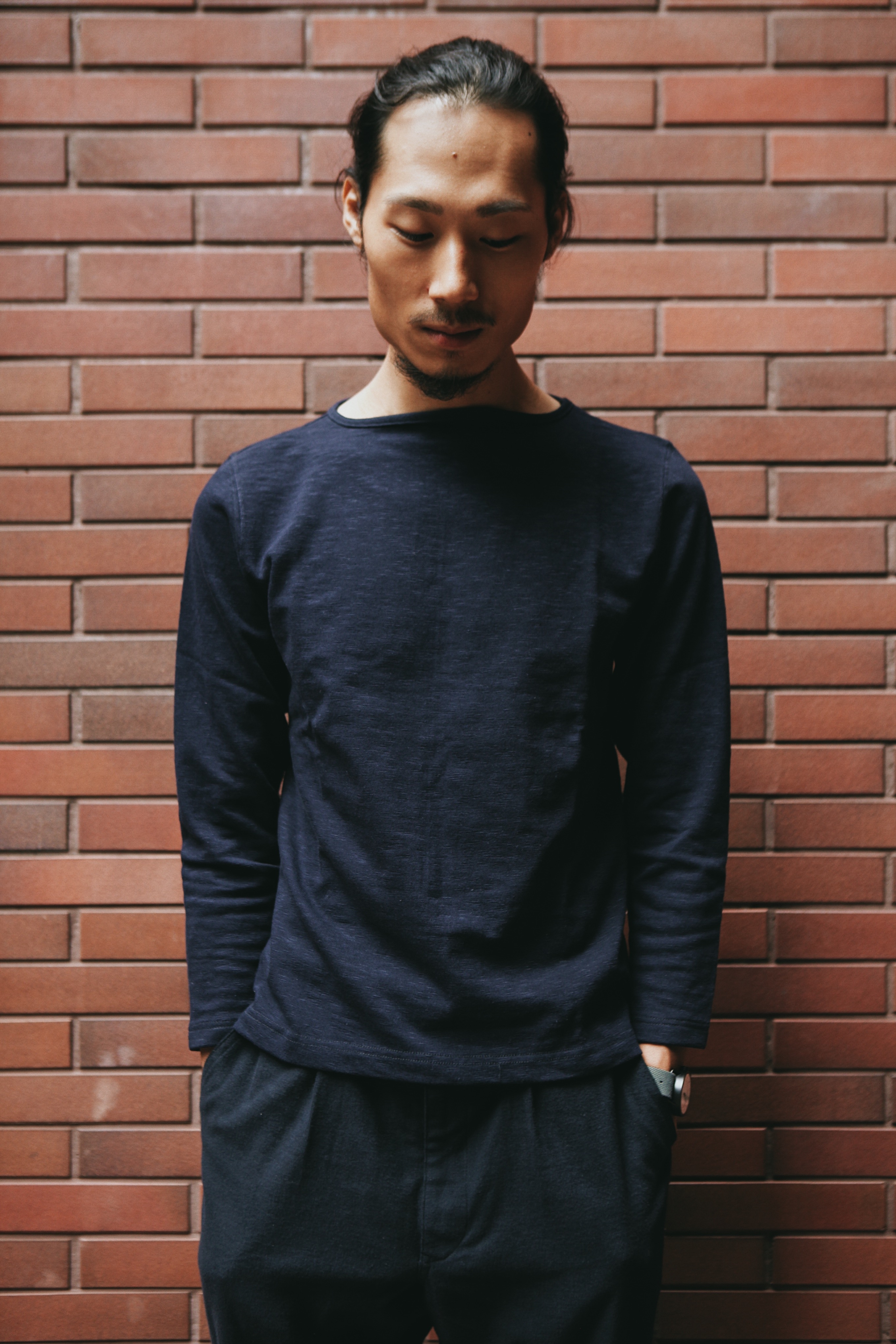 源自西班牙巴斯克地區的傳統船領針織衫,原本是船員、水手穿的工作服。平寬的領口方便在落水的時候快速的褪下;下擺兩側約兩公分的開衩增添版型變化,內搭衣服時層次感更好;使用高密度竹節棉紗,乾燥且韌性極佳;顏色上可看到平紋起伏的深淺變化,平常單穿或內搭T-shirt、襯衫都能做出極有層次的組合。