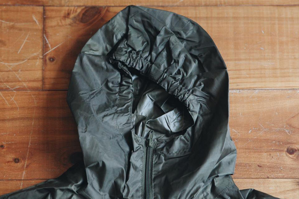 這款復刻自法軍的套頭罩衫,外觀即具有型與搭配性,整件材質為防水的聚酯纖維因此相當輕薄;將拉鍊完全豎起恰好掩住口鼻;而連帽、袖口、下襬的彈性縮口具防風防水效果;胸前附有拉鍊口袋,同時還能將雨衣反摺入口袋成為小包的隨身雨衣,是雨季不可或缺的良好利器。