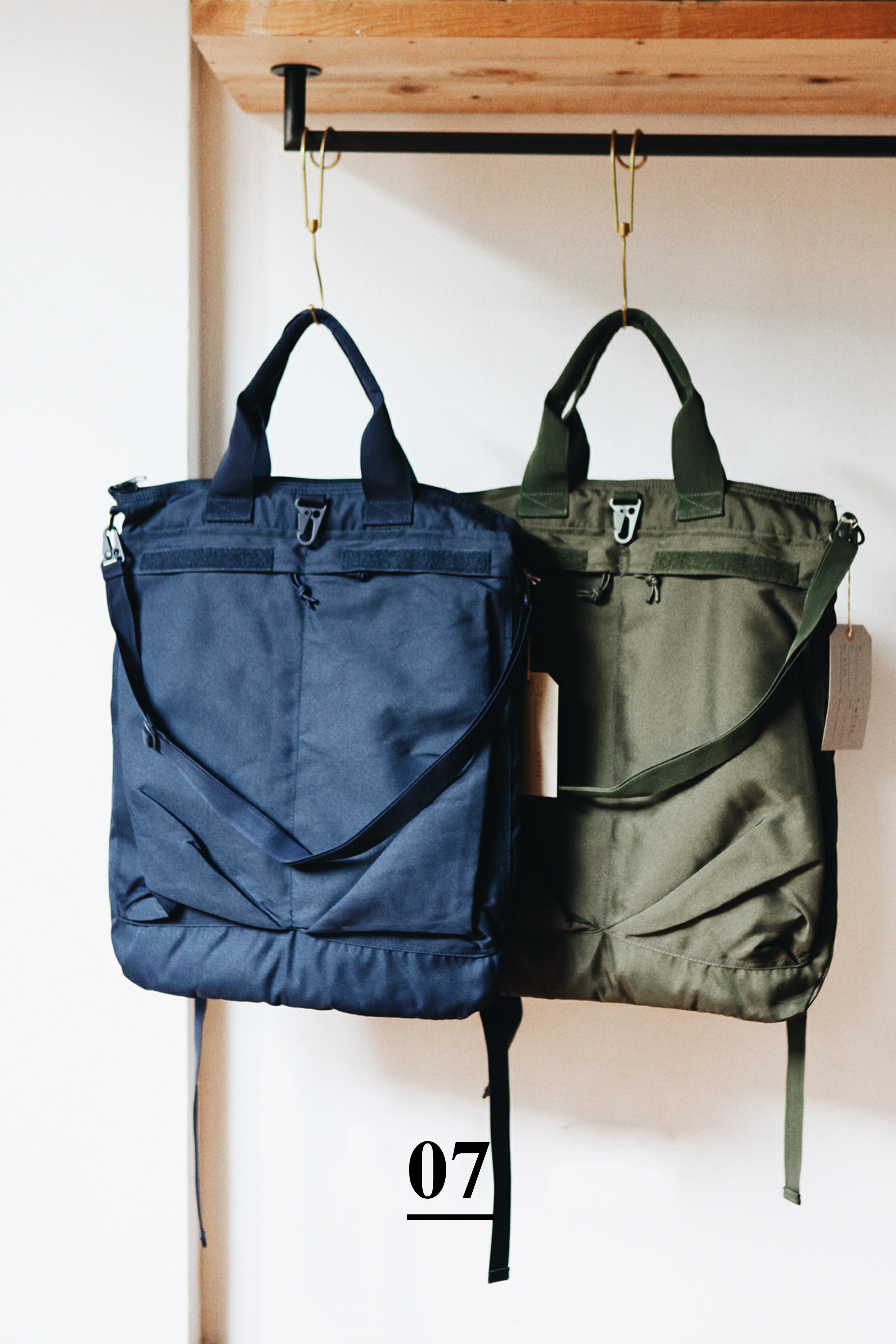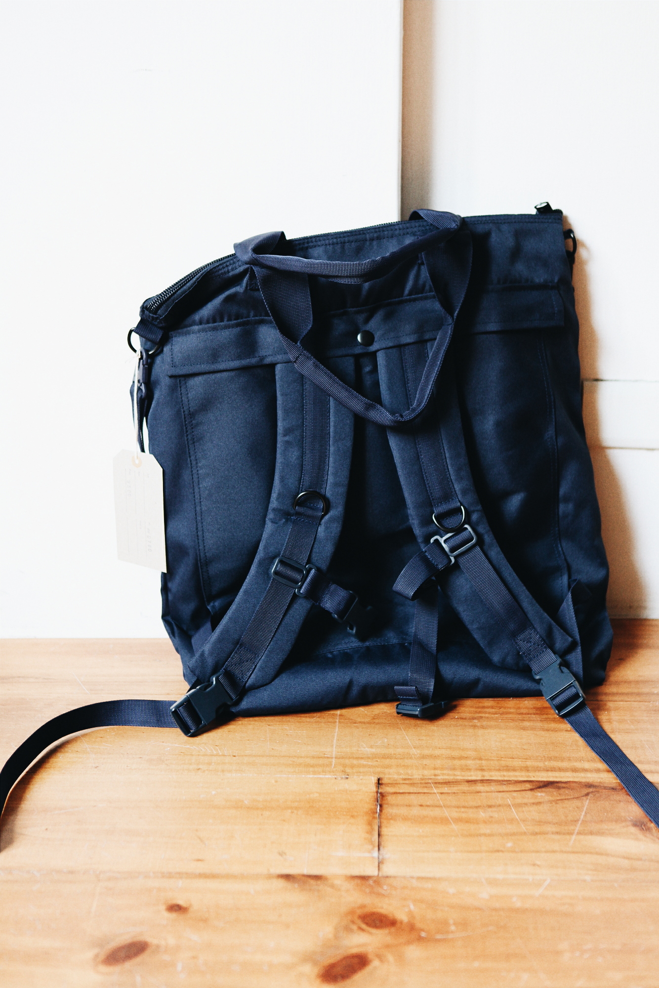 這款包包前身是美軍空軍裝頭盔用的軍包,採用尼龍防潑水材質,內層附有長型暗袋,並有加厚棉料,非常適合盛放貴重的筆電、平板等器物;可以手提、肩背、後背,是款機能性、外貌兼具的優質型包,尤其在細雨綿綿的天氣也不必擔心裡面貴重的物品會淋濕。