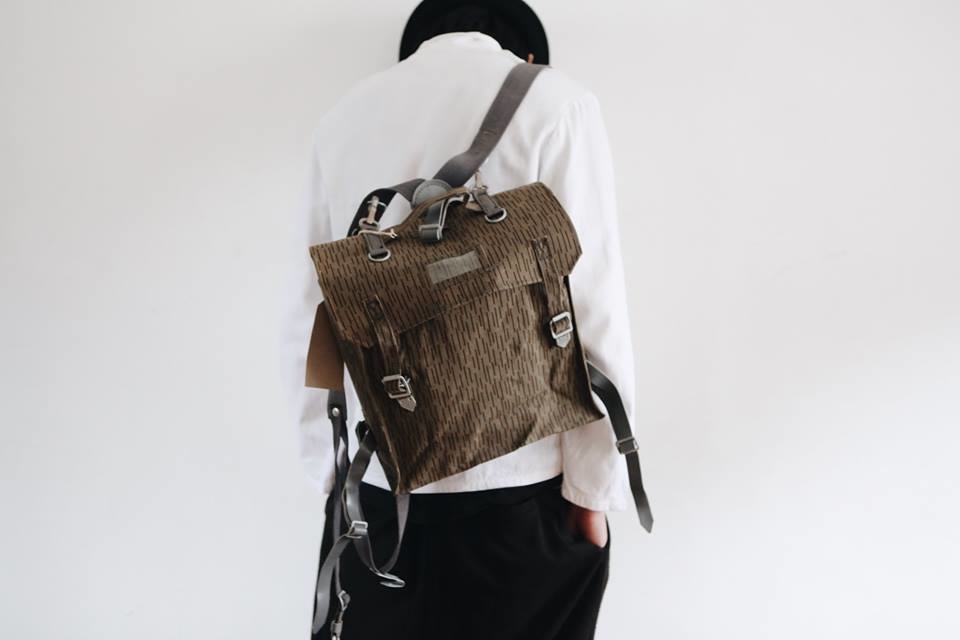 由瑞典軍方發行的紅十字醫療包,由厚磅的防潑水帆布製成,內裡有兩個大的內袋,方正的書包外型,結合軍品的帥與書卷氣息,側身背著氣質絕佳。