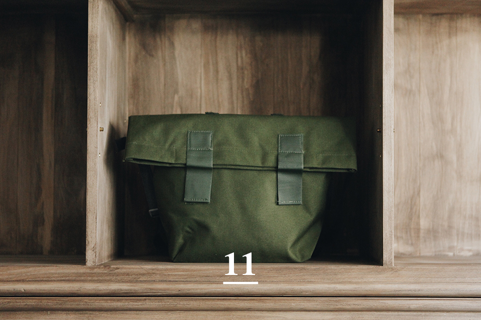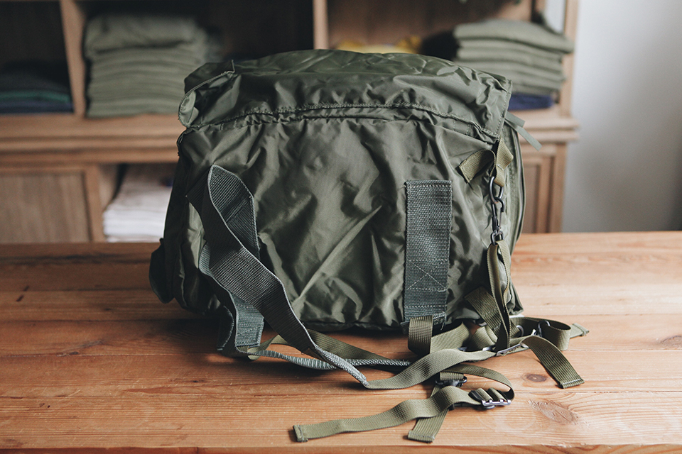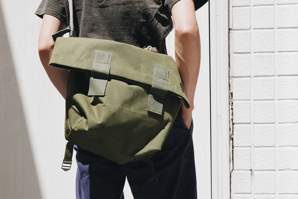 包身恰到好處的大小,不像登山軍用包那麼大,原本提供給士兵在野外戰爭、巡邏之時裝放食物。貼身的外層防潑水設計、內層更是完全防水,適合天天揹上街。