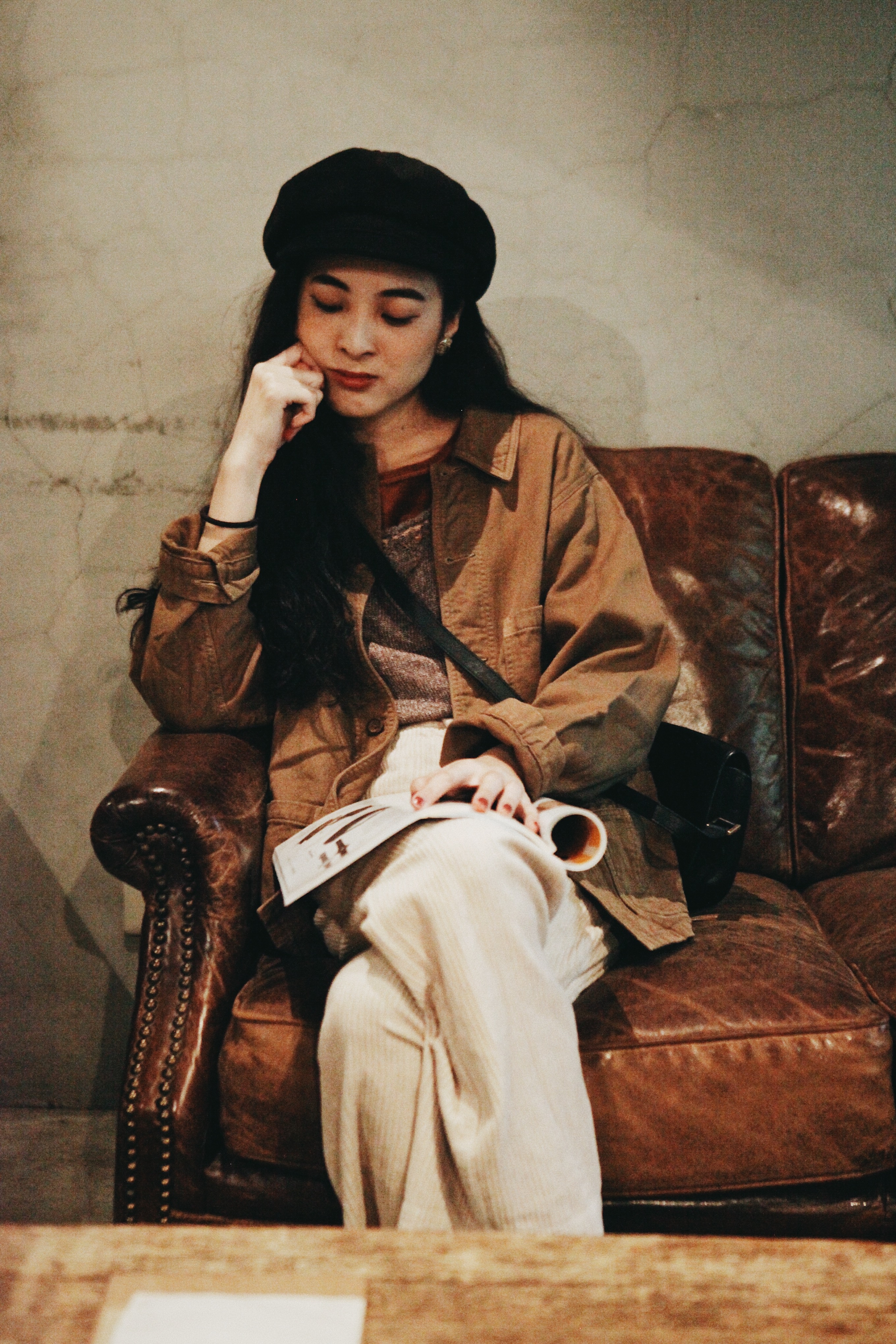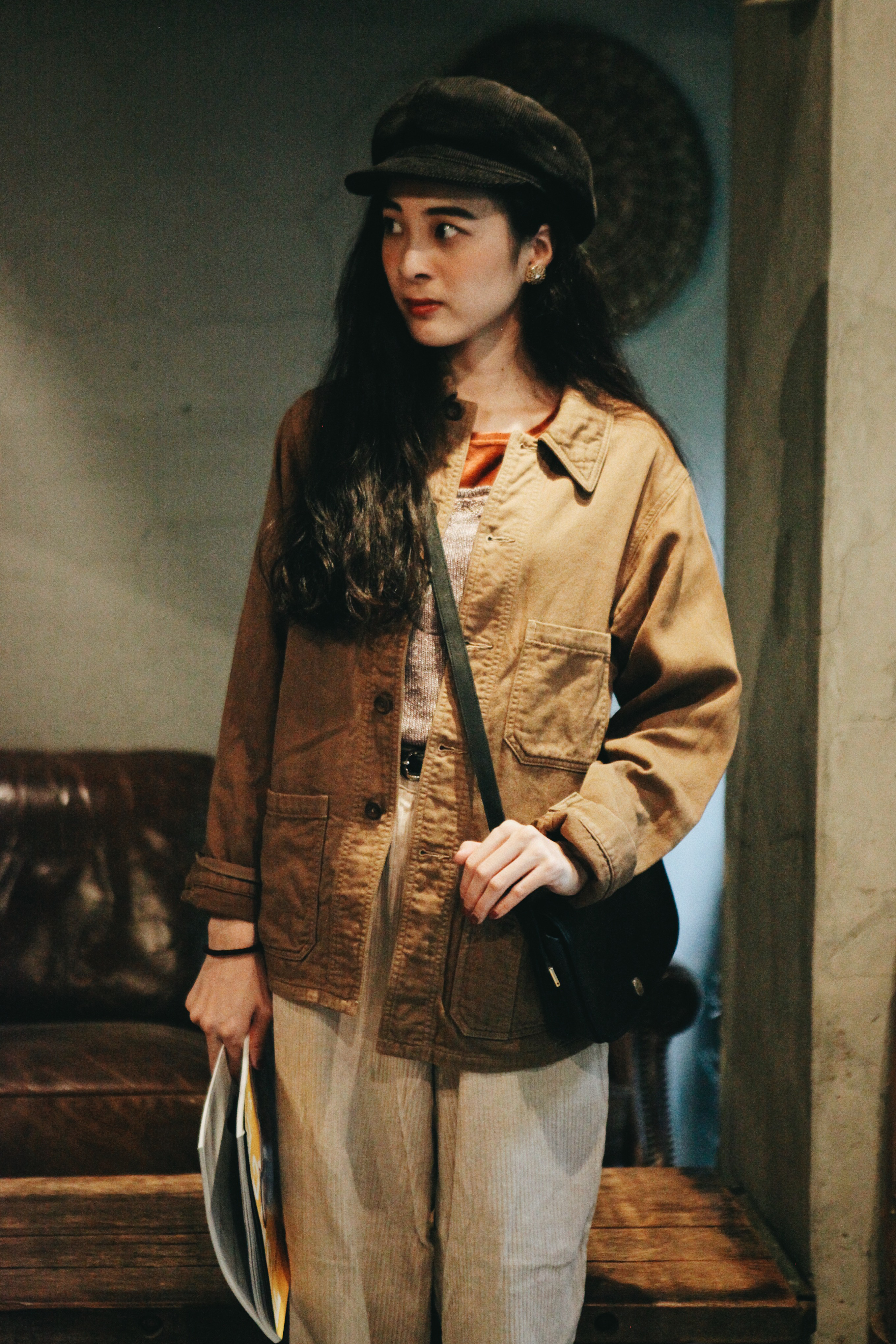 與親密好友相聚總是特別放鬆能盡興展現真我,服裝搭配也走不費力的休閒風格,寬鬆的橘紅色天鵝絨上衣,加上相似色的背心做出層次,下身搭配米色燈心絨褲,淺色褲子屬於難度高的搭配單品。最後信手捻來男友風格的工裝外套,背上品牌包包與報童帽就可自在窩在咖啡廳沙發裡最舒適的一角暢談囉。