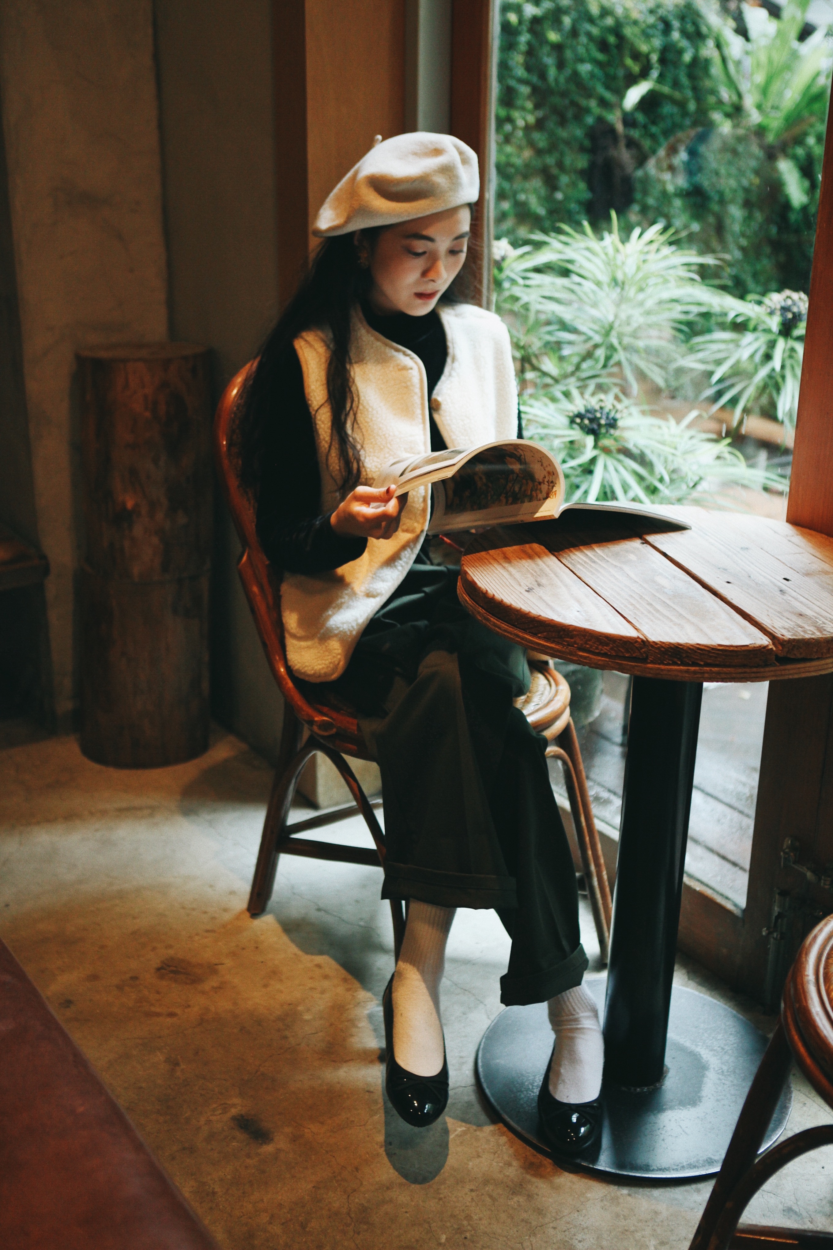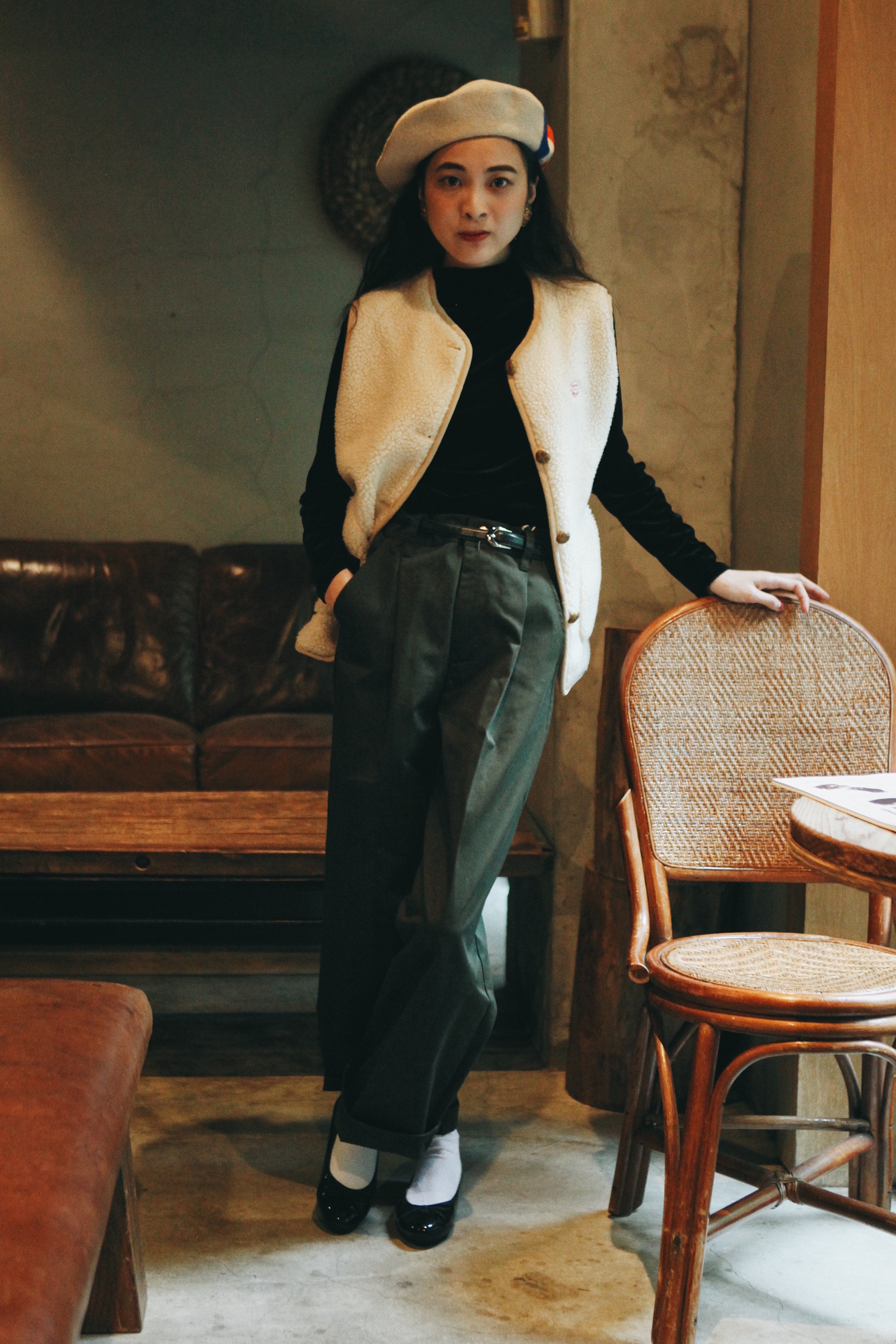 與熟識的重要客戶約在市區咖啡廳餐敘,雖然是輕鬆的場合但也想展現不隨便的專業樣貌,黑色的合身天鵝絨上衣修飾身型具有成熟氣息,加上注目級單品Vincent et Mireille毛絨背心,能隨著氣溫適時增減搭配,配上Universal Overall的挺版寬褲,幹練又有品味。