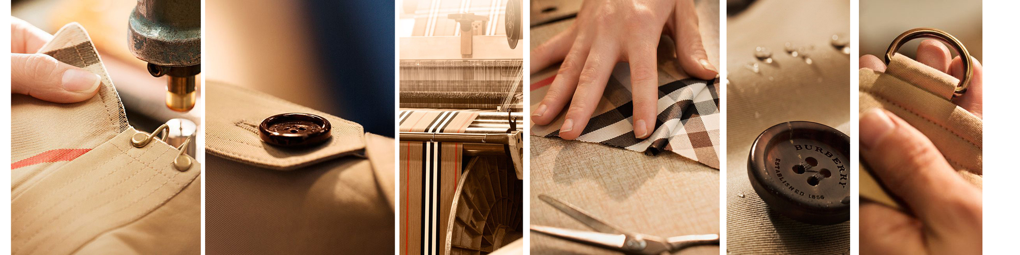 專業工匠們的注意力不僅放在風衣的造型、剪裁、車縫上,風衣內側也是大顯身手之處。每件風衣內襯採用極具標幟性的Burberry經典格紋布。「格紋」在英國被視為家族標誌的象徵,不同的顏色、大小也代表著不同的地區、村落或家族。自1920年代起, 以駝色、象牙色、紅色和黑色交織的格紋布「Nova」圖案成為品牌的顯著標誌,每件內襯均仔細裁切,以確保呈現出對稱不斷開的格紋,而領襯則採用對角放置的方式,格紋的線條以 45 度斜接,是Burberry最廣為人知的品牌經典元素。