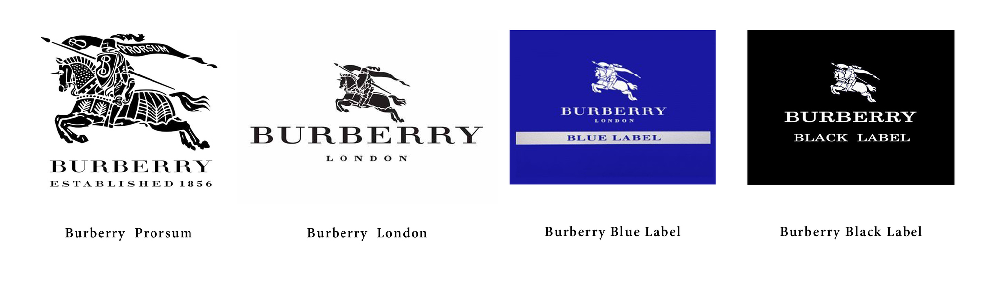 1901年,品牌的騎士商標第一次出現,手持的盾牌象徵「保護」,代表穿著它可以承受各種氣候的考驗;高舉的旗幟搭配拉丁文Prorsum,意指「前進」,最下方標記創始於1856年。Burberry 在 1998年之後將品牌名稱從「 Burberrys’」 改為 「BURBERRY」。 而Burberry可以分成許多主牌與副牌,以下分成英系與日系來做說明。