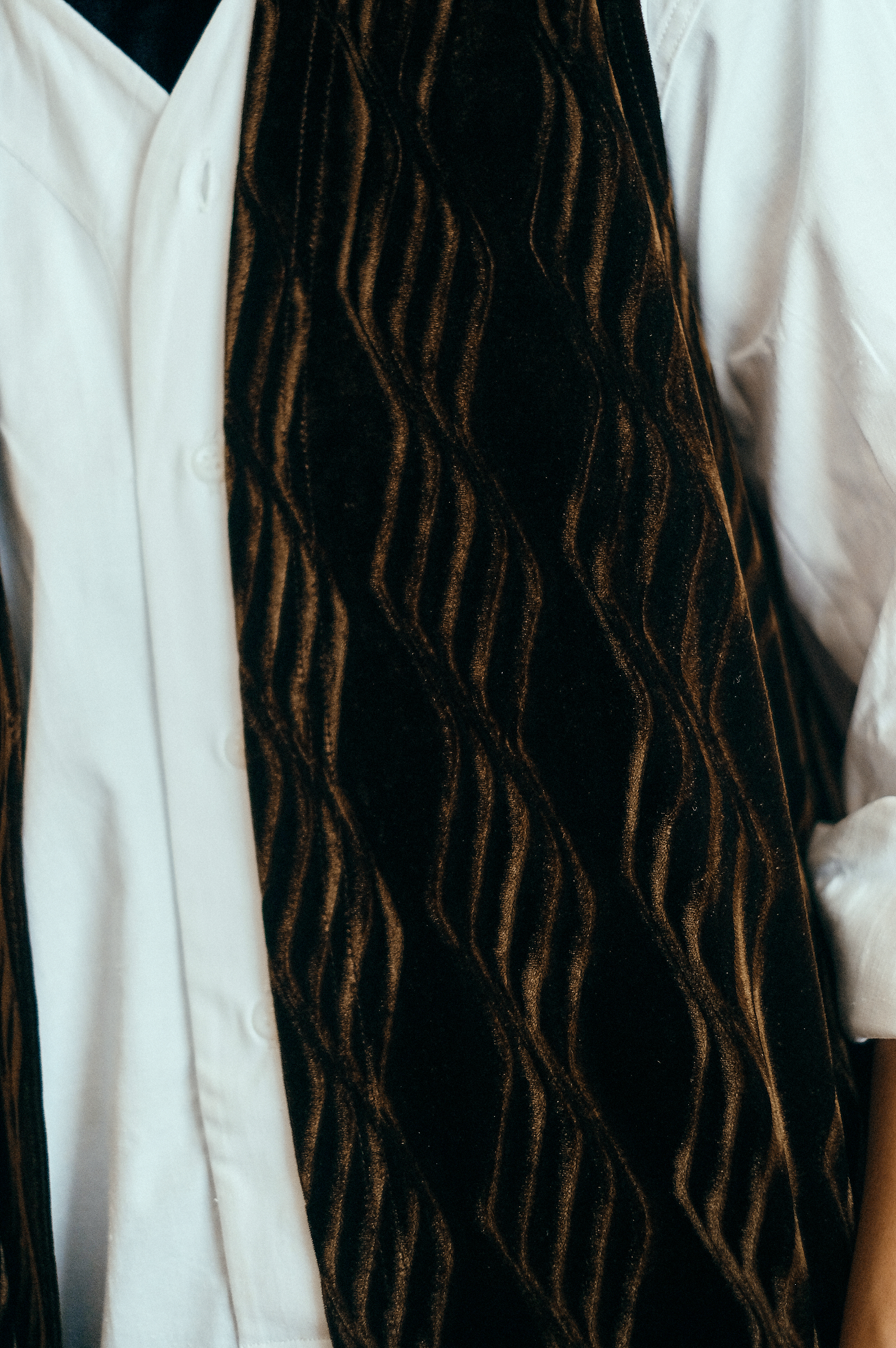 反光效果強的天鵝絨,與洋溢休閒感的燈芯絨相比,可說是位於光譜的兩端。高調的質地,讓天鵝絨容易與晚裝聯想在一起。也因為它不易起皺的特點,讓天鵝絨更適合作為正裝的材料。