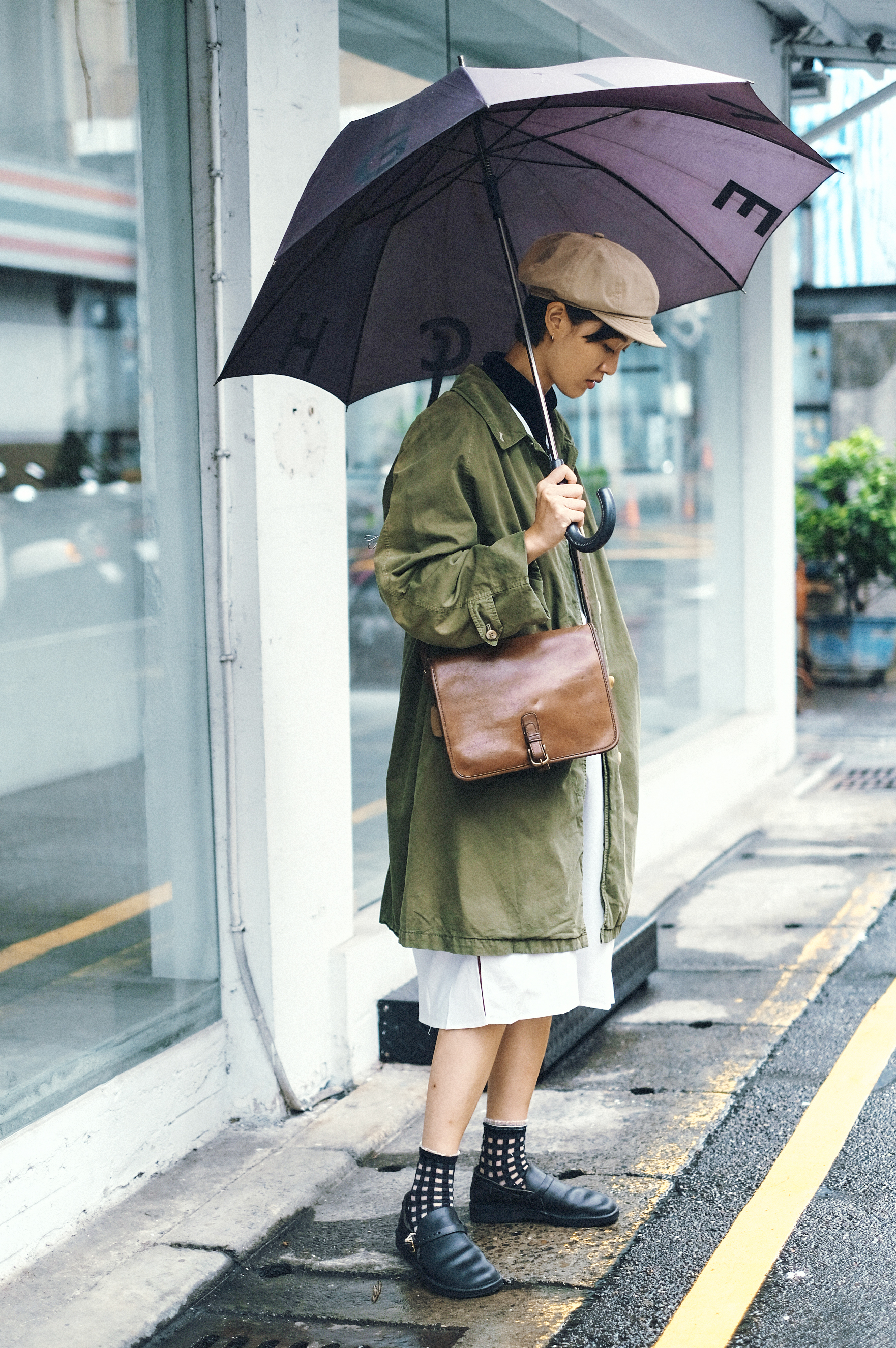 黑色天鵝絨高領上衣,穩重盡責地做好衣物的基本工作——保暖。German Pajama Pullover白色連身上衣,爲一身衣著定調,遊走在休閒與正式之間的剪裁,再外搭一件天鵝絨長版背心,將黑白兩色,疊加出當代幾何美學。行走在多雨的北部秋冬,一件防水防風的風衣,完善了週五出入各種場域的需求。