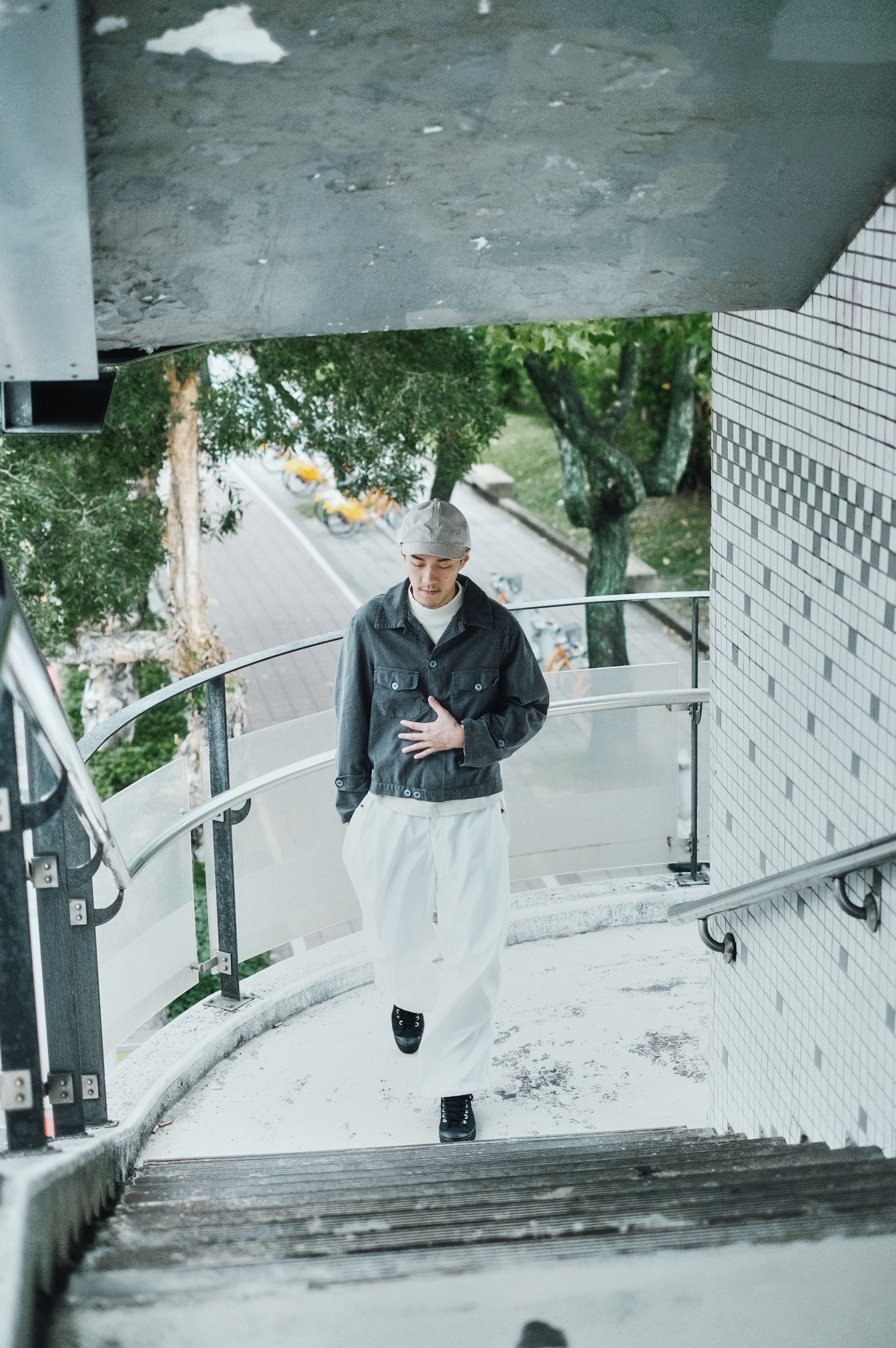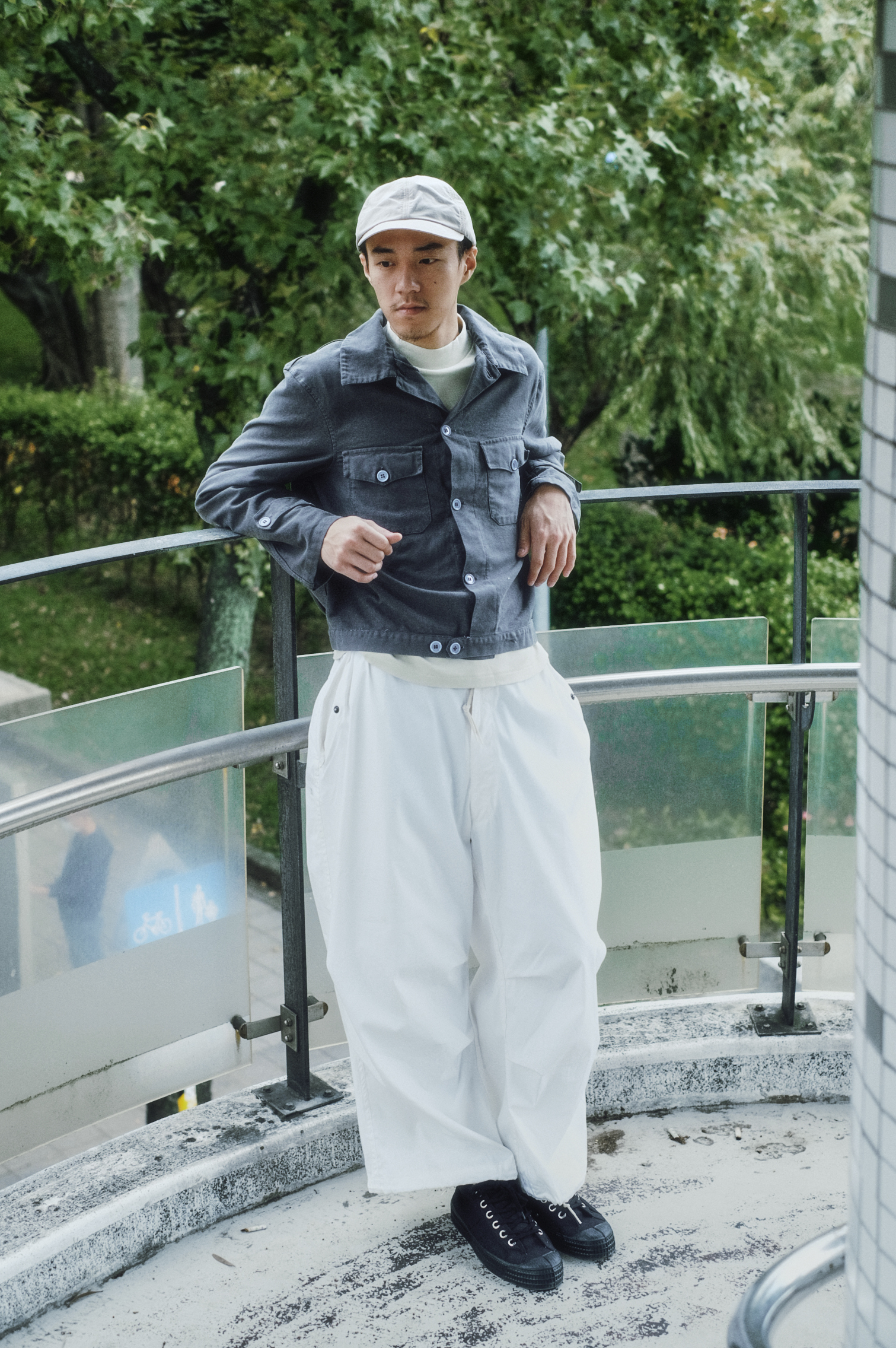搭上典雅溫潤的銀灰色外套可以平衡視覺,亞麻織品的柔軟和輕盈的材質也能緩和工裝的線條感,更強調出單品的細緻,為整體穿搭增添厚實、內斂的氣質。