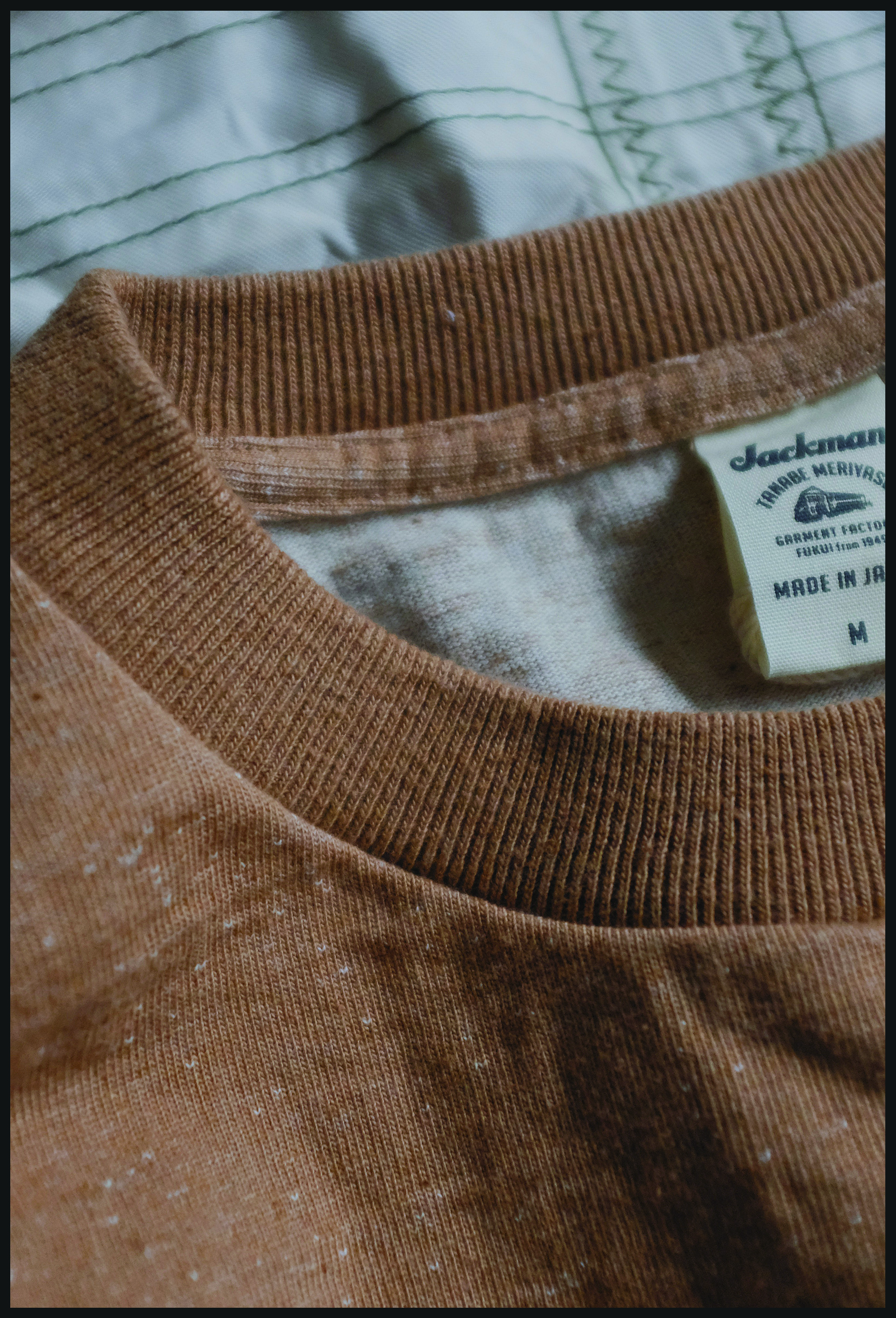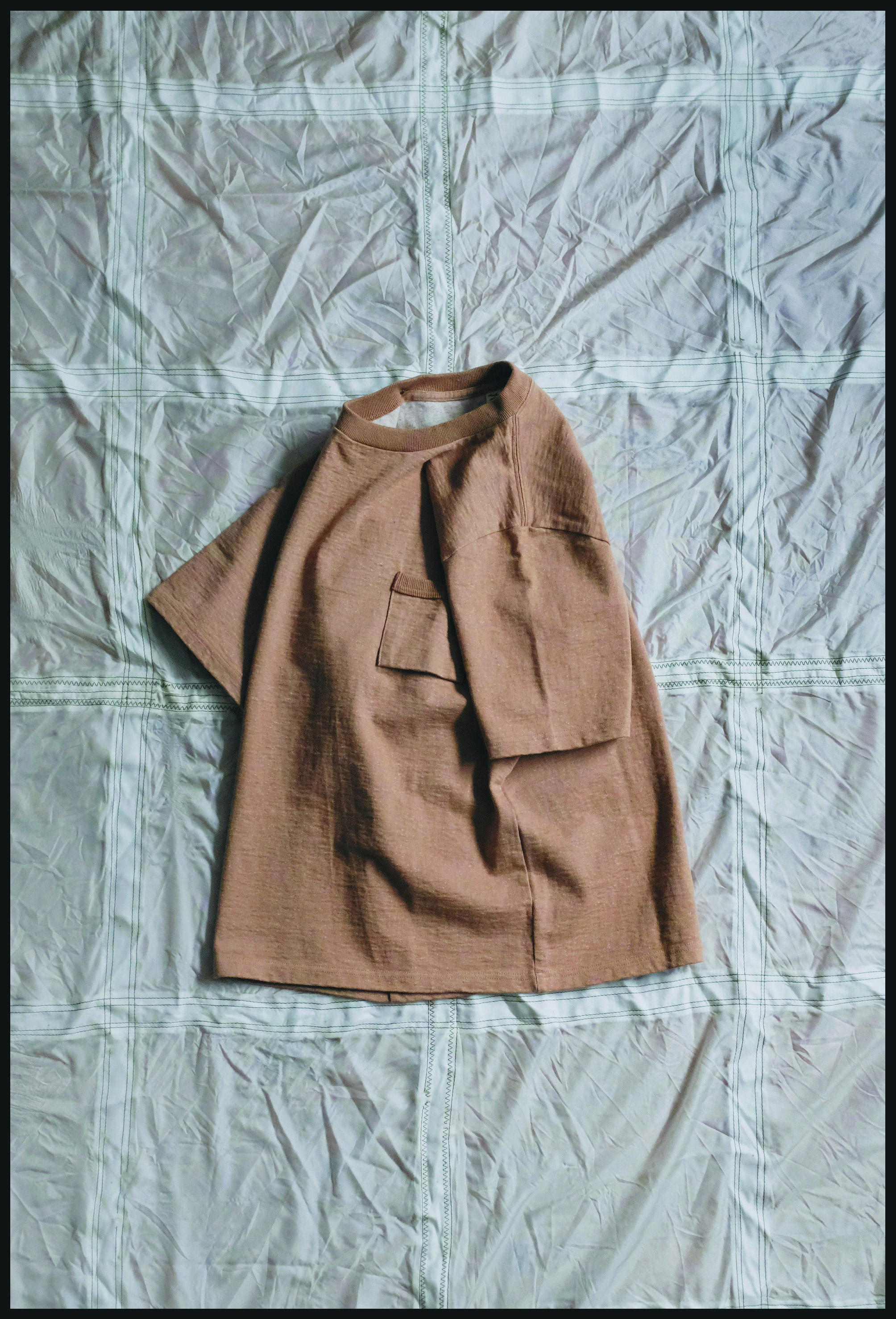 特別介紹橘棕色的 Dotsume Pocket T-shirt,除了顏色活潑討喜,著用感也更厚實一些,搭上一件白色雪褲,就能輕易彰顯你的精湛品味。