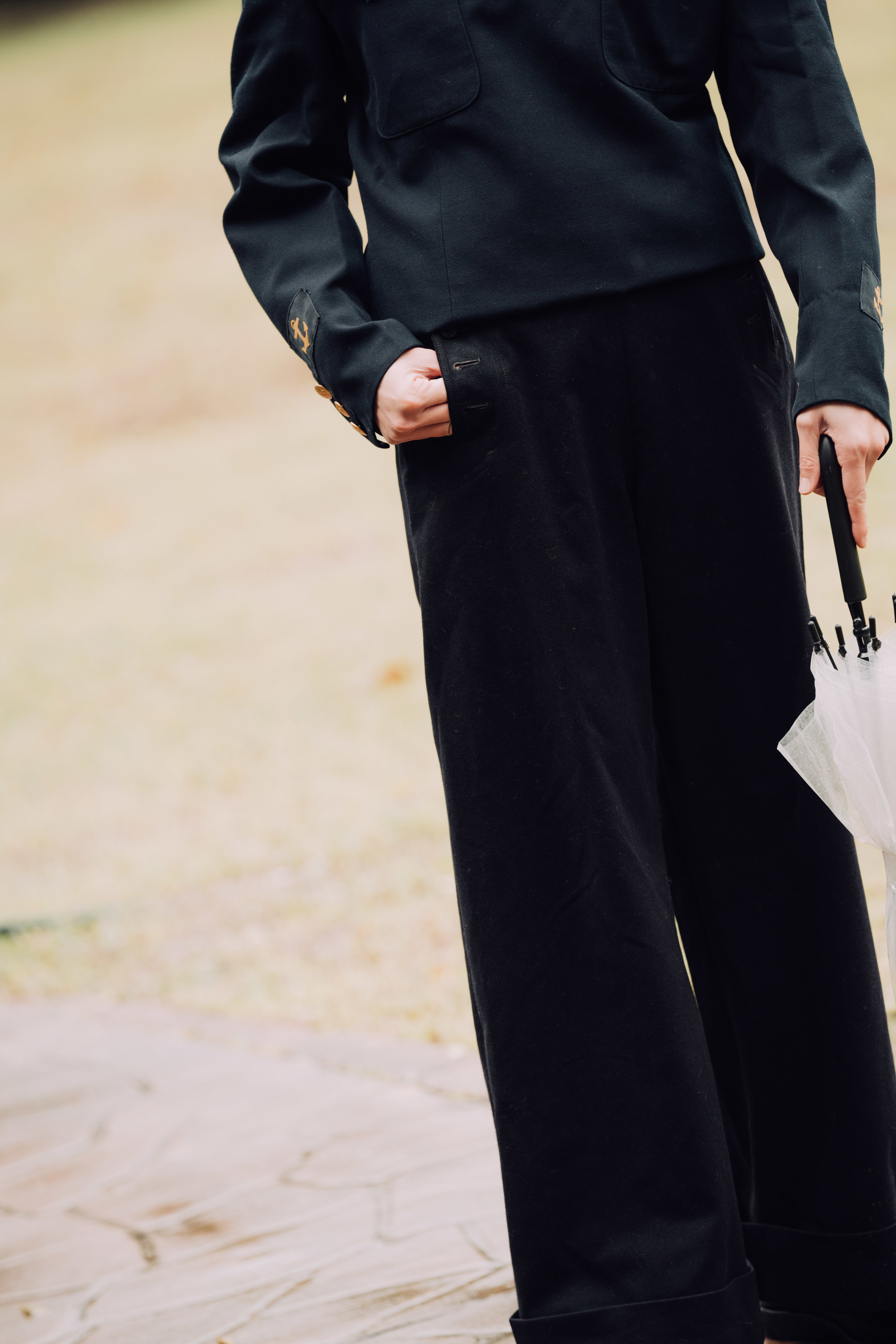 同樣於十九世紀,毛呢不只是貴族顯要的愛用面料,在那個軍事風起雲湧的時代,毛呢的蹤跡也悄悄出現在軍裝上。一款美海軍毛呢喇叭褲,作為喇叭褲的先驅,其設計考量與時髦無關,更多是出於實用上的需求。