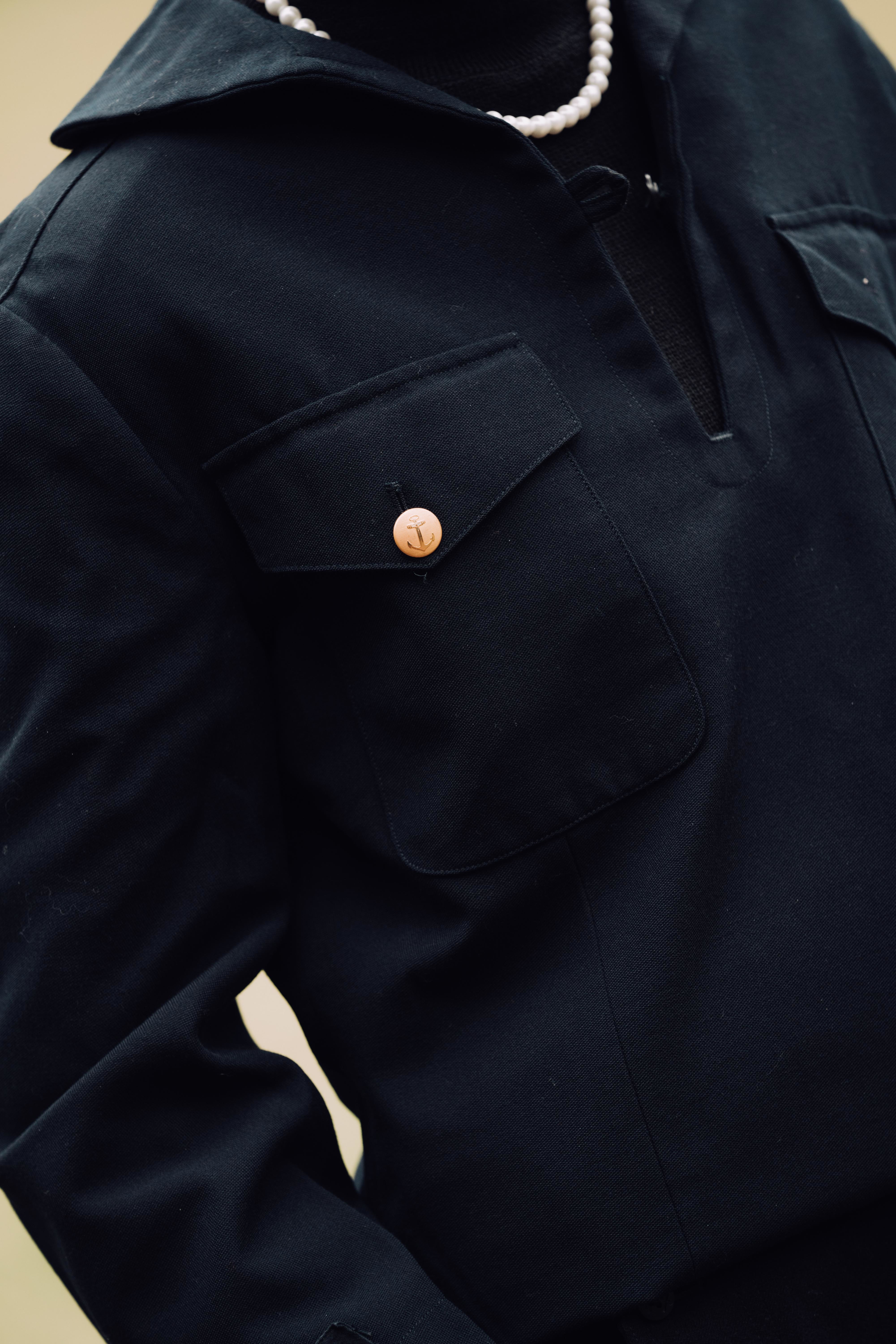 以開襟設計為主要特色的瑞典海軍上衣,聰明地在胸前設置暗扣,維持上衣齊整。在冷風颼颼的時節,建議內搭一件毛衣,應付低溫。
