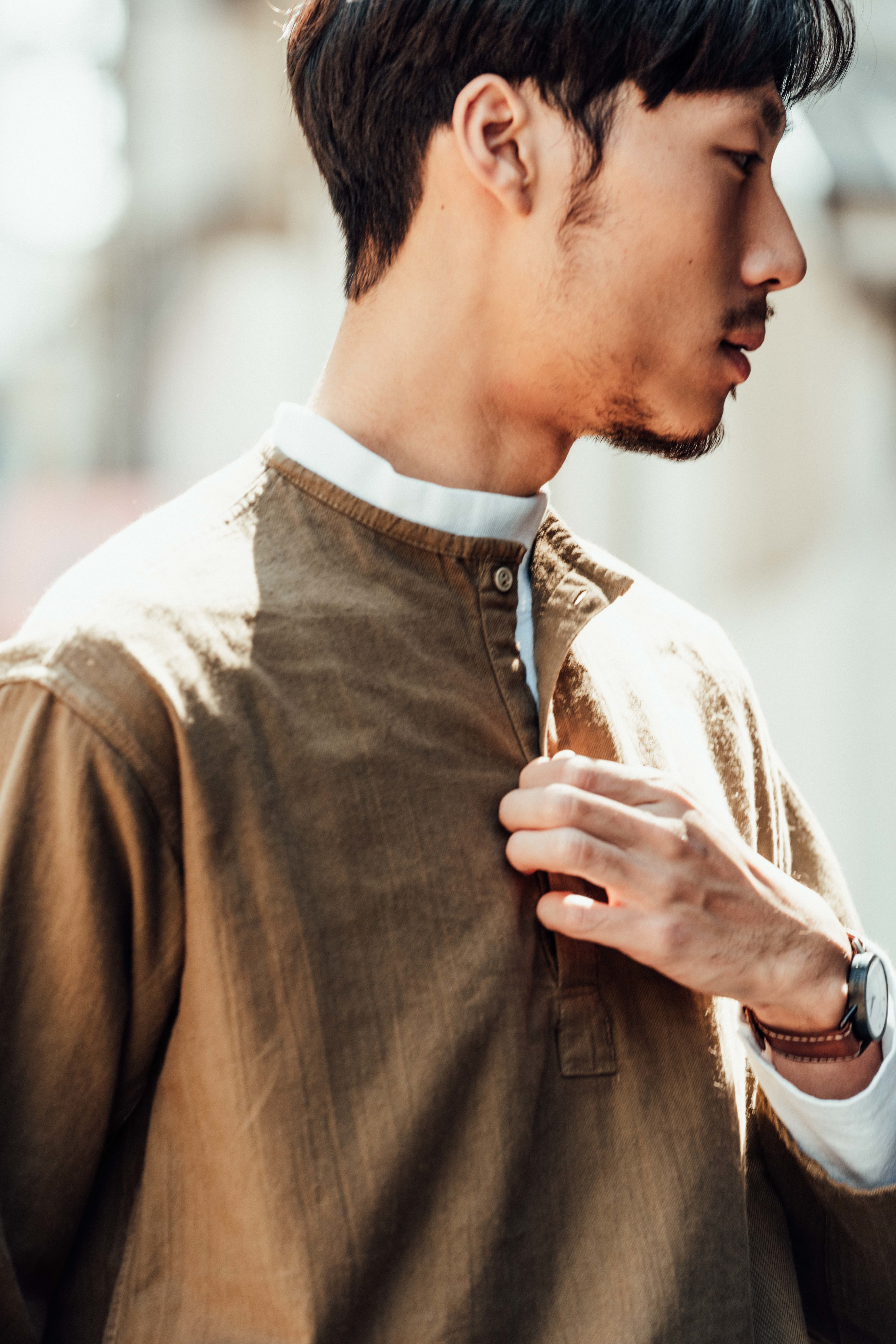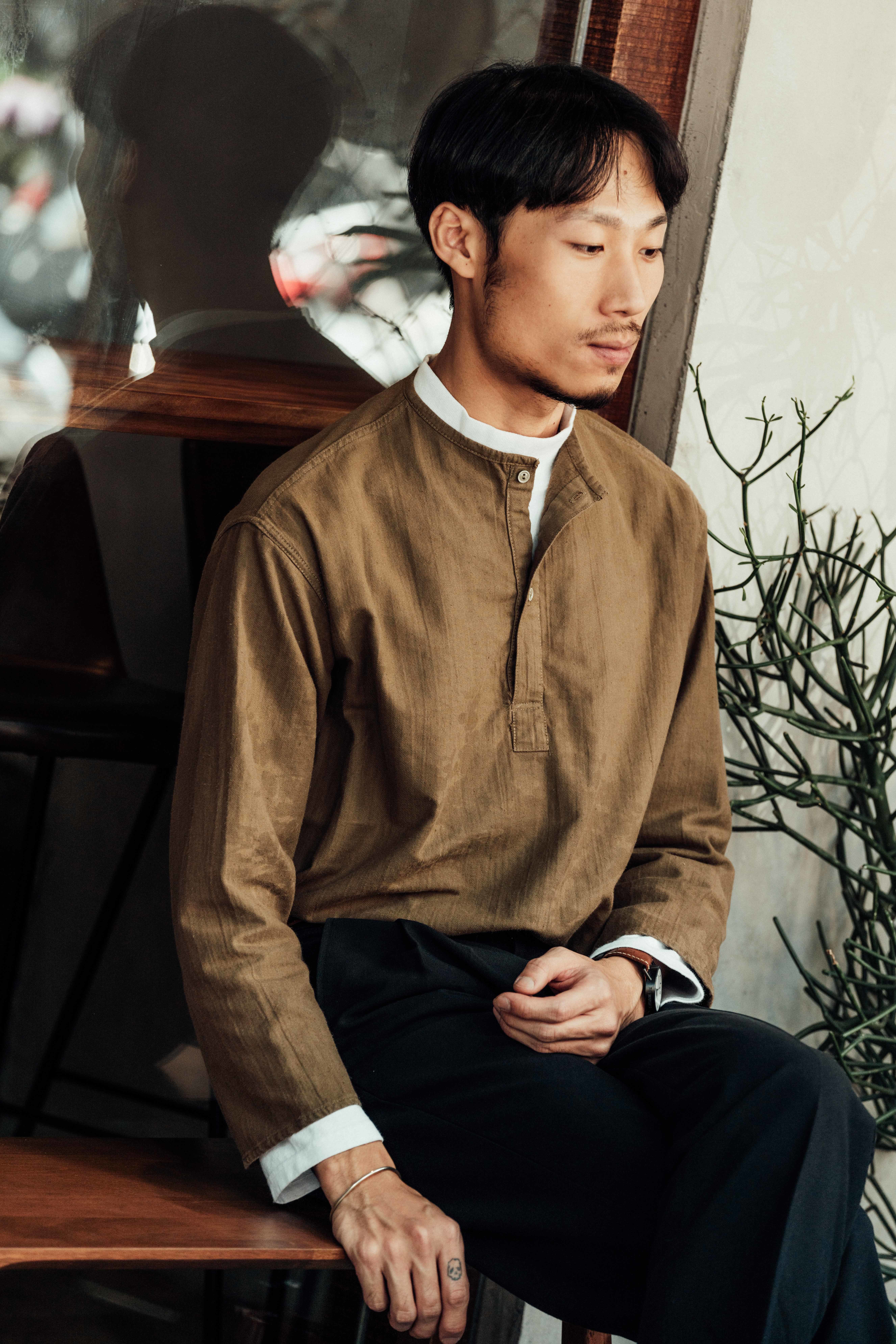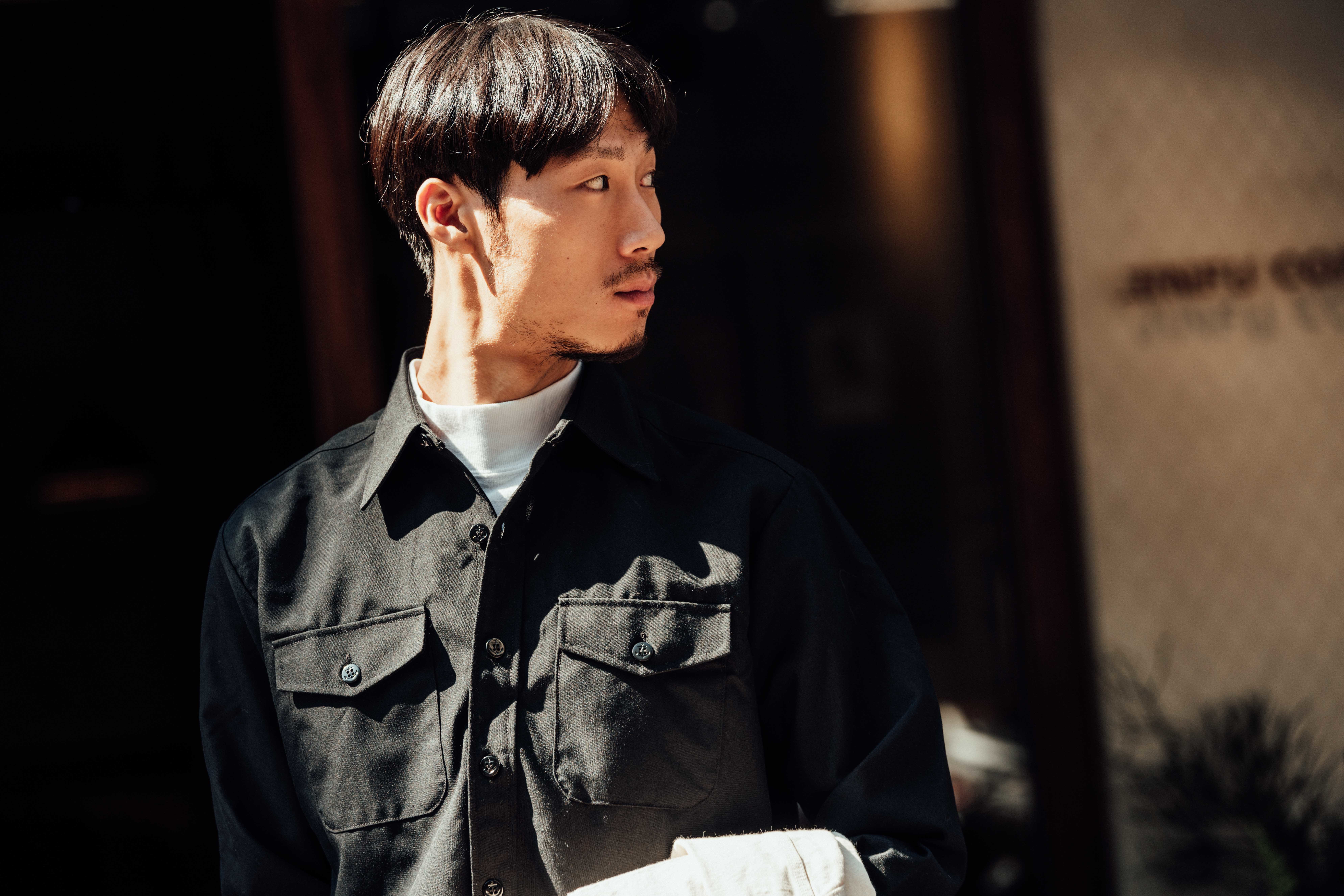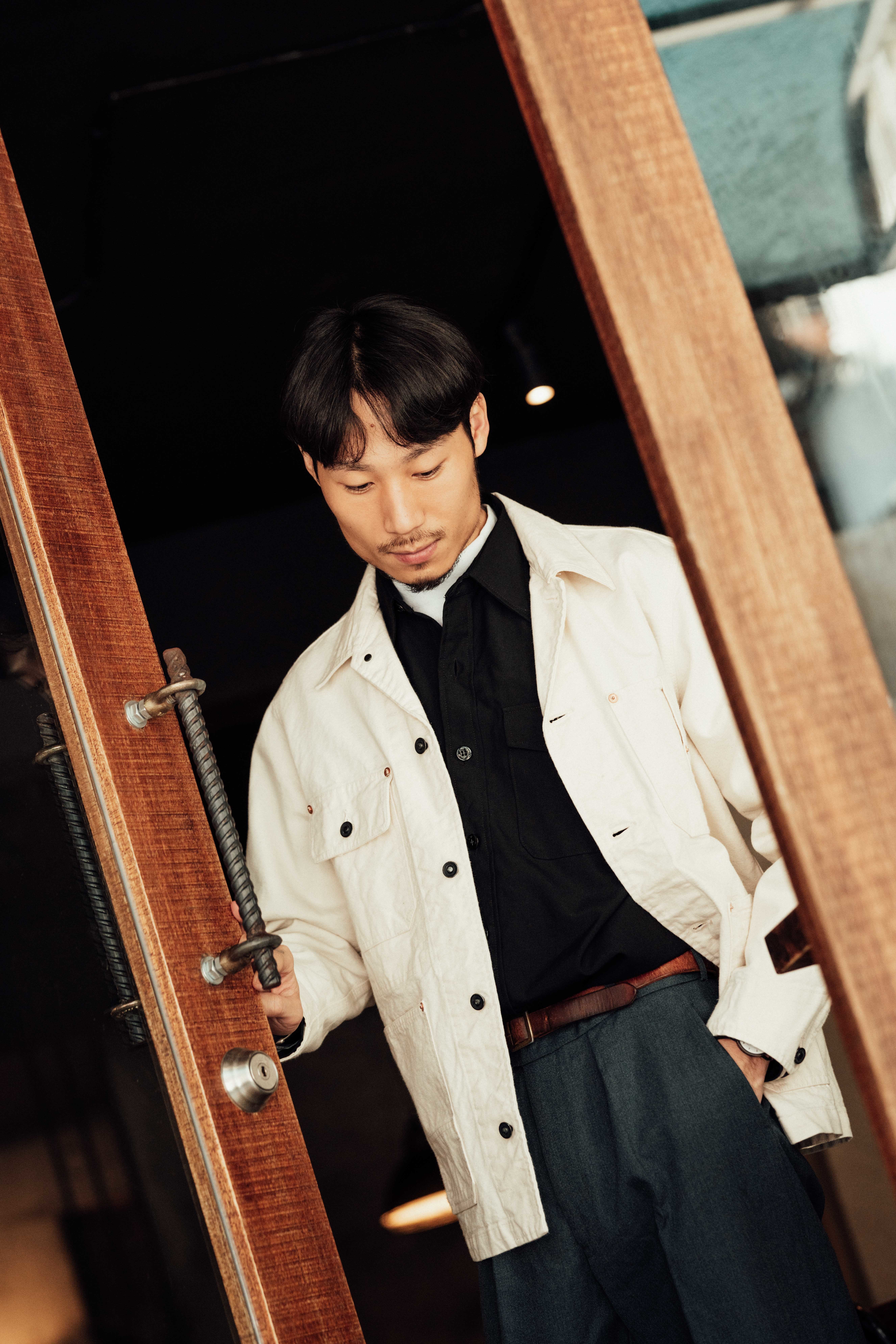 內搭寬鬆版型的丹寧工作襯衫,柔軟的美國棉與飽和的丹寧色,再加上細膩的白色縫線,在粗曠工作襯衫中添加令人醉心的細節,就是日本品牌HOUSTON的真本事。