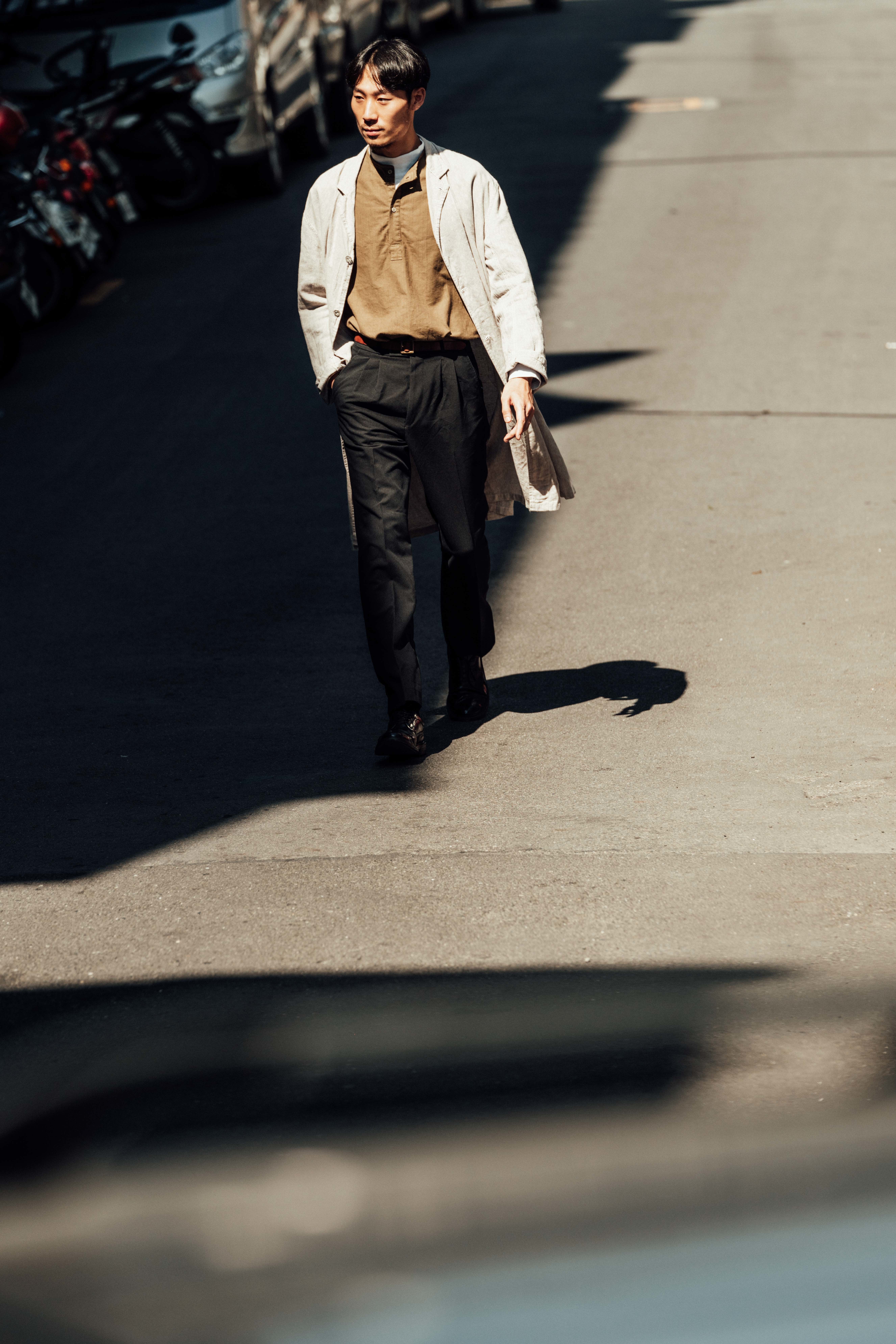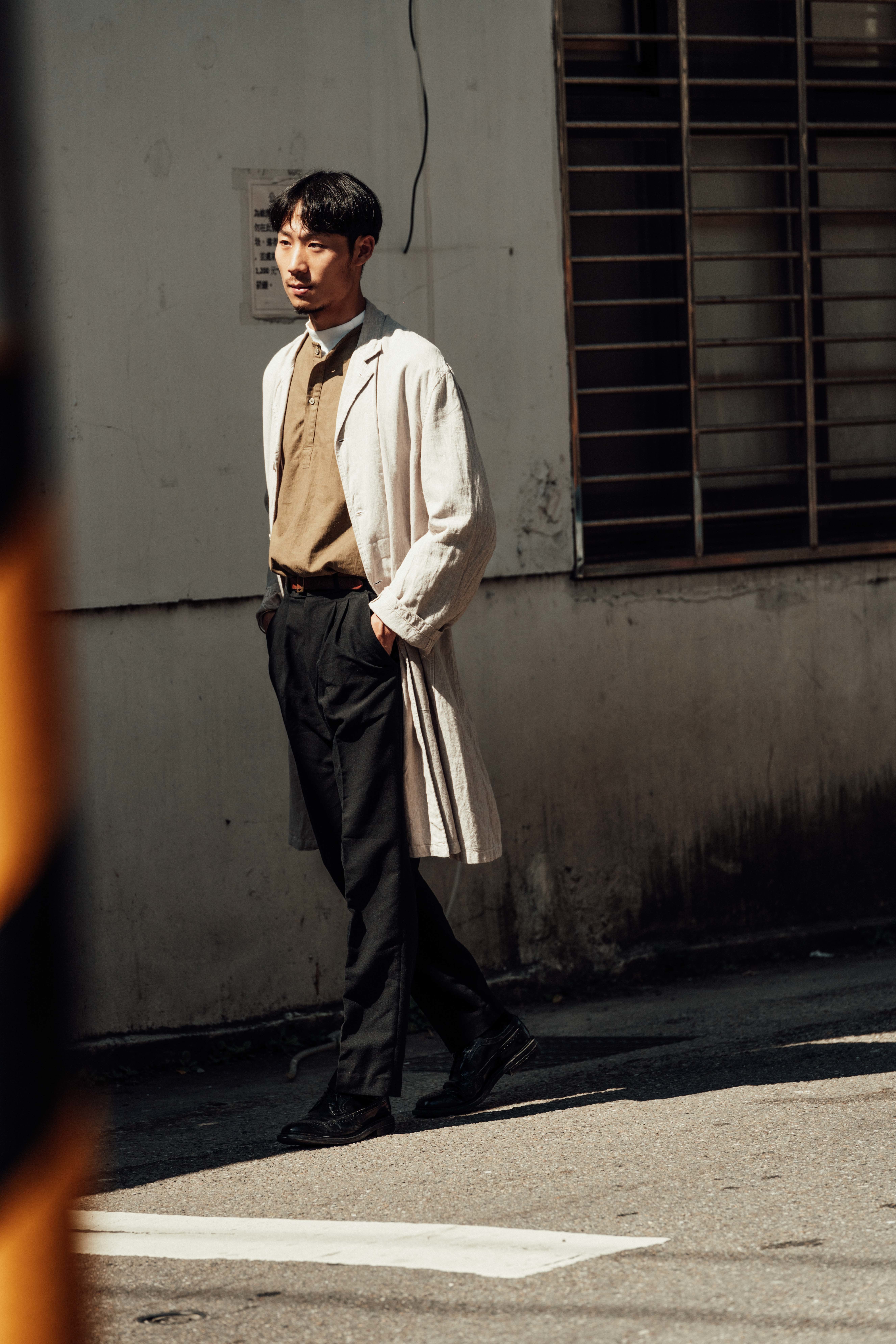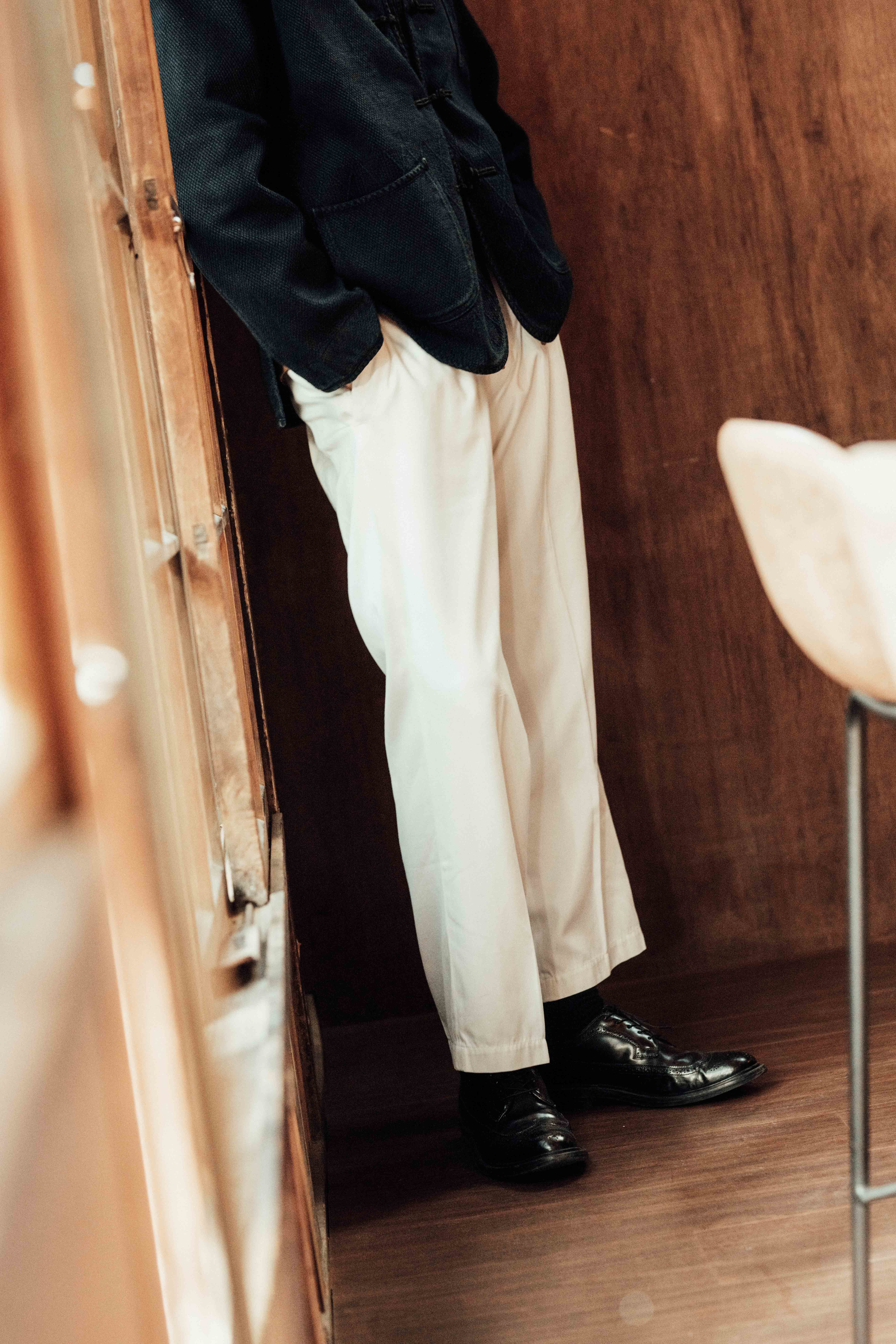 下身所搭配的法軍西裝褲,介於緊身與寬鬆之間的褲型也消彌了正式的距離感。