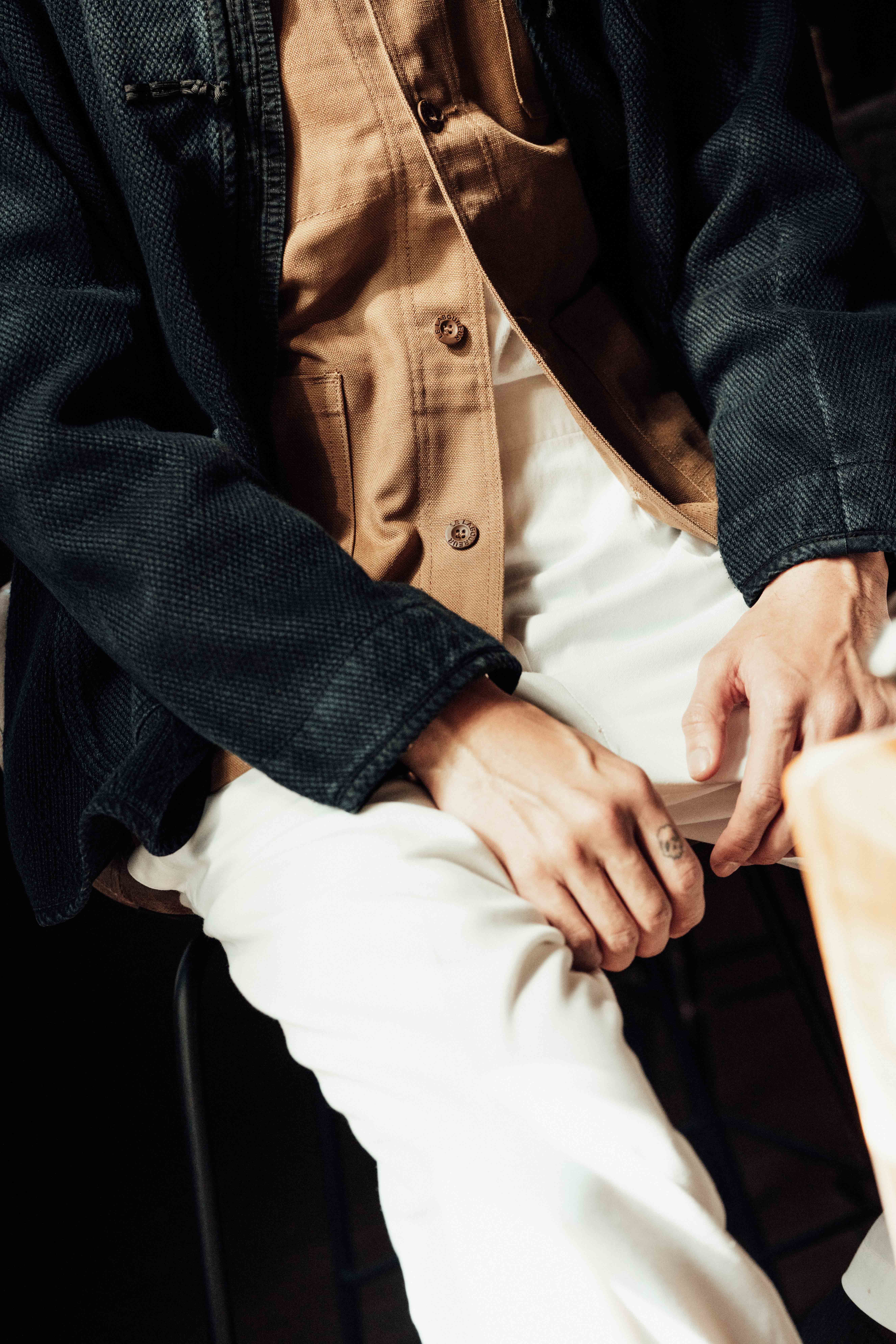 Porter Classic的外套延續日本職人的精神和傳統的服飾製法,透過天然的藍染和傳統織品的拼接,打造現代人也能靈活穿搭的版型。採用西印度群島的手摘海島棉,以結構紮實的編織工法呈現宛如絲綢的光澤,即使經過洗滌,藍染褪色的色澤與逐漸柔軟的觸感,完美演繹了Wabi-Sabi的核心,也呼應了一時無酉的美。