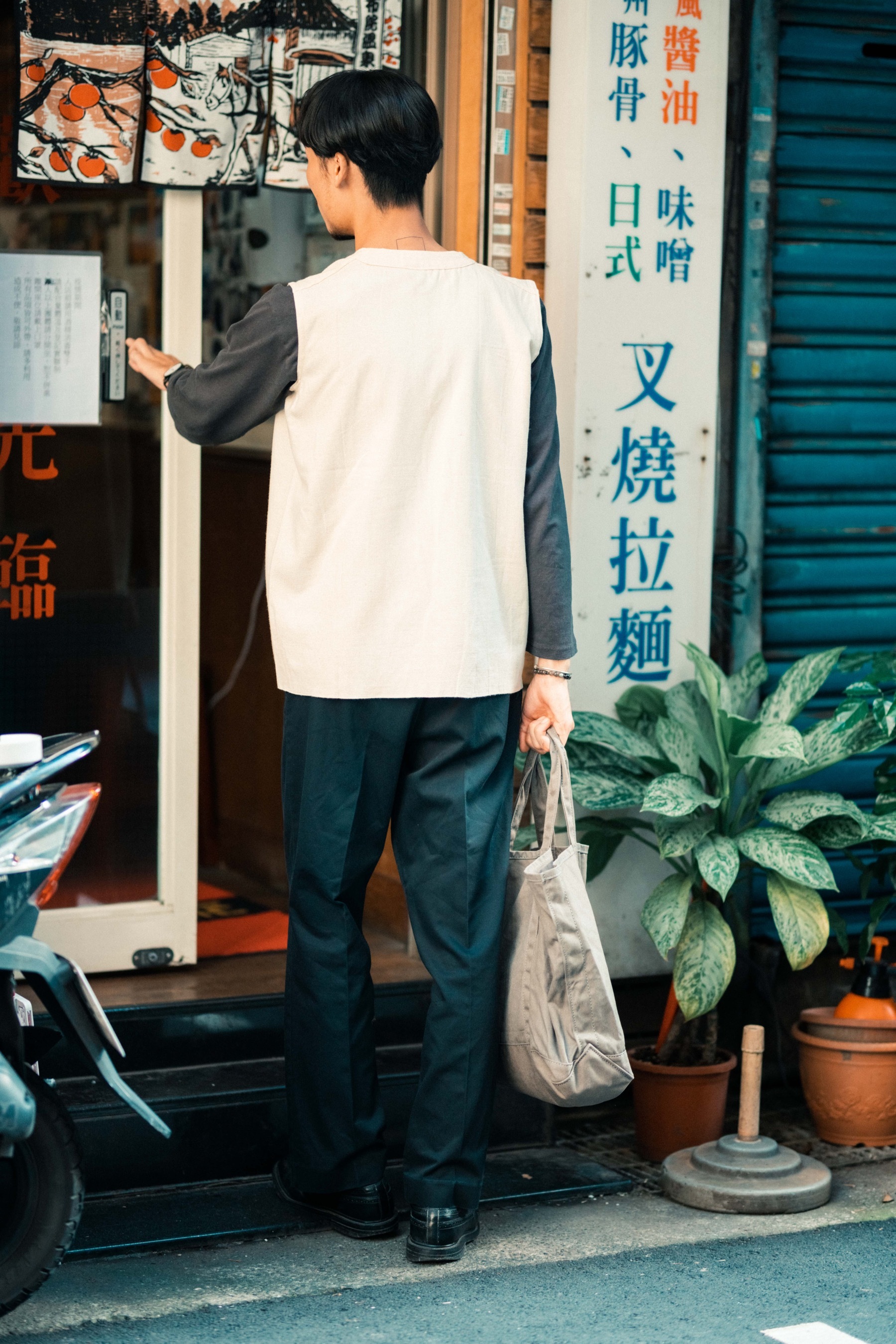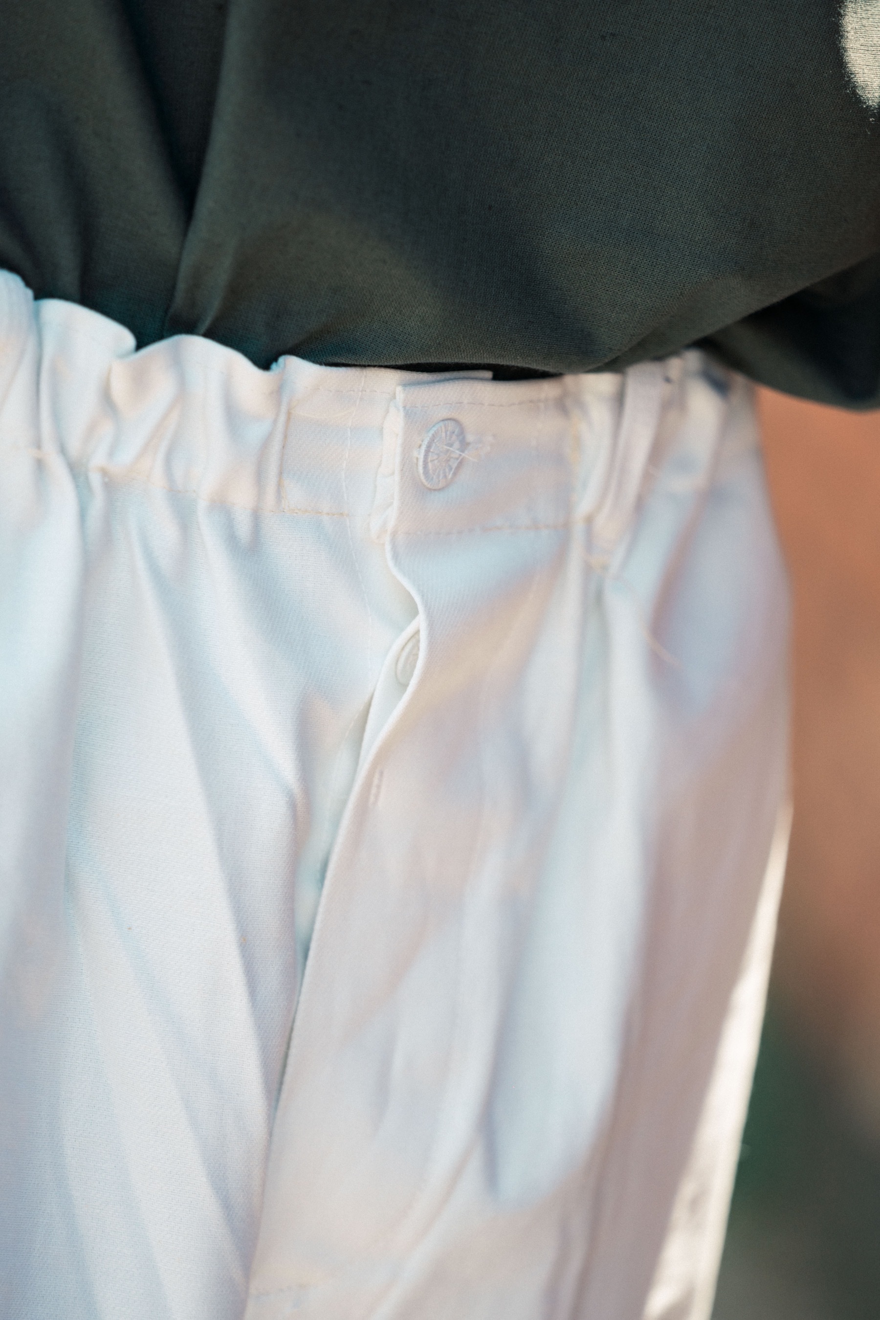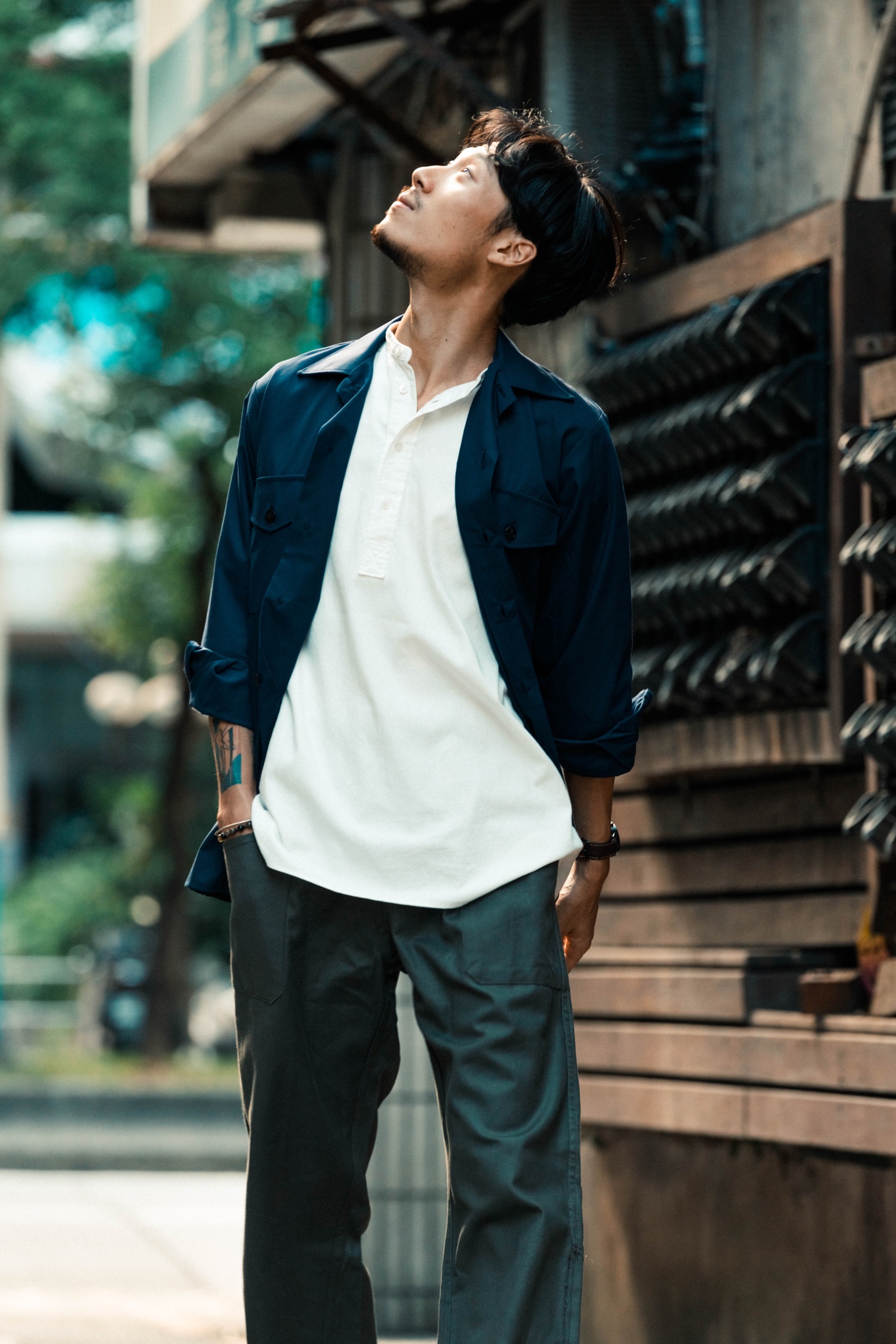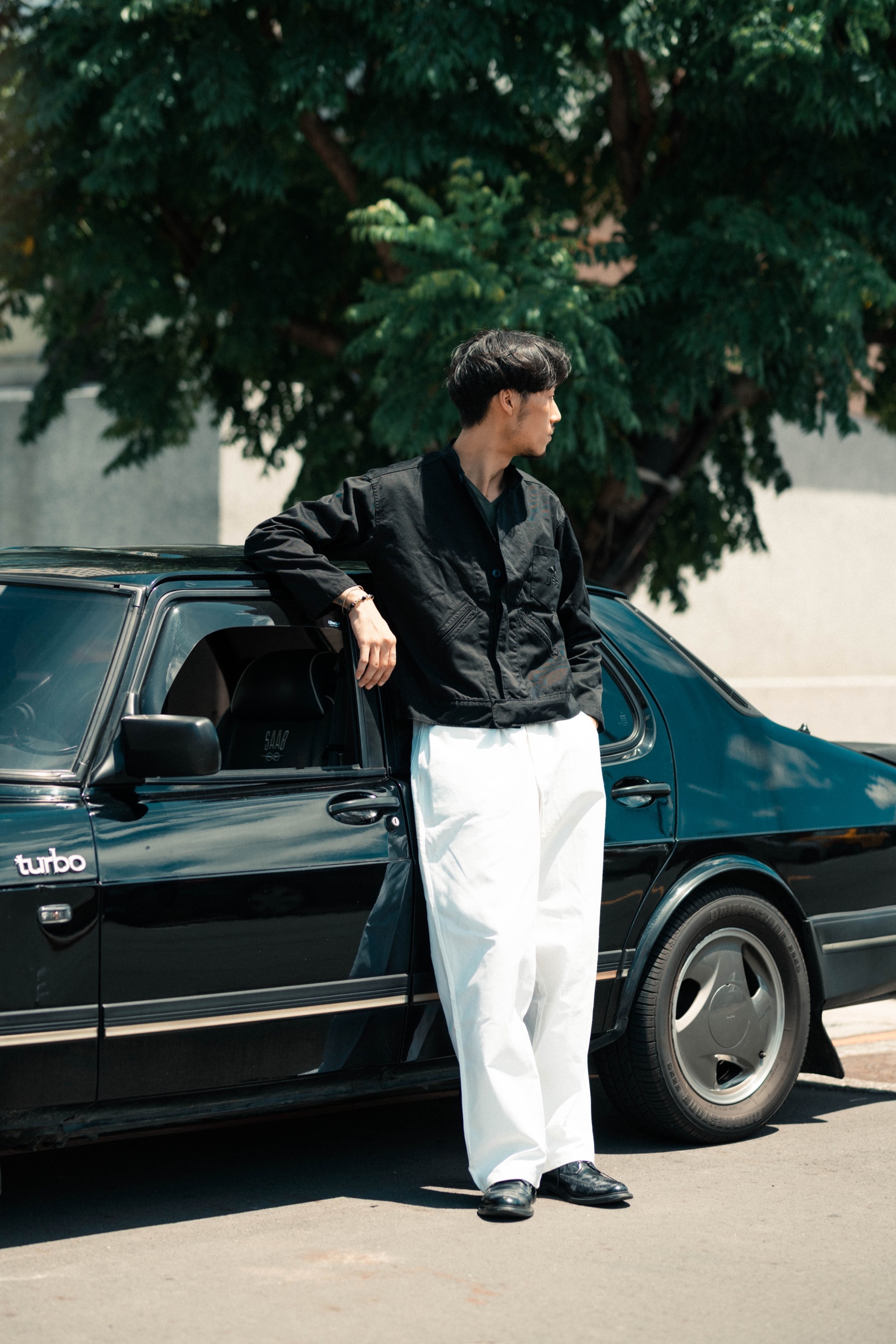 下身搭配捷克軍醫的醫用長褲,除了乾淨俐落的白給人清爽的感覺,寬鬆的版型和柔軟的棉料在夏日也非常透氣,讓你在悶熱的季節交際之處保持明快的步伐,在視覺上給人帥氣的一擊。