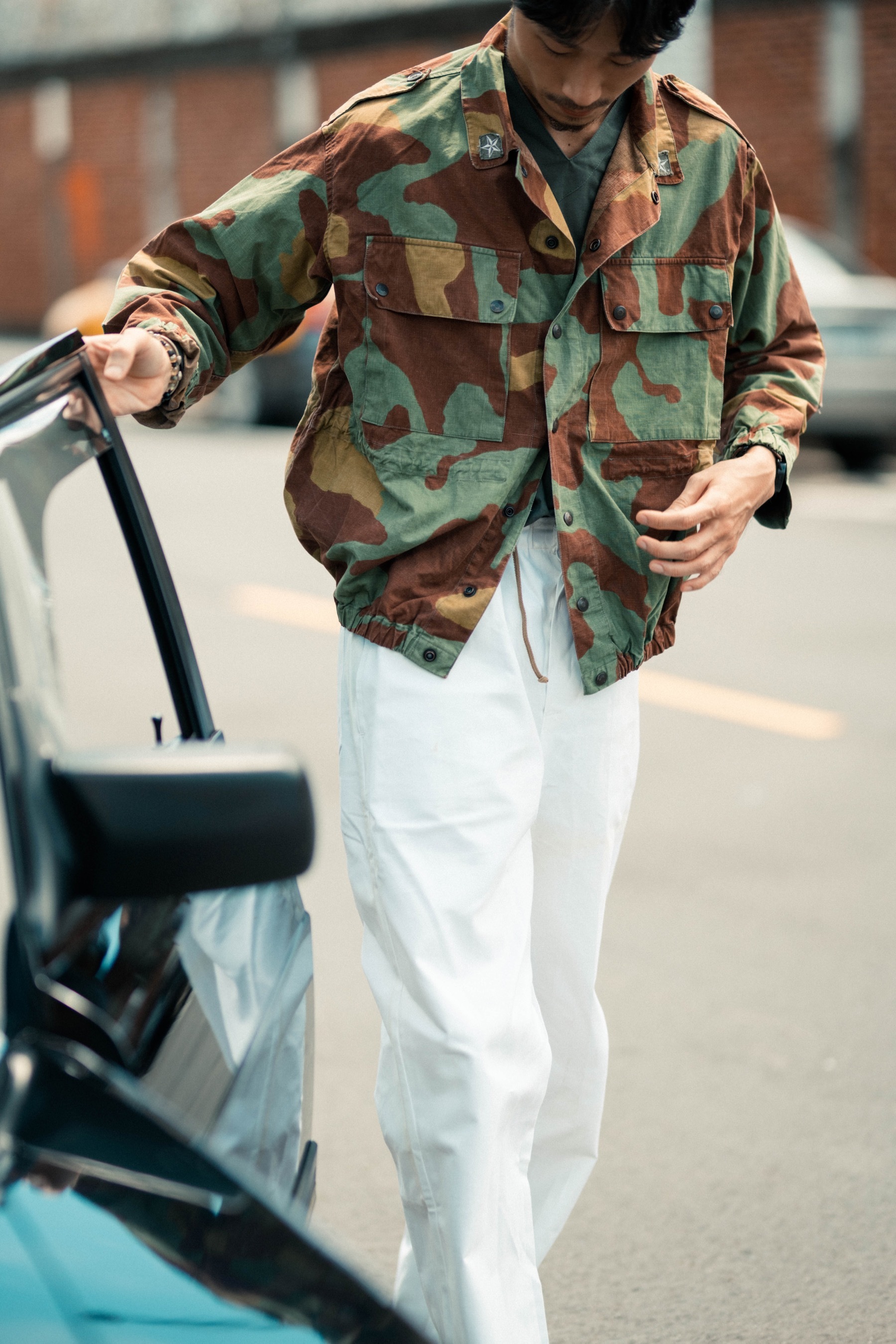 義大利M29 Telo Mimetico,在整個二戰期間被傘兵和其他一些義大利士兵廣泛使用,甚至在戰爭結束時被德國軍隊使用,最初的 M29 設計在 1950 年代和 1960 年代進行了修改,以至少三種不同的顏色變化向義大利海軍陸戰隊和義大利軍隊的一些部隊普遍發行。這款1960年代開始服役的傘兵制服,由夾克、吊帶軍褲、帽子為套組。夾克簡要的金屬黑釦、手肘強化的縫線和下擺收縮的版型,突顯出精實、幹練的體態,一件夾克就能展現硬派爽朗的的底氣。