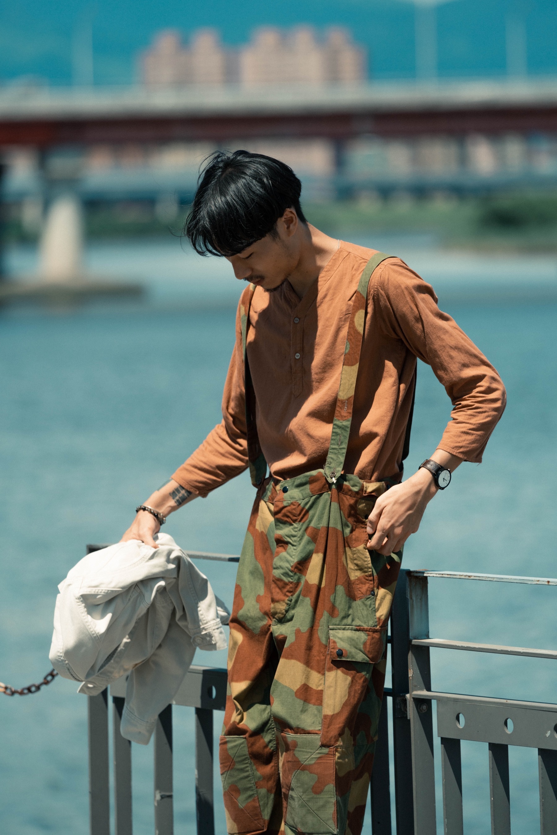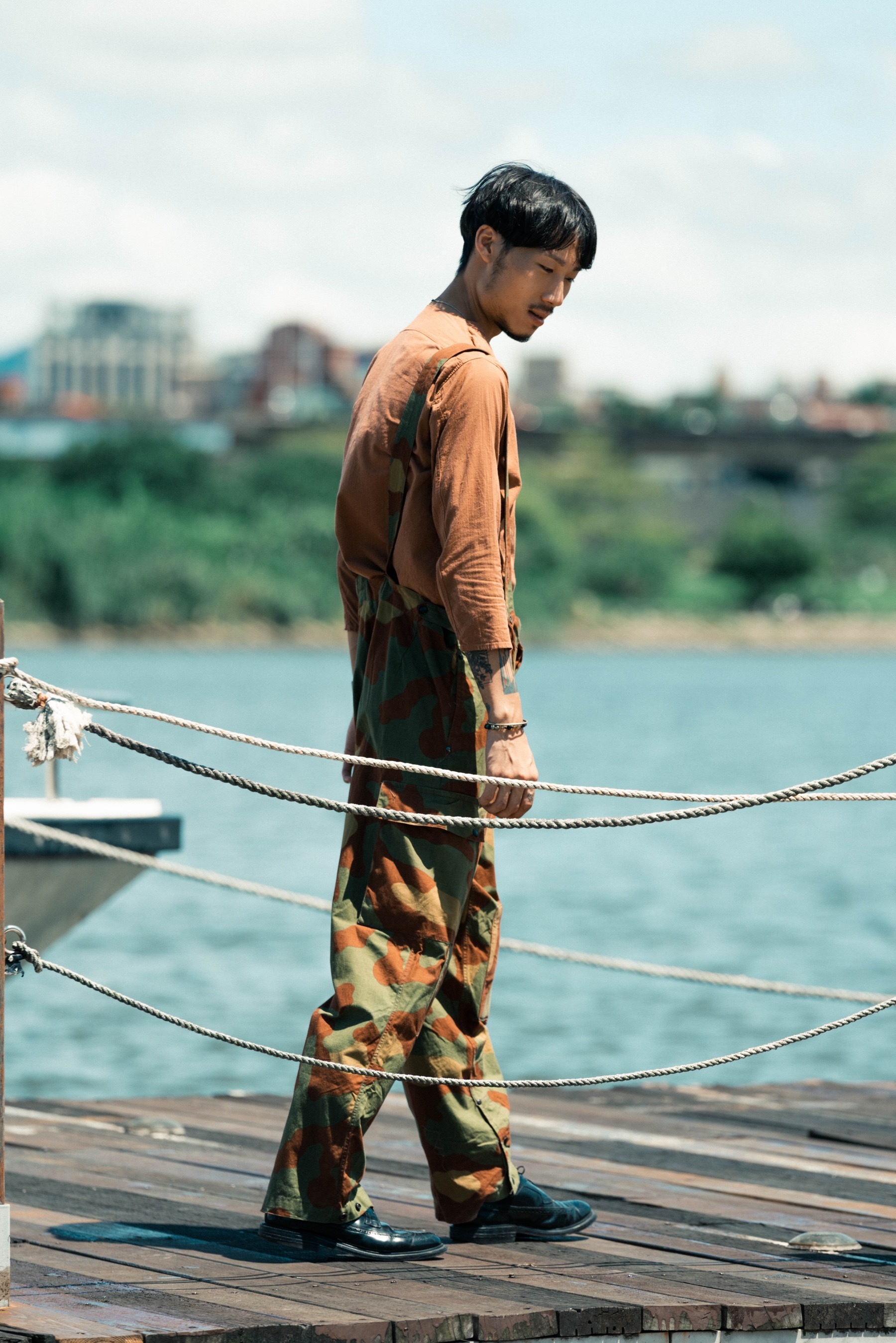 如先前提到,地中海上義大利傘兵著用的迷彩吊帶褲,織得密實但輕薄的棉料可以抵禦海上的寒風也不會過度悶熱。除了褲頭旁斜開的口袋之外,大腿外側還有翻蓋的Cargo pocket,多口袋的設計則為了讓當時在海上難以隨時補給的軍隊能隨身攜帶更多的用品。寬鬆的版型穿起來輕鬆自在,充滿自由的氛圍。