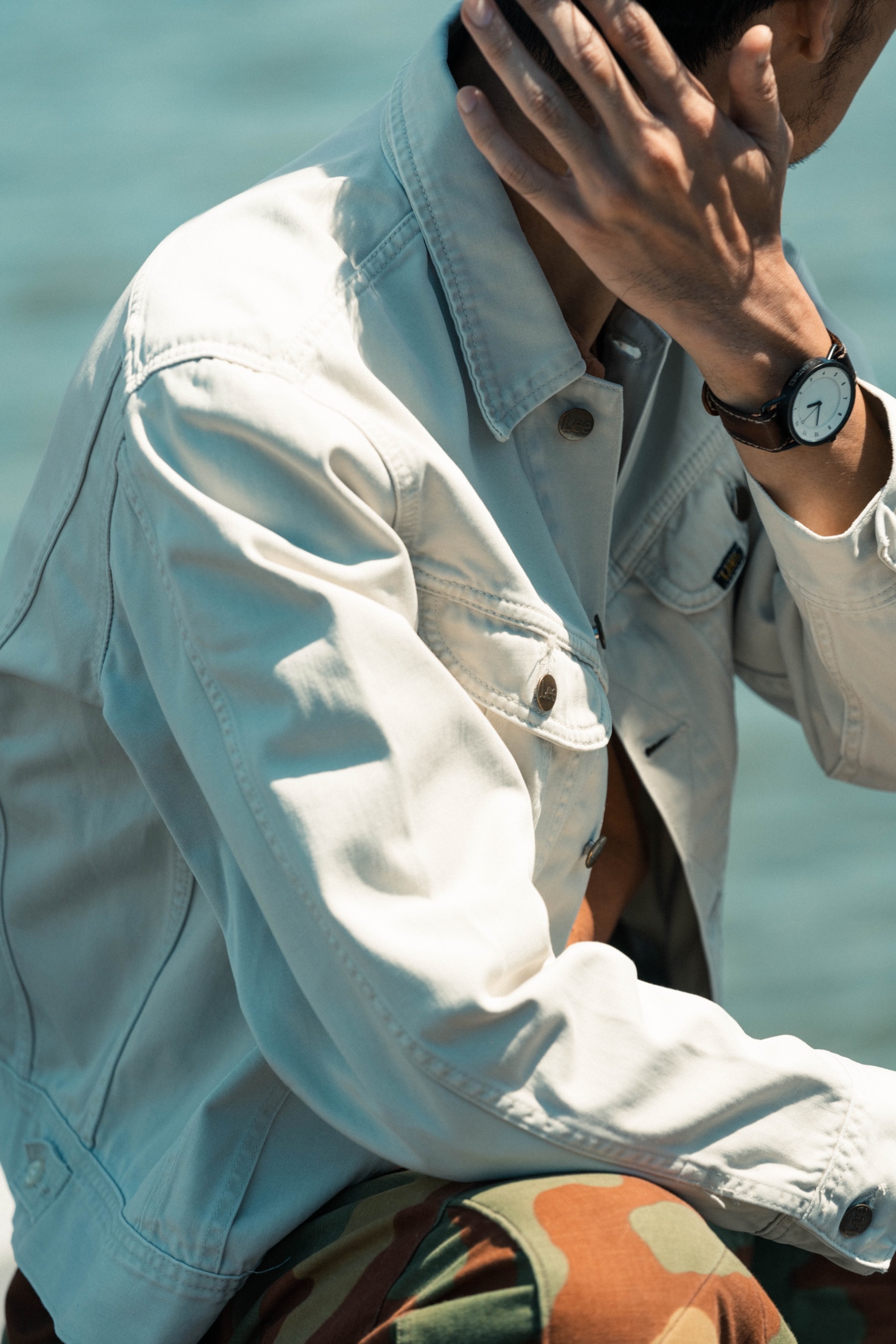 採用英軍鍾愛的丹寧材質,並以艾森豪夾克及腰短身的設計為版型,這一件義大利的Ike Jacket 將心思投入在設計細節的展現。寬版的下擺配上修身的腰帶,詮釋出從肩膀到腰身的完美倒三角,丹寧布料更在陽光下微微發亮,結合胸口袋簡練的摺痕和袖口的雙鈕扣,體現義大利軍裝獨有的優雅。