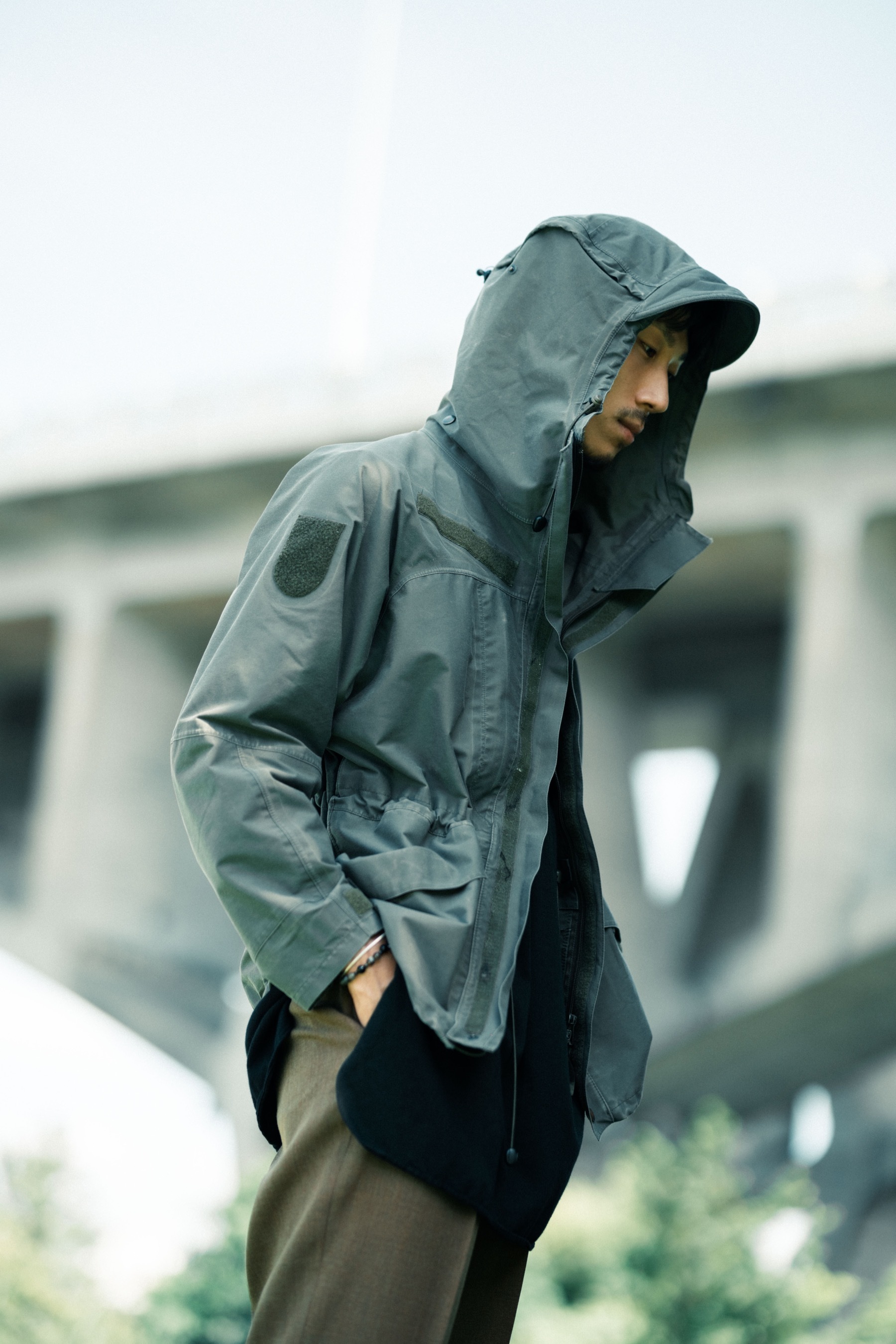 大陸型氣候的奧地利,寒冷的氣溫與持續的雨霧是冬季的日常生活,擁有防水並透氣的外套是必備的考量。以Gore-Tex® 為布料,結合高度彈性的尼龍紗,兩者皆是在高濕度的天氣底下能維持身體舒適的質料。連帽設計得可以收縮成領口,並且在腰間和衣擺都佐以拉繩,讓人可以自行調整貼身的程度以在寒風中維持體溫。
