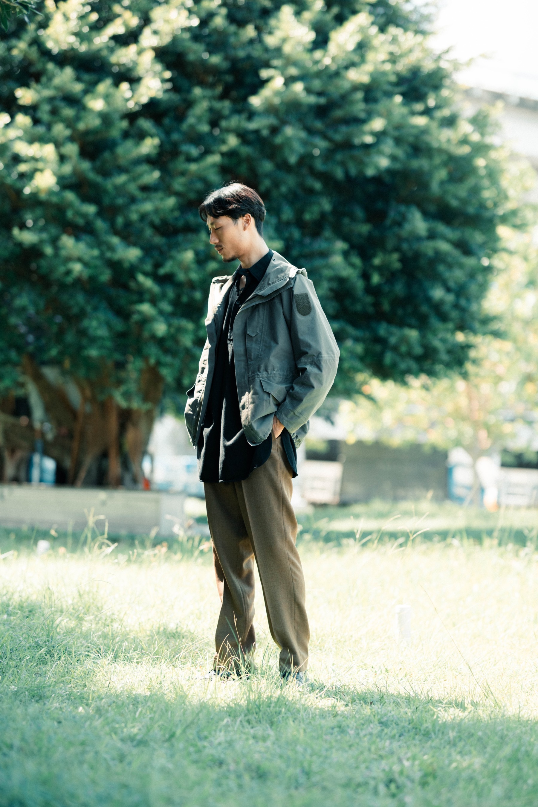 善用嚴謹與輕鬆的單品交錯穿搭的方式,和緩軍裝的嚴肅感,呈現出面對這個世界,心中清澈明朗的心境。