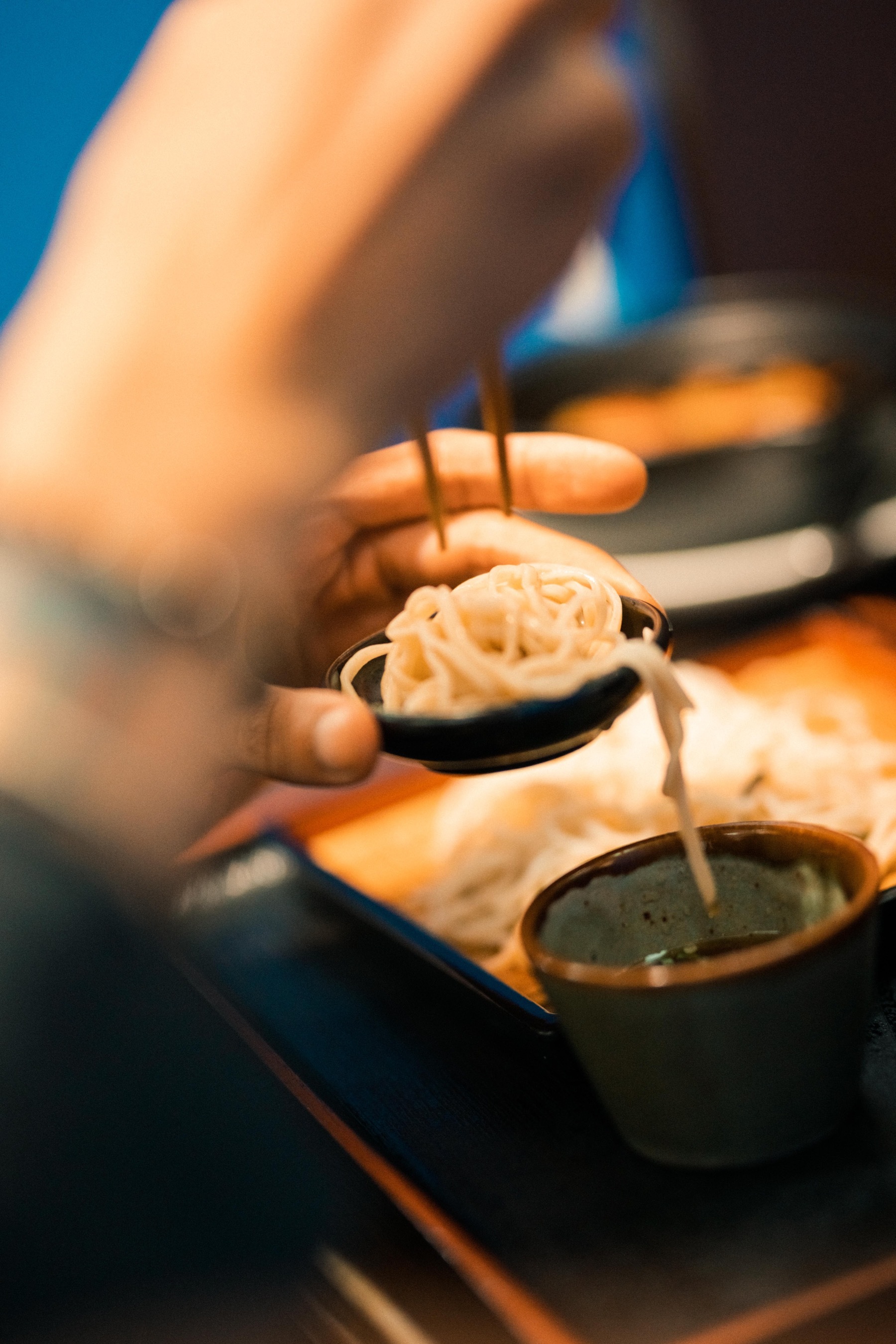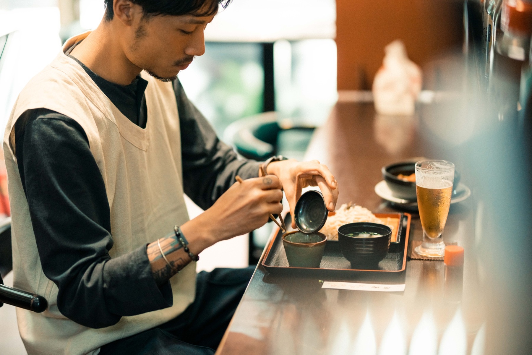 在夏日點一份清爽的冷麵,沾點老闆的特調醬汁,「ズルズル」地將麵條與湯汁大口吃下,感受結實有嚼勁的麵體帶著淡淡的麥香。配上吸滿高湯的玉子燒,咬下的瞬間感覺到與軟嫩的蛋液結合的湯汁在口腔中化開的滿足,才意識到原來生活中那些微小的快樂離我們這麼近。