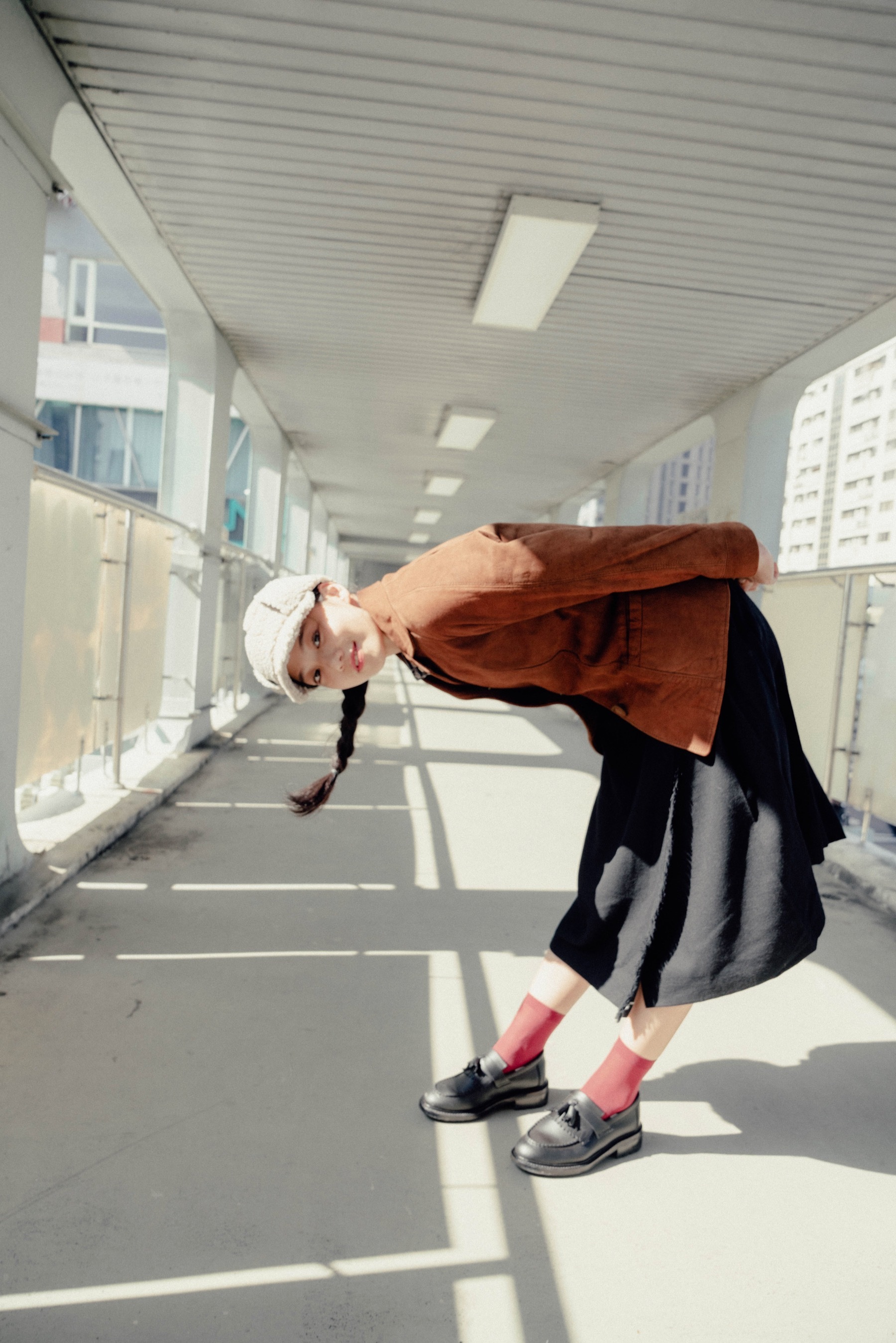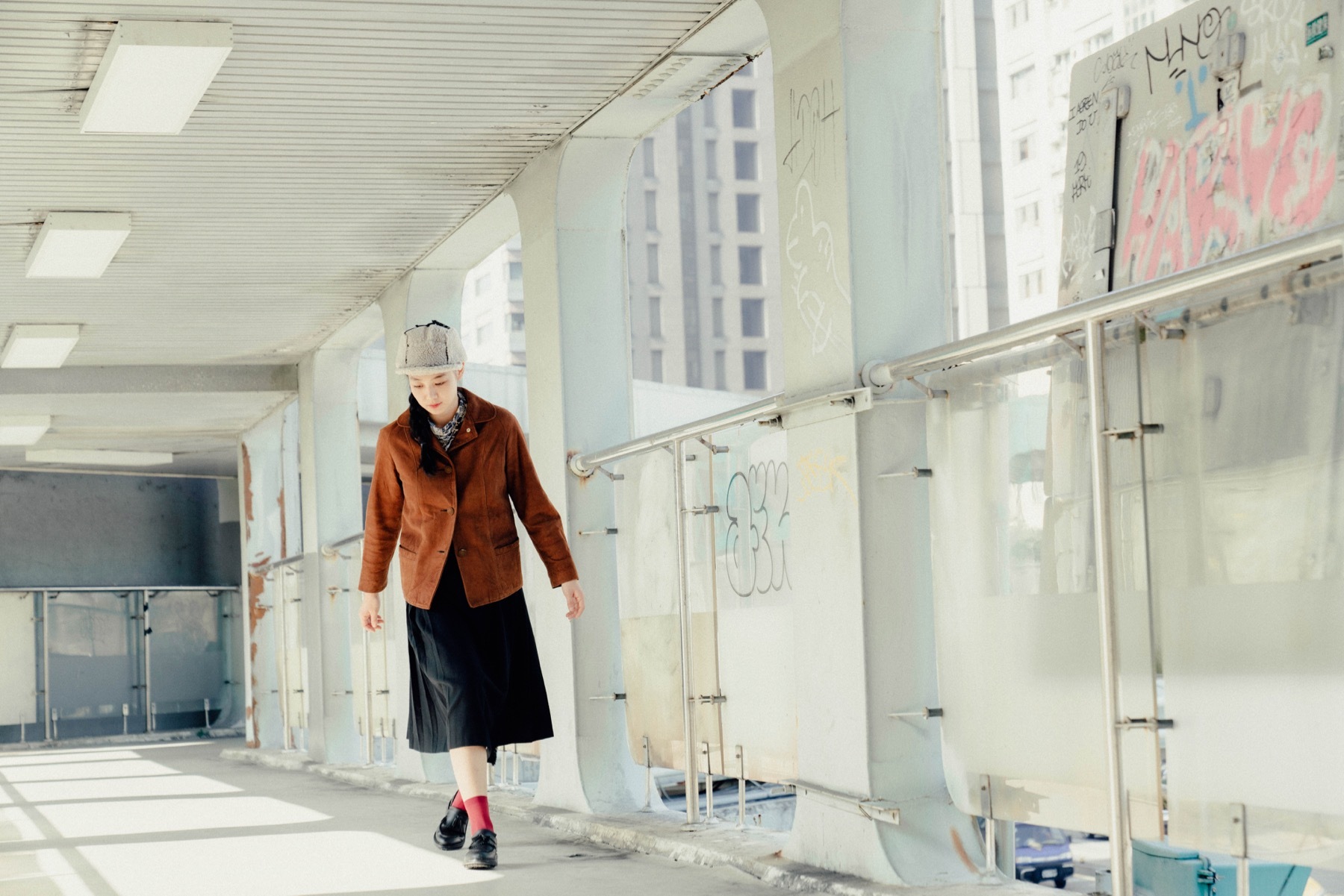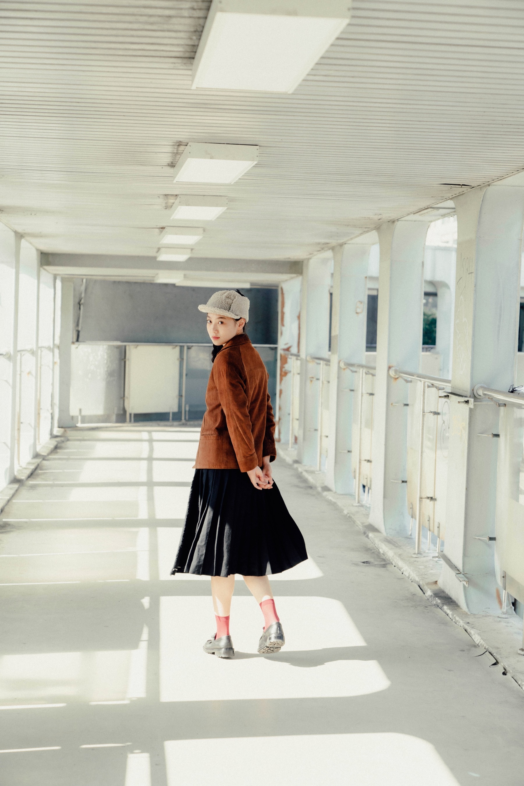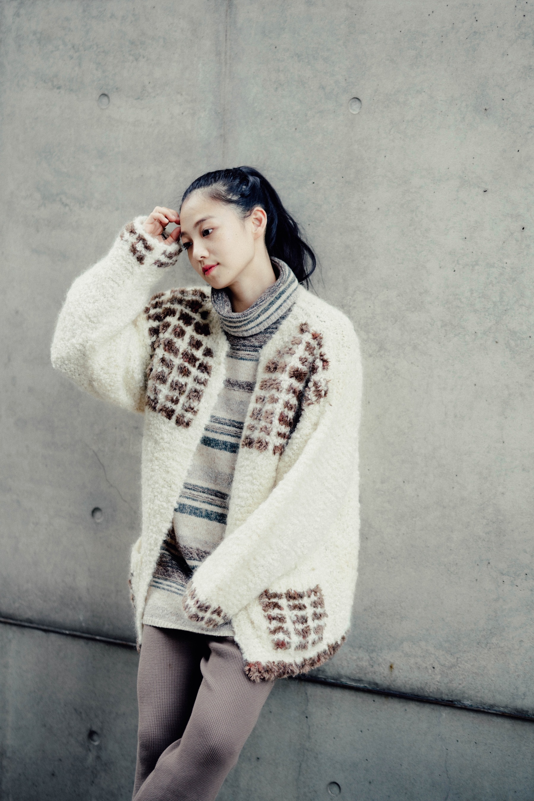 它像一襲被秋冬暈染過後的溫柔裝束,舒適的大地色系領頭,並以色塊完成整體,從頭到腳散發出無盡的優雅,內著為 WALLA WALLA 的針織上衣以及半身裙,溫柔的調色,堅韌的布料,柔和卻倔將。