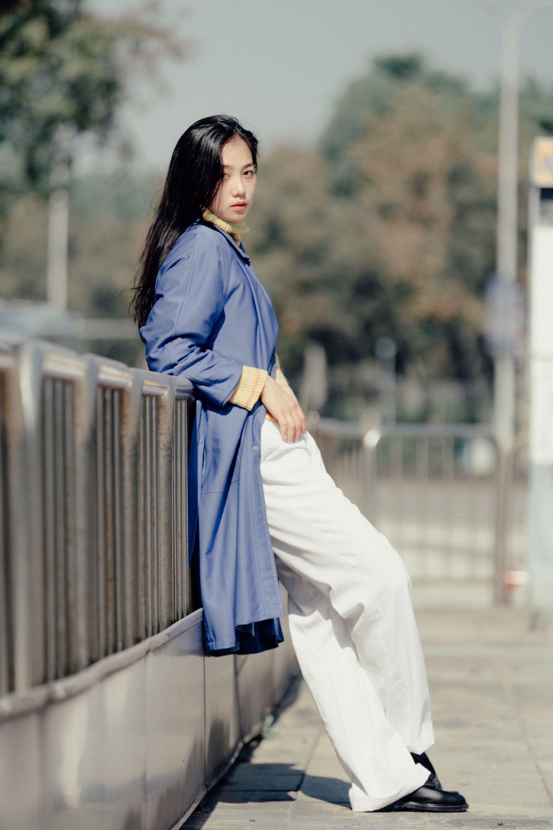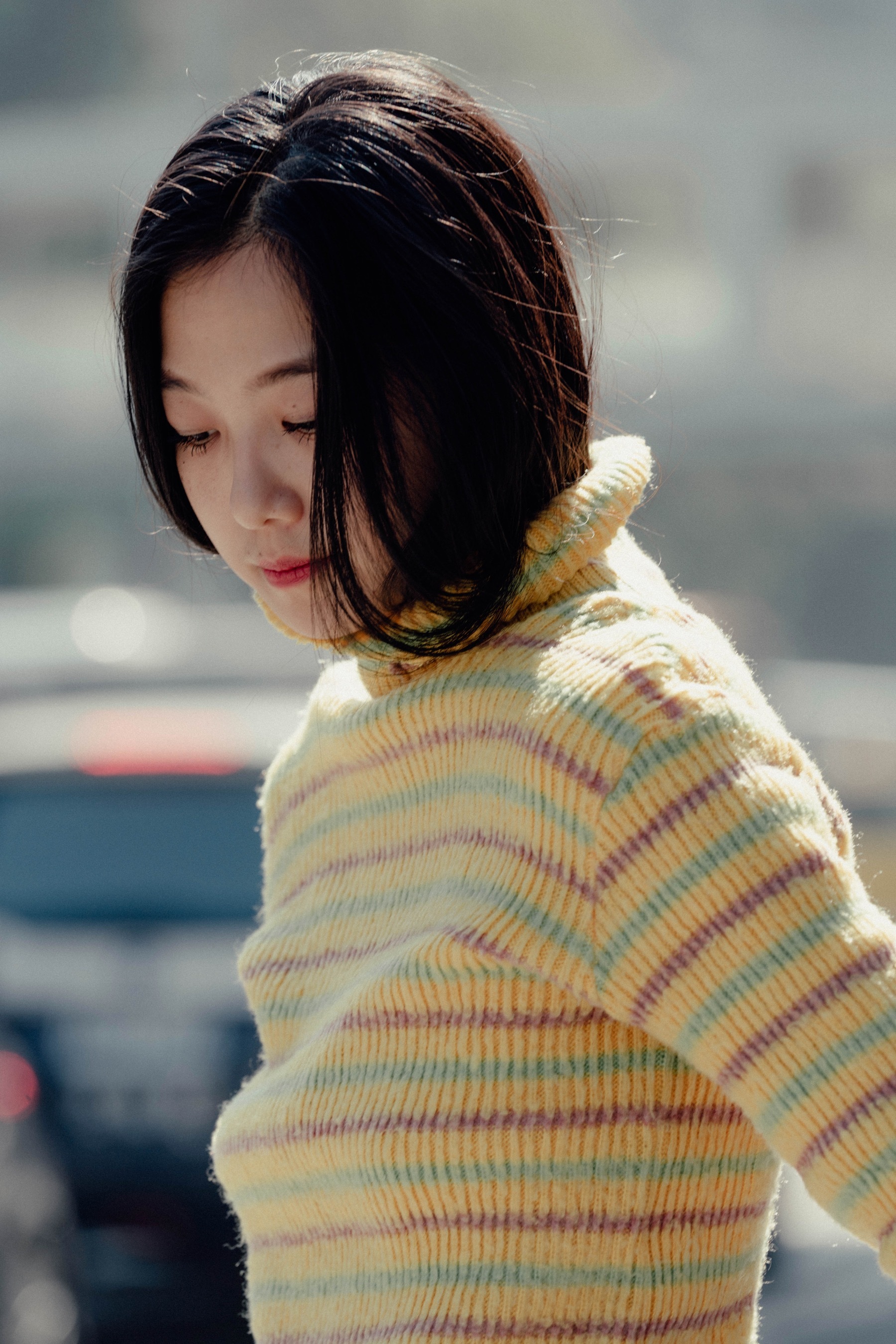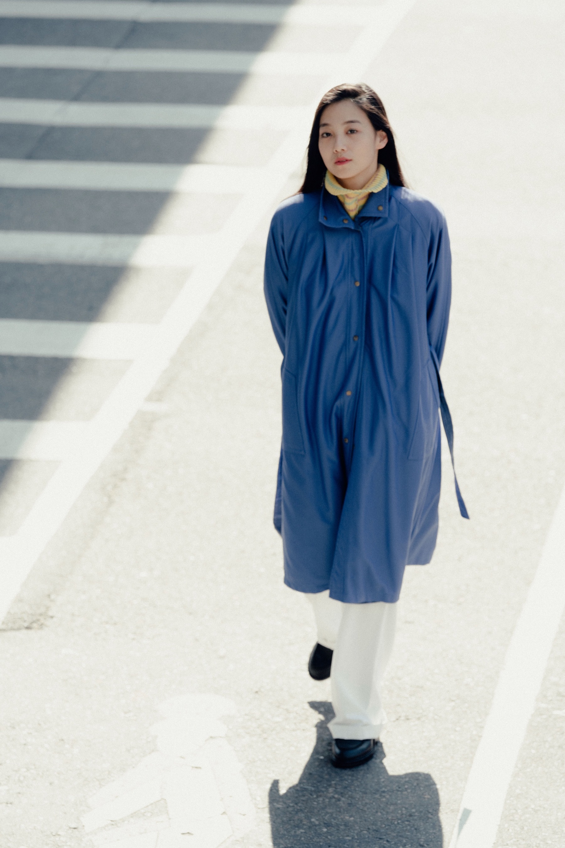 即使每天都冷的你直賴床,出門後路上行人都默契的穿上千篇一律的深色系冬日裝束,但你還是決定今天必須亮麗可愛,高飽和的藍配上亮眼的黃條紋毛衣,以白雲一般的白色褲裝當作結尾,身在冬日,但心卻走向了春天,走起路來,飄揚的藍色衣襬,傘外陰雨綿綿,卻趕不走你的好心情。