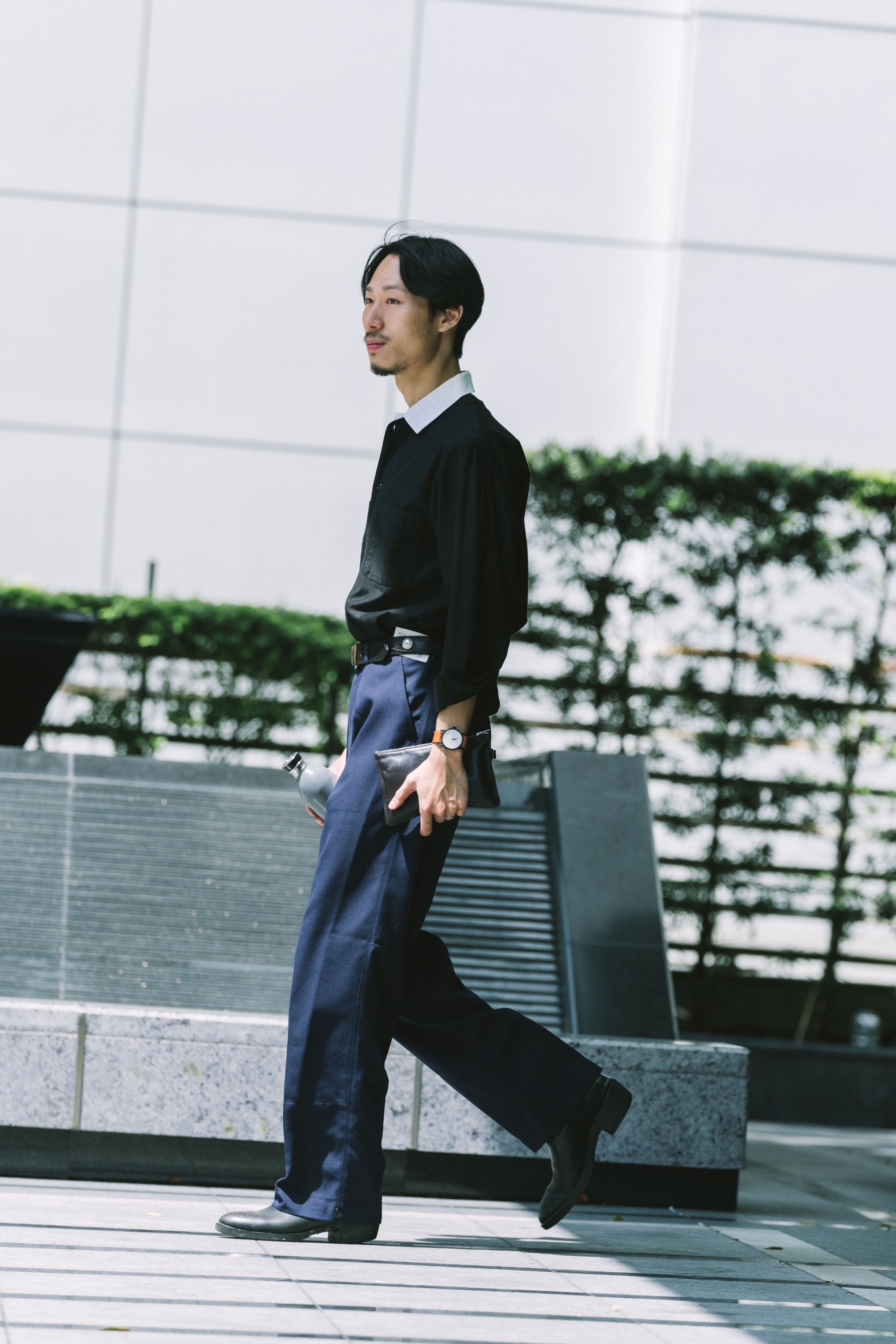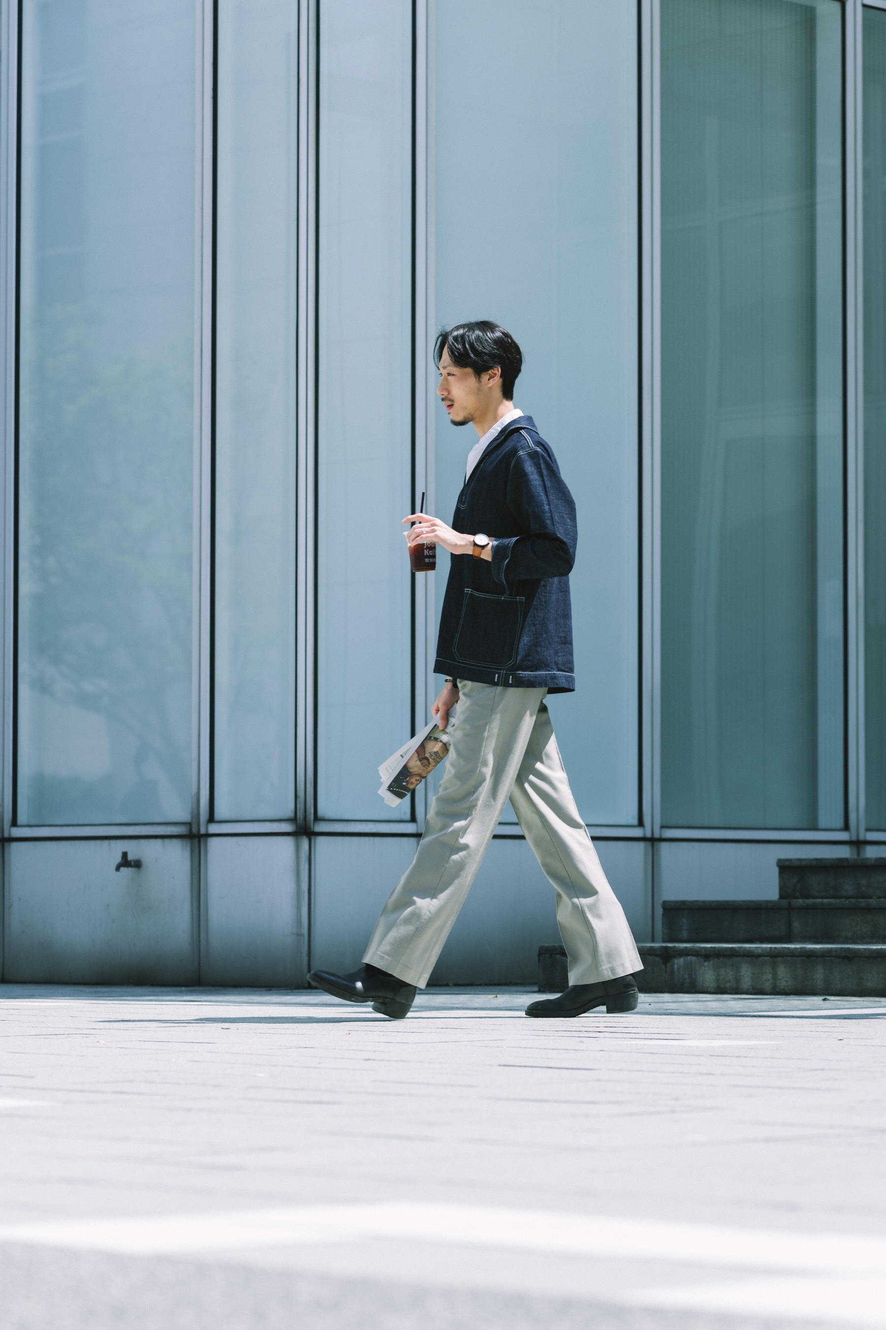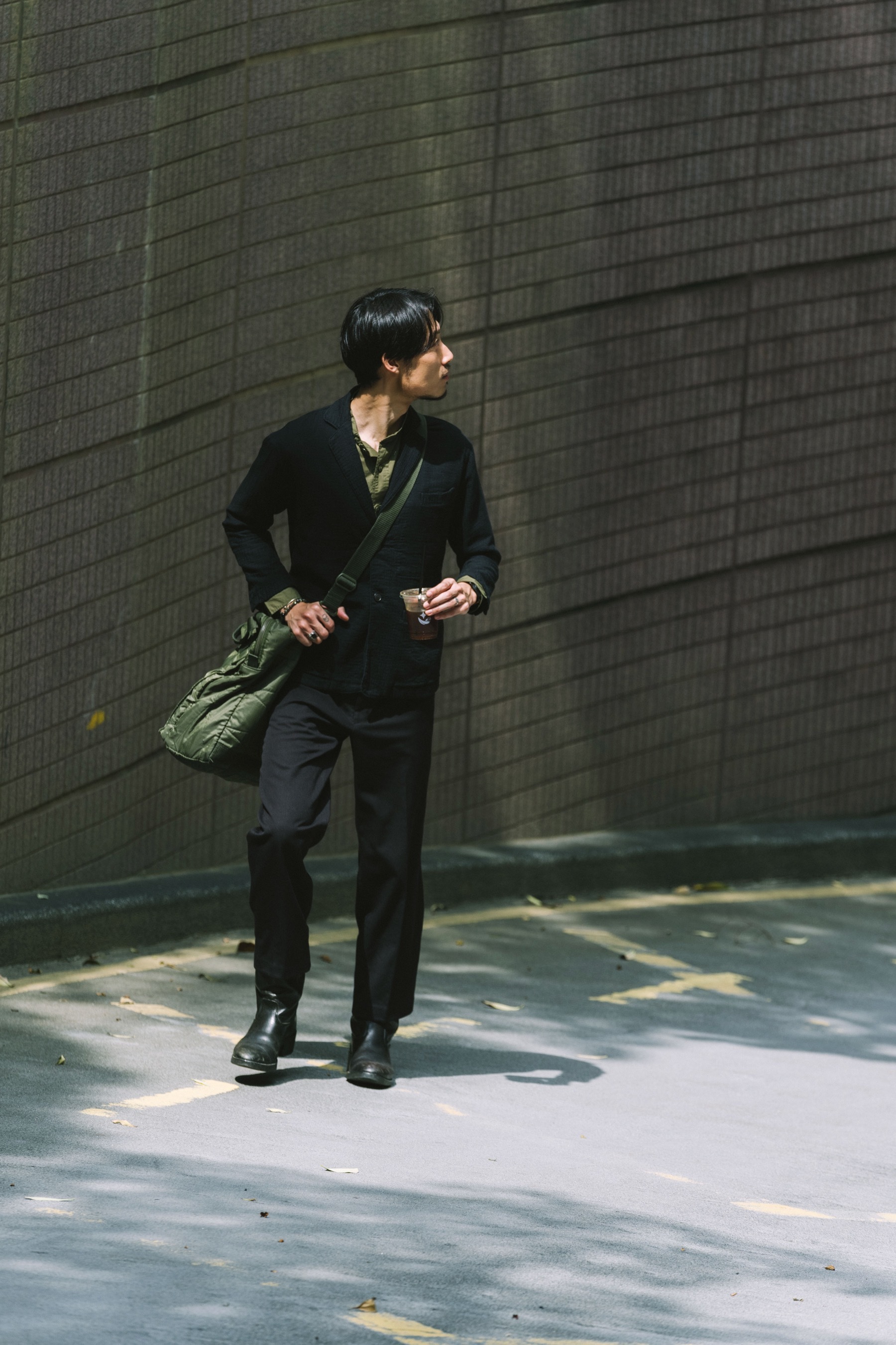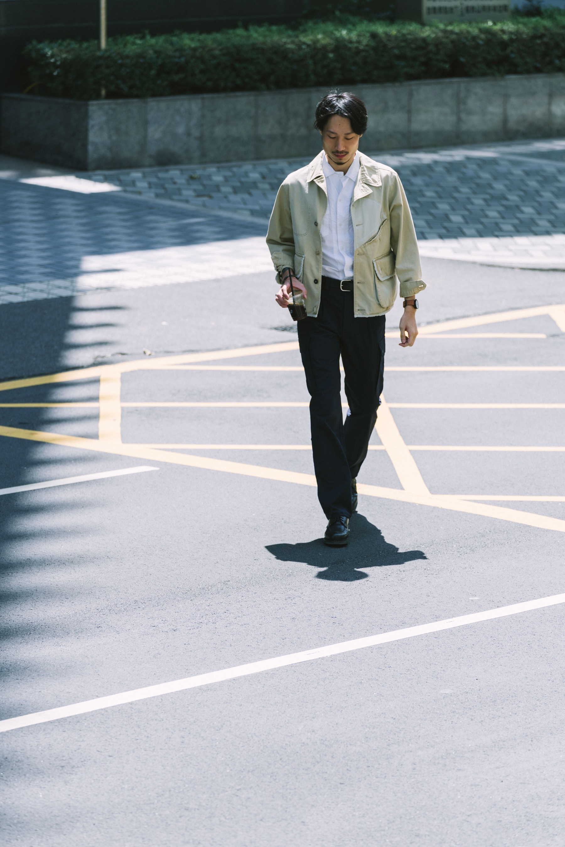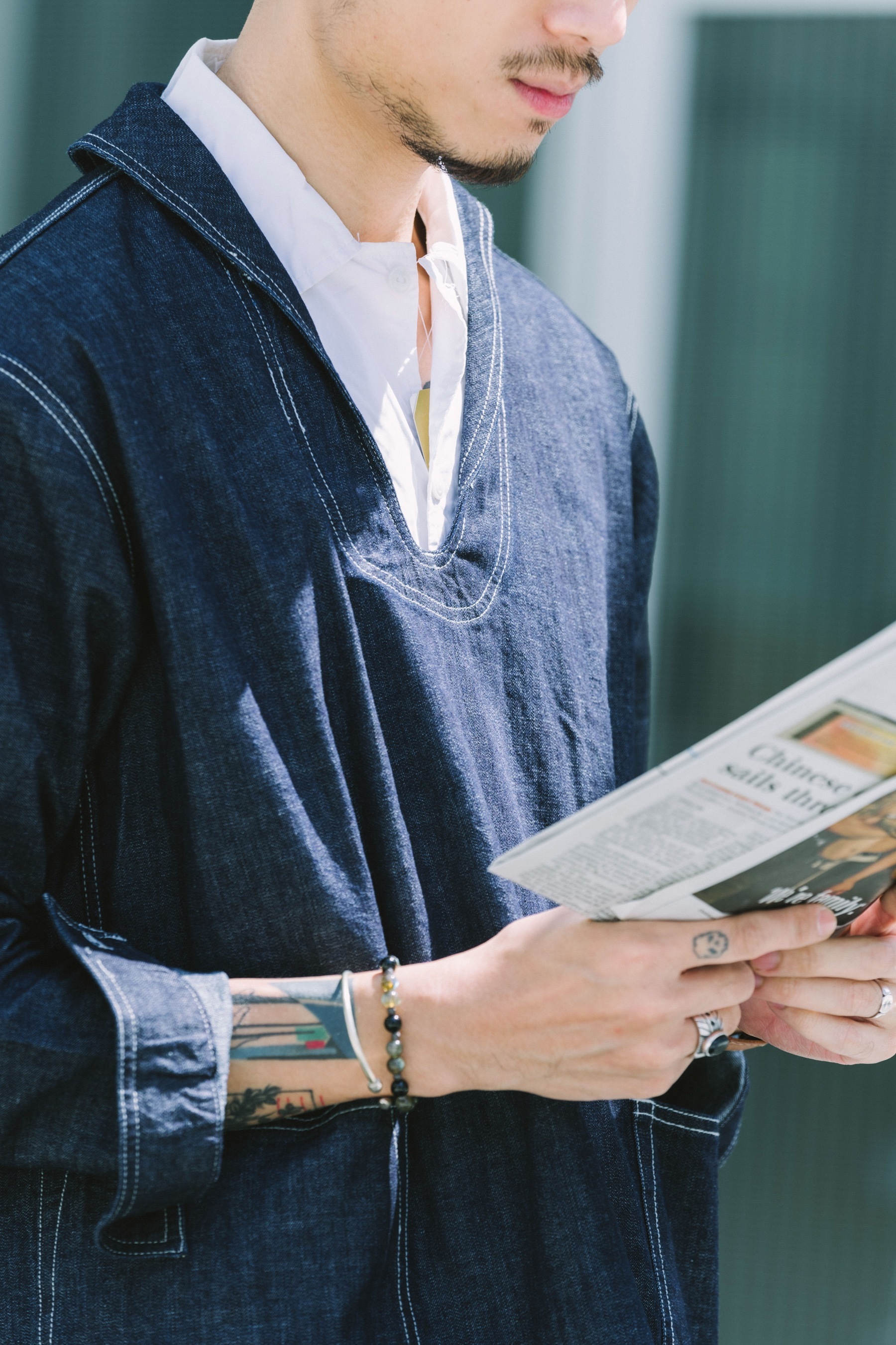 省去了西裝「成套」的拘束,上身選擇舒適的襯衫,配上同為以嚴謹的傳統服飾為傲的Porter Classic,在展現正裝的嚴謹之外,襯托出品味與工作能力上的細膩。以日本工藝的刺子織 (刺し子) 在面料上多一道交錯的運線,強化布料的韌性,同時增添織物上細緻的紋理。清爽的翻領與俐落的版型和基本卻充滿心機的紋理,證明你對於品味的敏感及充滿理想的用心。