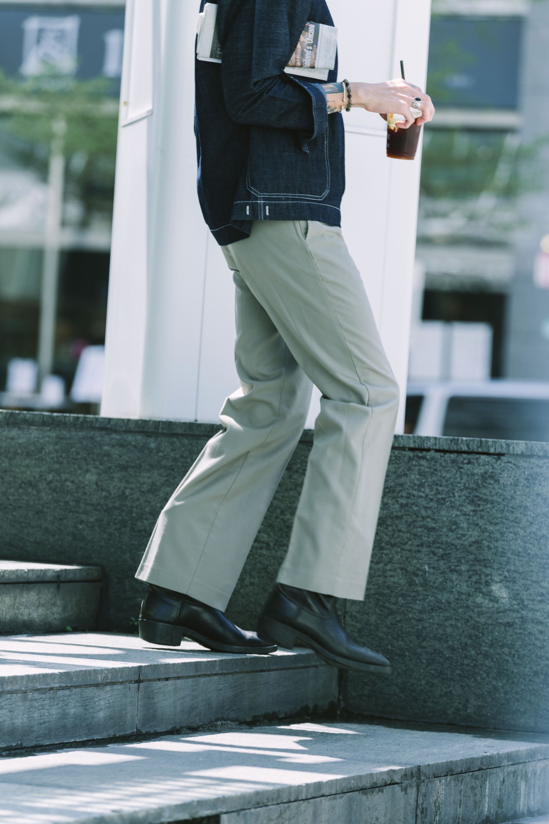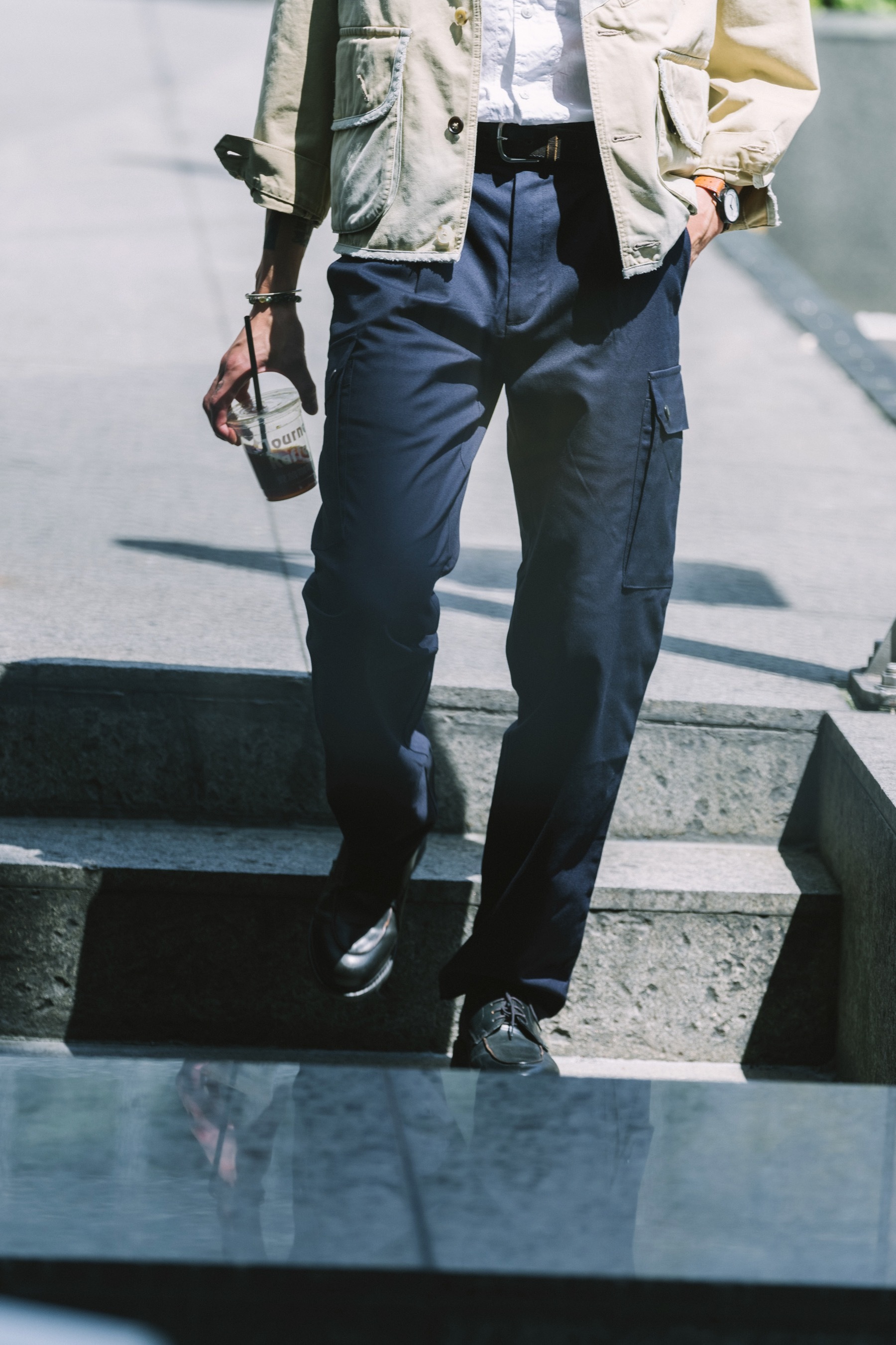 在職場上,著用西裝褲 (Suit pants) 通常會成套搭配相同印花的西裝外套(Suit jacket),展現比較正式嚴謹的氣氛。但成套的「定律」往往也成為限制。這個時候,同樣以正裝為考量的軍褲,反而是職場中靈活運用的王道單品。