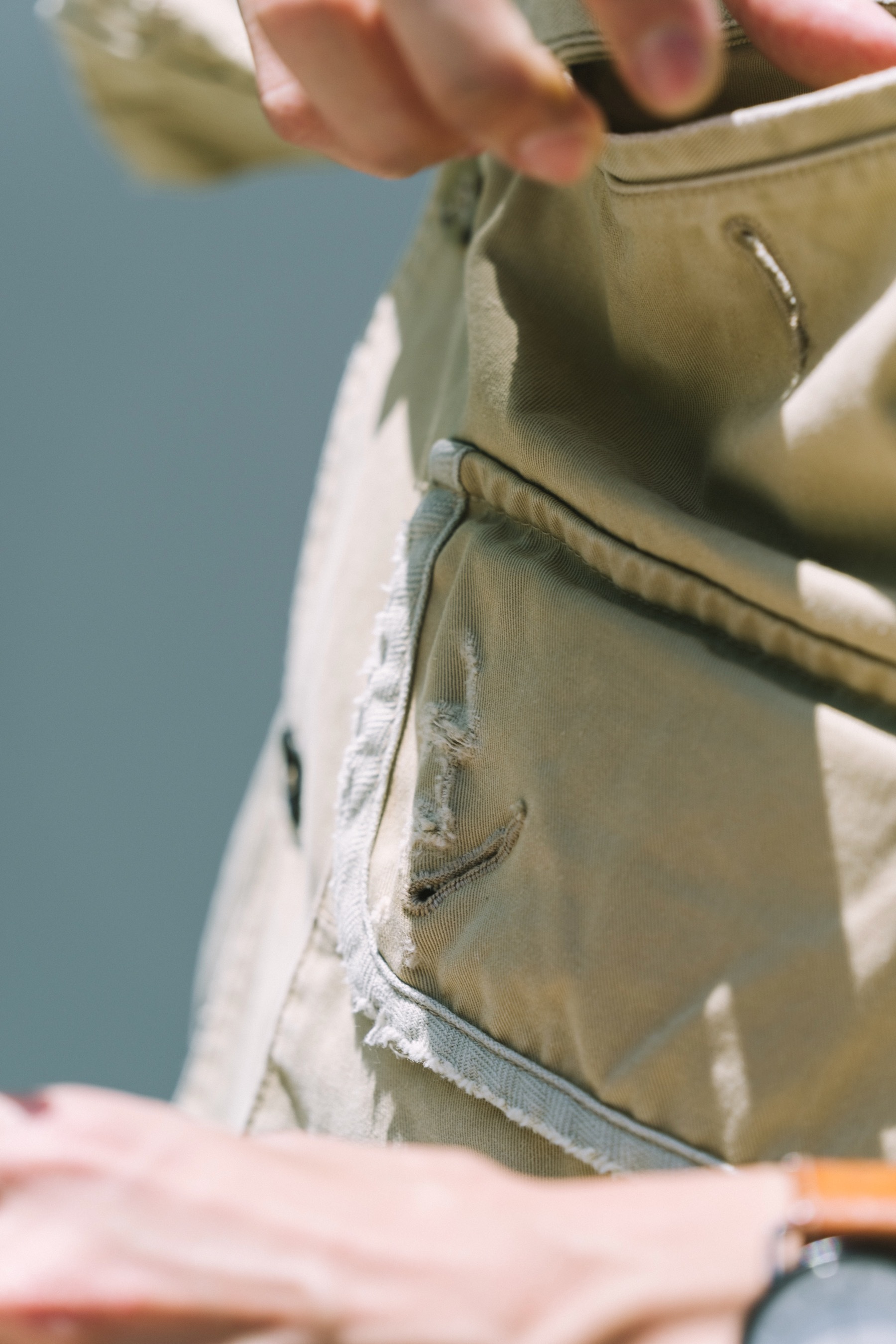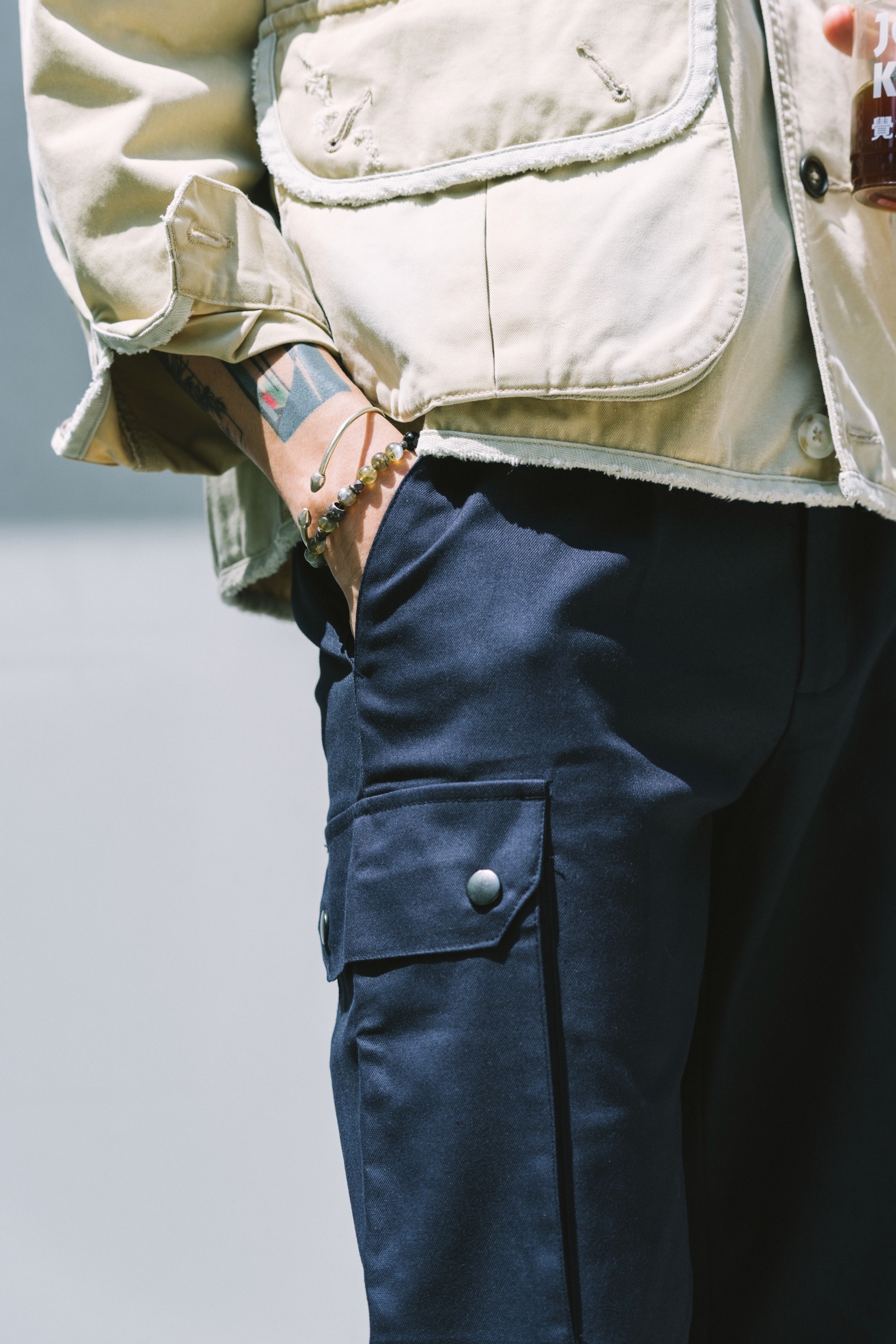 法軍公發的Dress Pants 充分淬鍊出「游刃有餘」的情境。軍裝經典的卡其色給人清爽的第一印象,而法軍一如往常的雅致也體現在簡樸的版型中。最令人感到驚奇的是褲頭的調整釦與後腰隱藏的鬆緊帶,細膩的淺卡其色與別緻的縫線,保留了法國典雅的美感。
