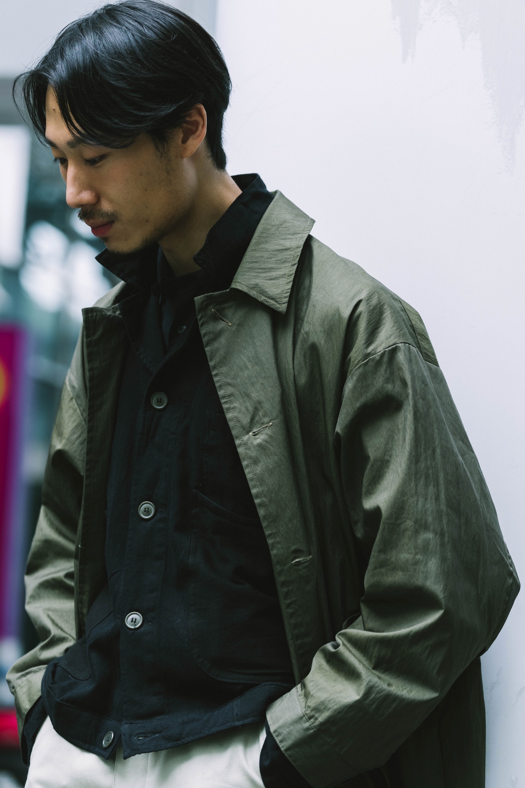 最後套上一件淺色的外套,凸顯開放明亮的氛圍。以日本紡紗廠的棉紗織成充滿色澤的精梳棉,再以硬加工強化材料的韌度,同時避免棉岔,呈現棉花柔軟與光滑的本職。充滿想法的 Porter Classic 以拼布與交錯的層次取代外套的平鋪直敘,定義屬於自己的帥氣。