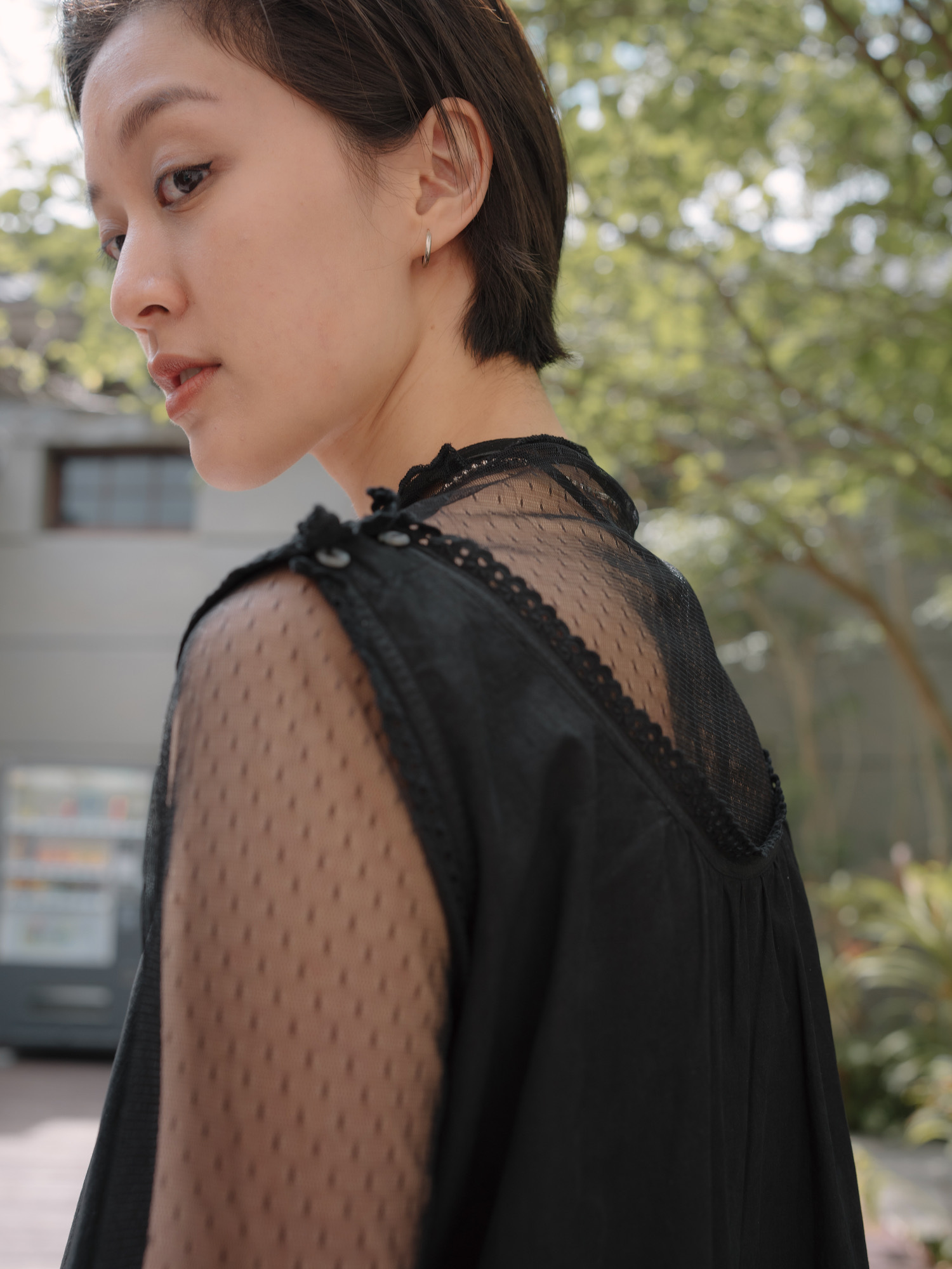 源自 1930 年代的法國教堂罩衫,輕透的面料無論是交疊的層次穿搭、或是恣意地單穿都能打造不同的風格面向。
