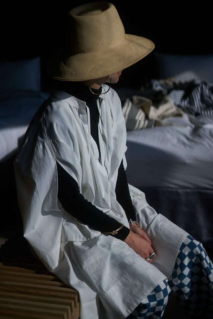 設計師 Ayaka Yamamoto 採用樸實的配色及古典的版型,以日本的工藝製作,設計出與穿著者非常「親近」的衣著。超越了外在「美麗」的概念,而是加強地理解,所設計出來的「美」在日復一日的衣著中,如何帶給人溫暖?如何將美傳遞、運用在日常裡?