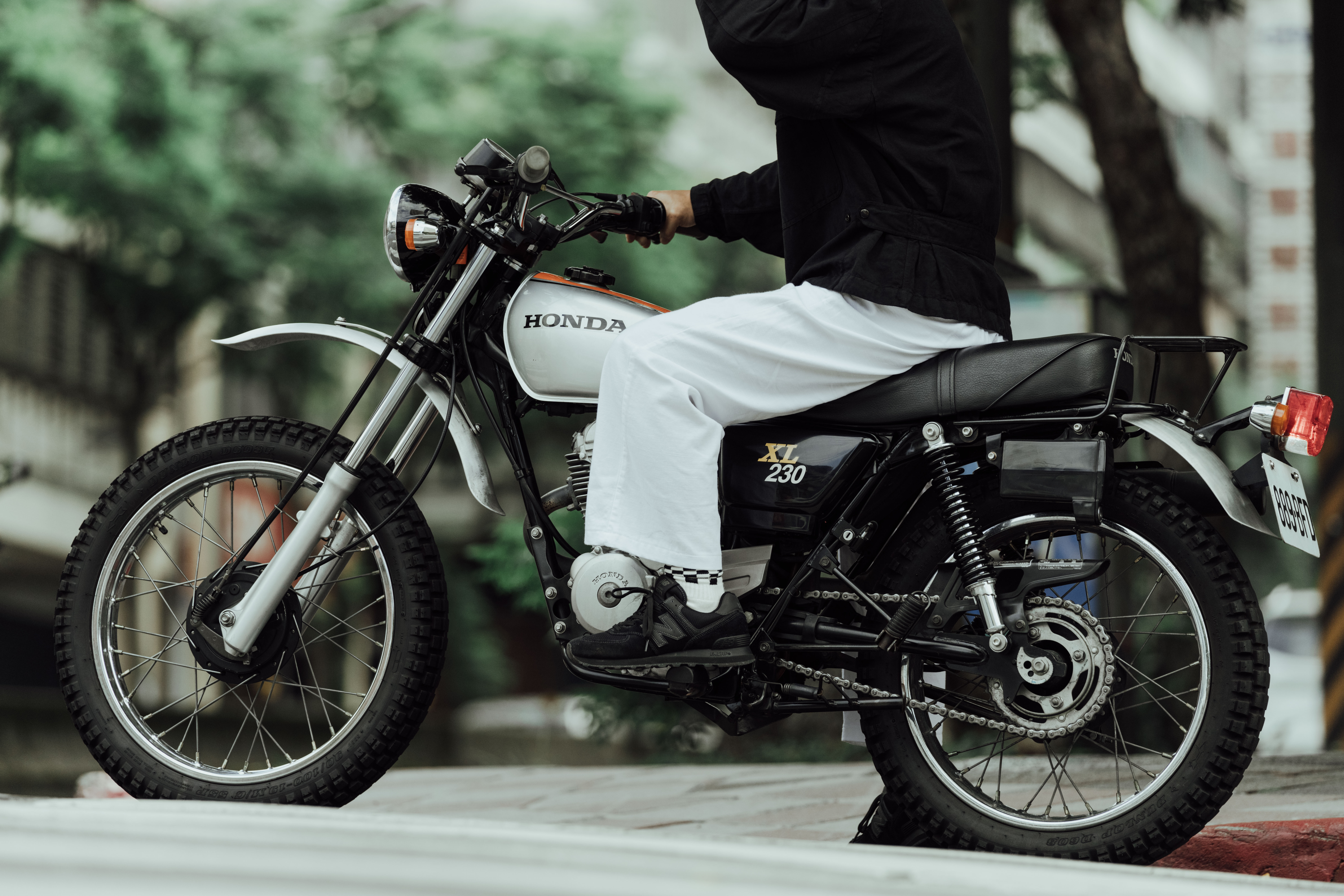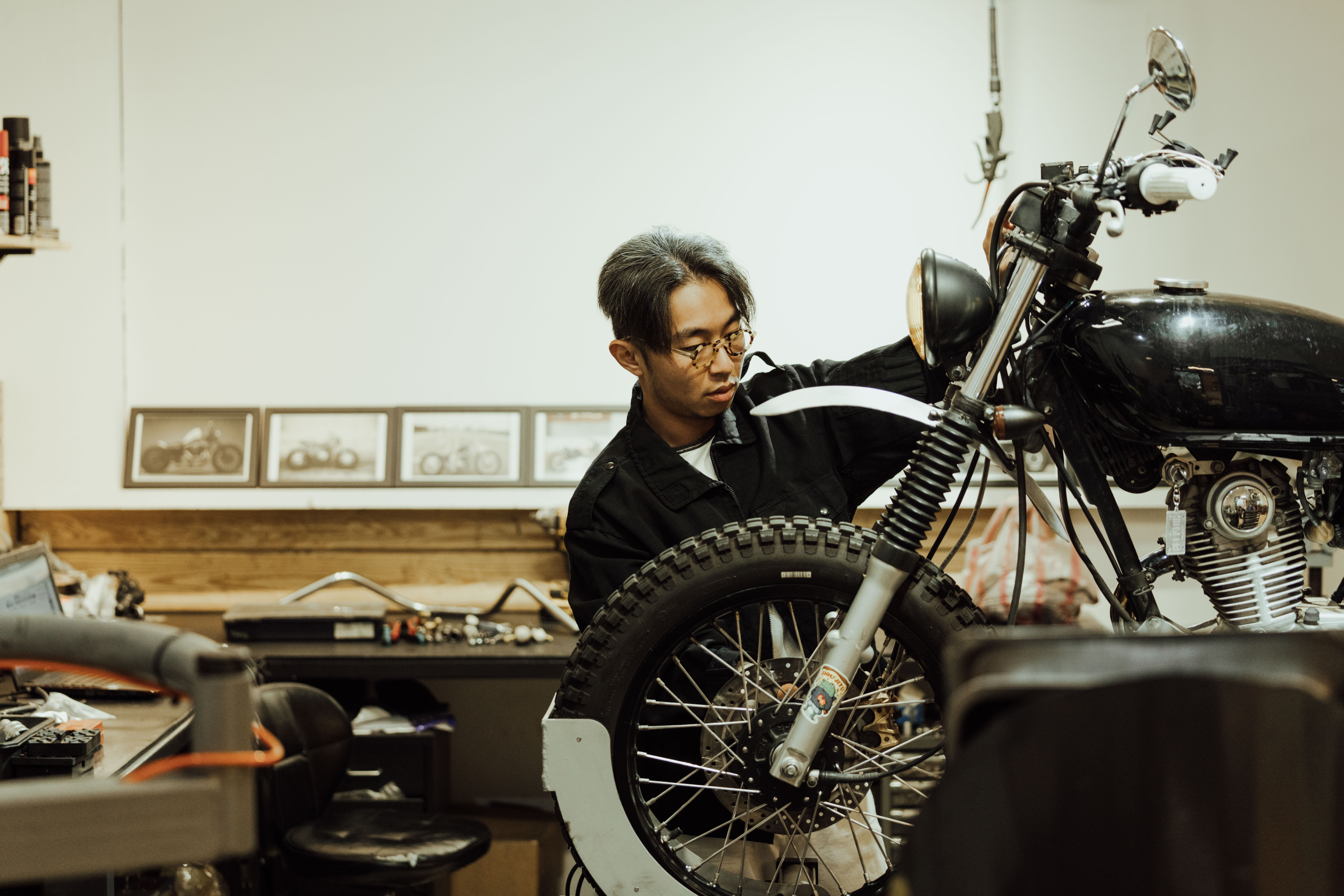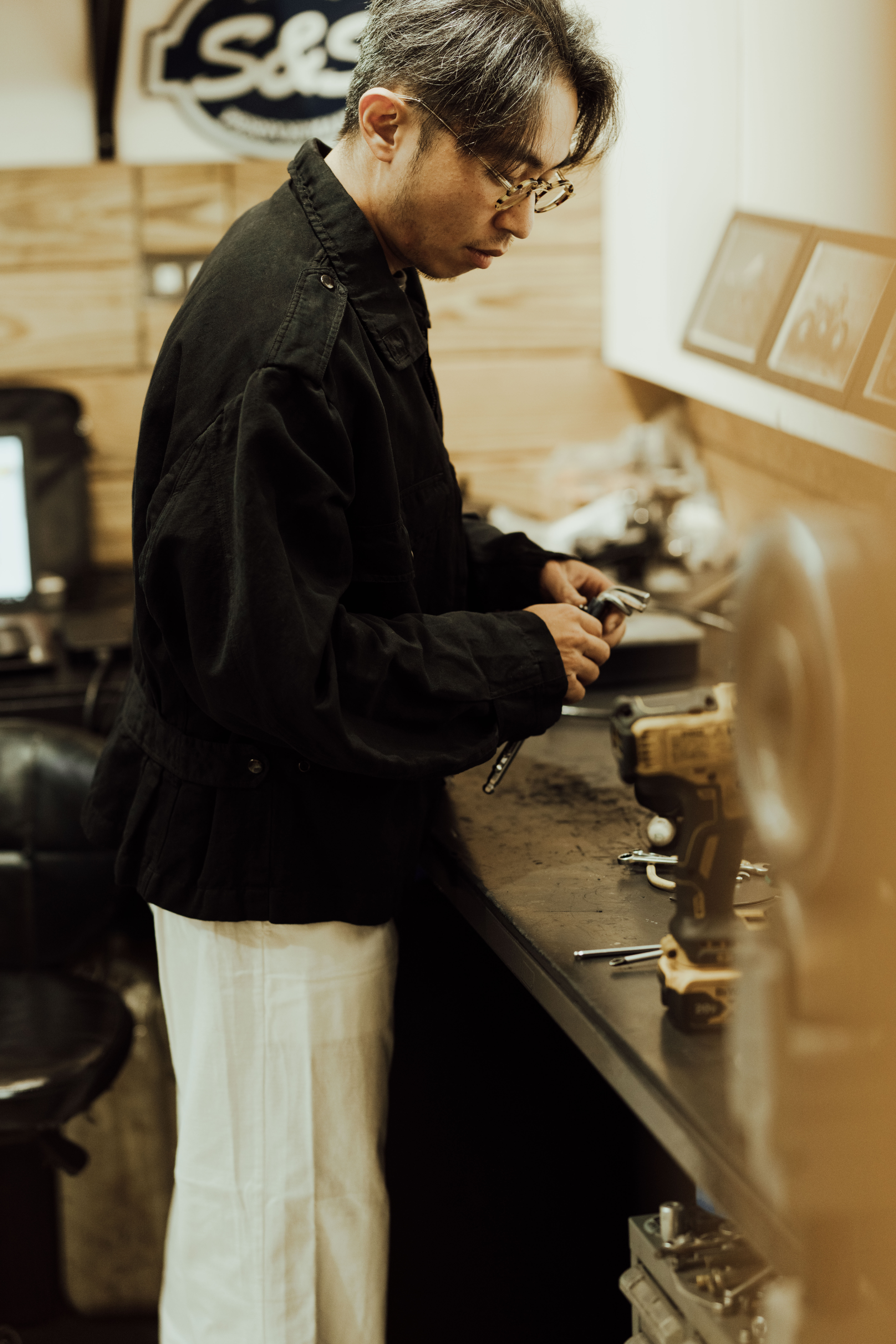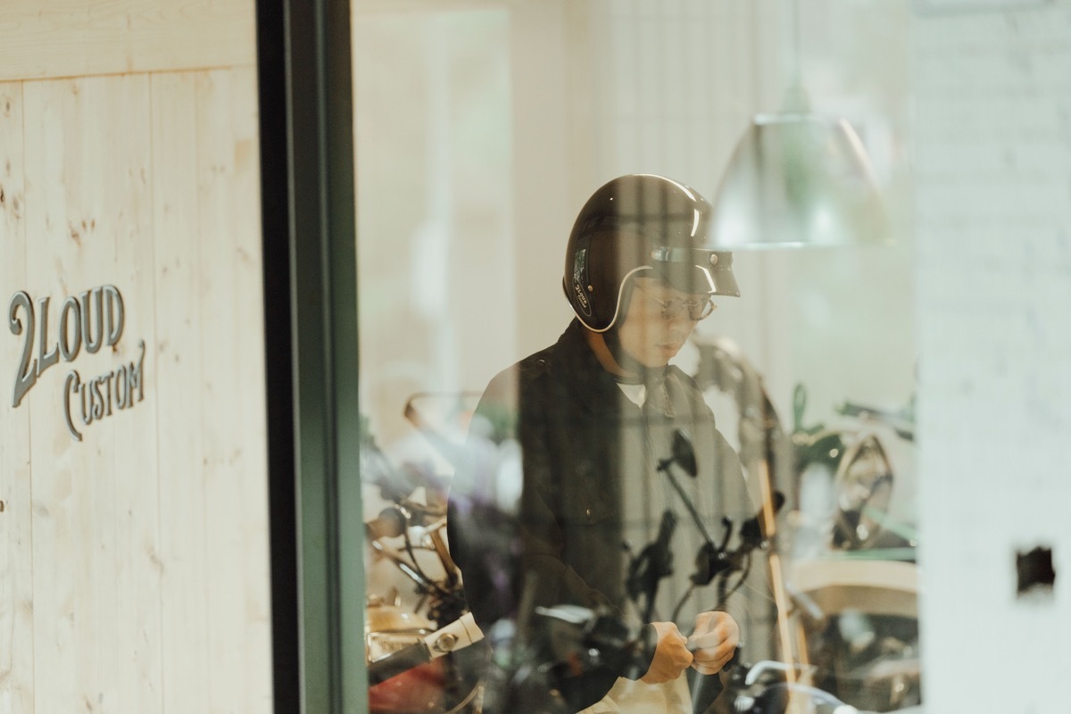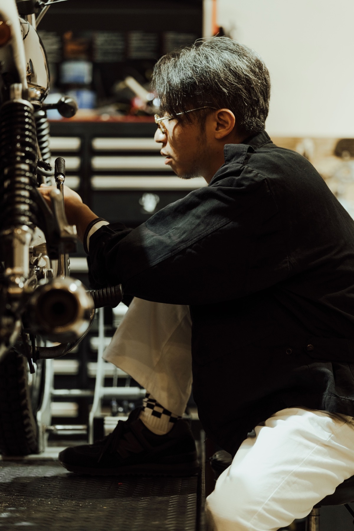 改裝老車的小馬在穿著上也蠻「新舊並存」的,平時喜愛將新的穿著元素融合在工裝當中。