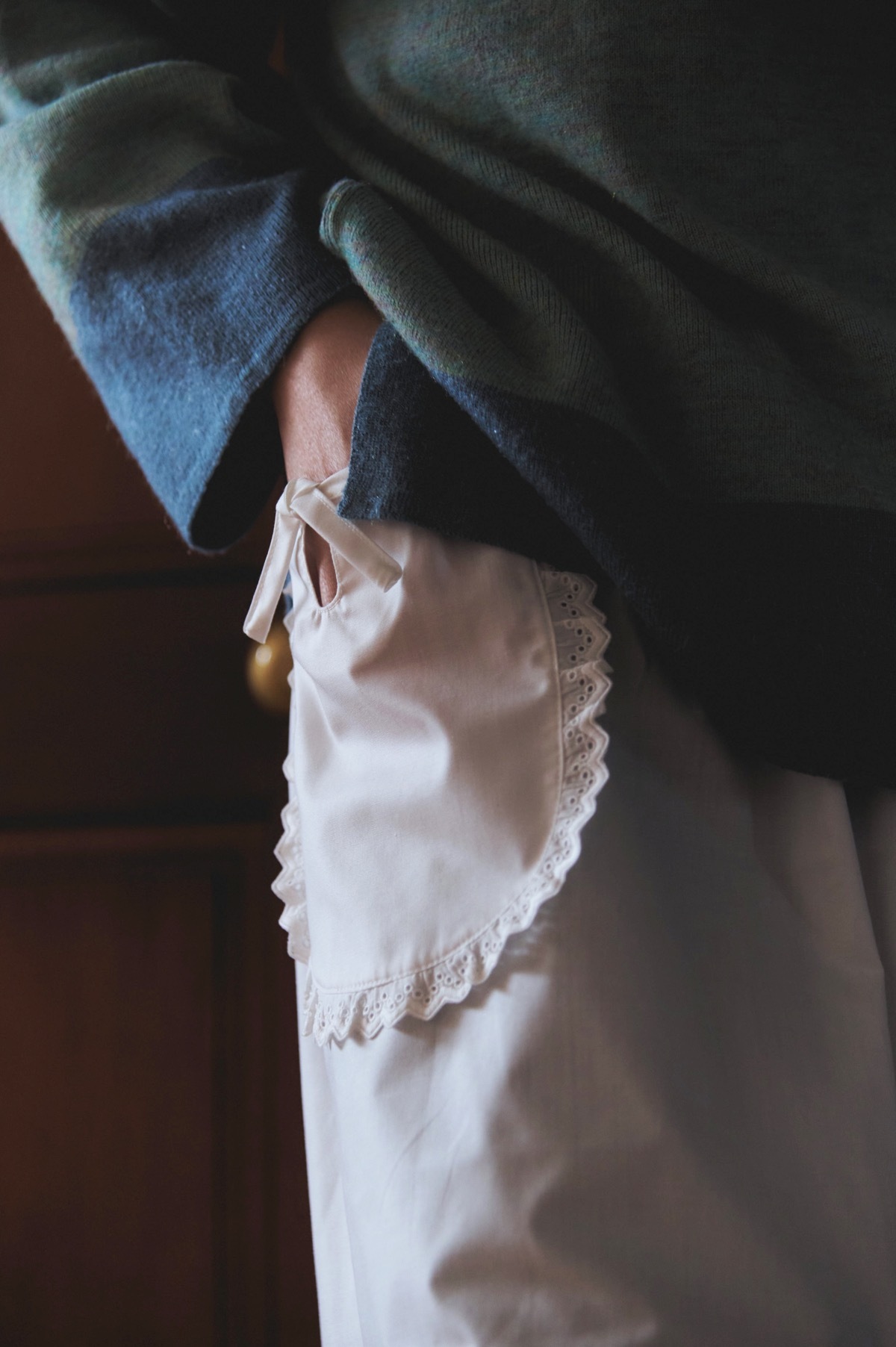 以天鵝絨質地的 Vintage 背心搭配 YSL經典圍裙,在范姜和馮馮身上擦裝出了靈氣的美。這樣子最單純、不矯揉造作的美,也許就像是片山在設計甜點作品時的概念—— 理解每一個概念的本質、認真思考想要呈現的樣貌,然後就去實踐它。這麼一來,每一天日常的穿搭、每一座甜點的小山,都讓我們更踏實的往更好的自己前進著。