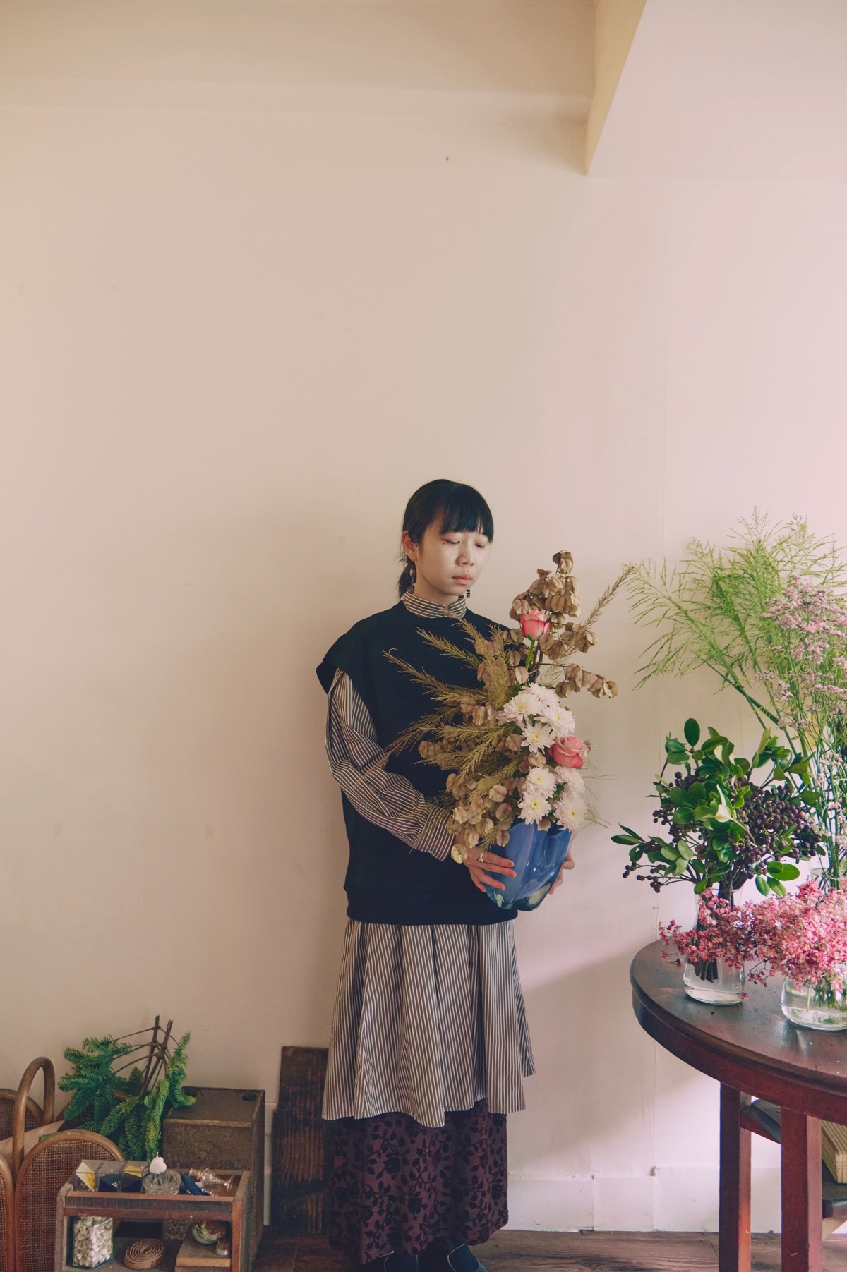 也因著沒有制式的規範,更需要去權衡每一個細節— 花材的特色、花型的疏與密、留白的脈絡⋯⋯ 這些思考都雕塑著陳曦對花道、對花、對於平凡生活和對「自己」的連結。