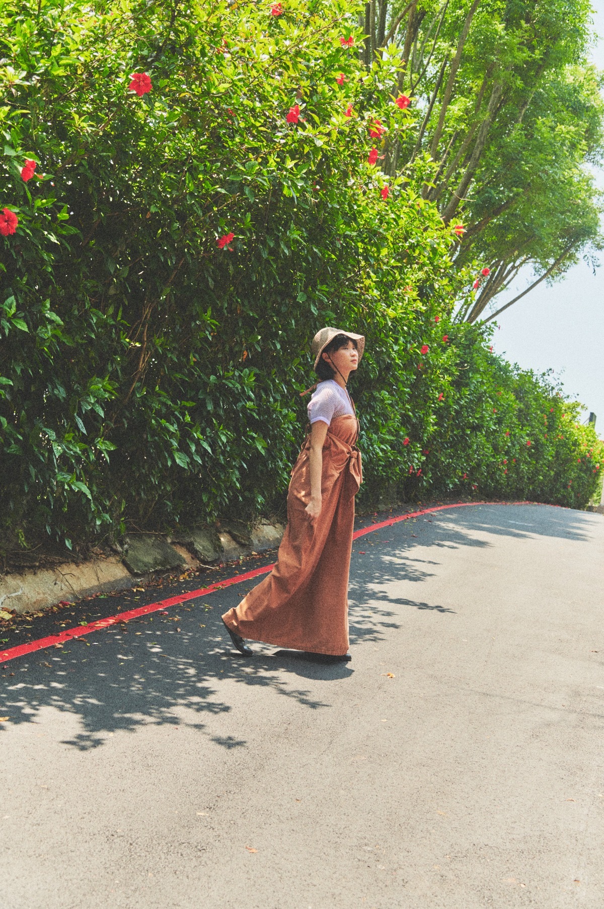 隨著腳步移動而飄逸的裙襬,有著沈穩又優雅的大地色,這件來自捷克軍用洋裝改製的 F5 Vintage Czech Strap Heavy Medical Dress,原本是件長版罩衫,將版型改為平口洋裝,隨著內搭衣服的變化,讓造型更有新意。延續衣料的挺實,我們用透膚的丹麥網衣製造衝突感,讓視覺不那麼沈甸甸,接著配上 HALO COMMODITY 的 Chip 與 REMADE F5 綁帶襯衫,透過小地方妝點視覺的平衡。
