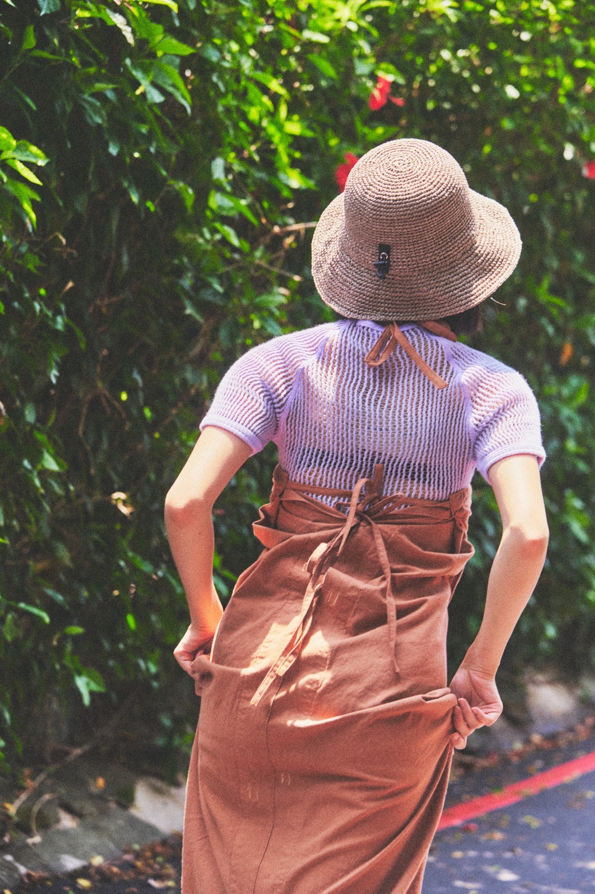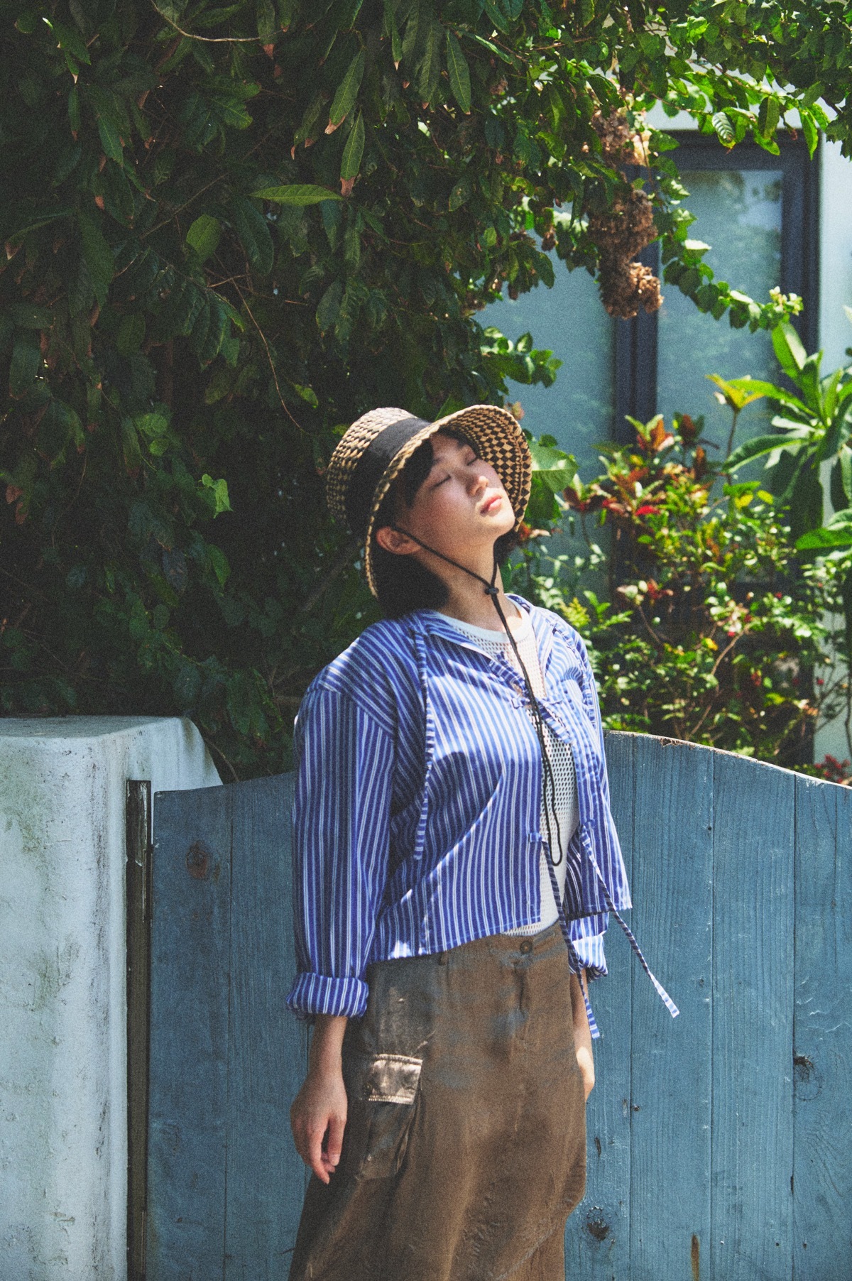 頭上的那頂 Plateau Hat,來自日本新興製帽品牌 HALO COMMODITY,以編織材質搭配簡單耐看的帽型,可完美遮陽,還能讓穿搭饒富新鮮感。