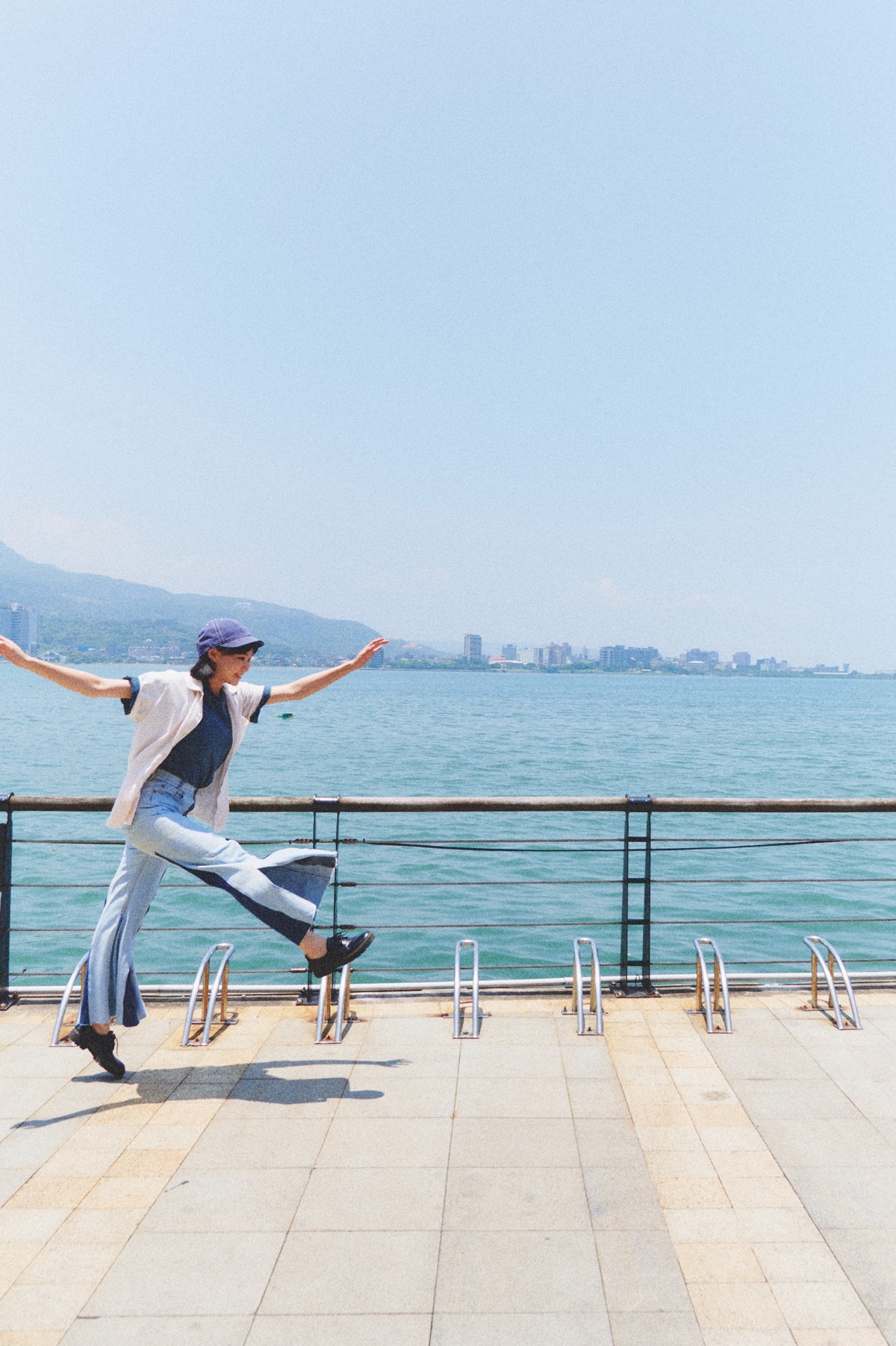 穿上與湖畔色調呼應的藍色 GOOD ON Kulu Kulu S/S Tee,有著挺實而親膚的觸感,外搭同為 GOOD ON 的米白色 Open Tee Shirt 與 Play Cap,即使是簡單的單品,卻是最百搭不敗的組合,而帶點復古洗舊感的質料,也為穿著製造迷人的痕跡美。