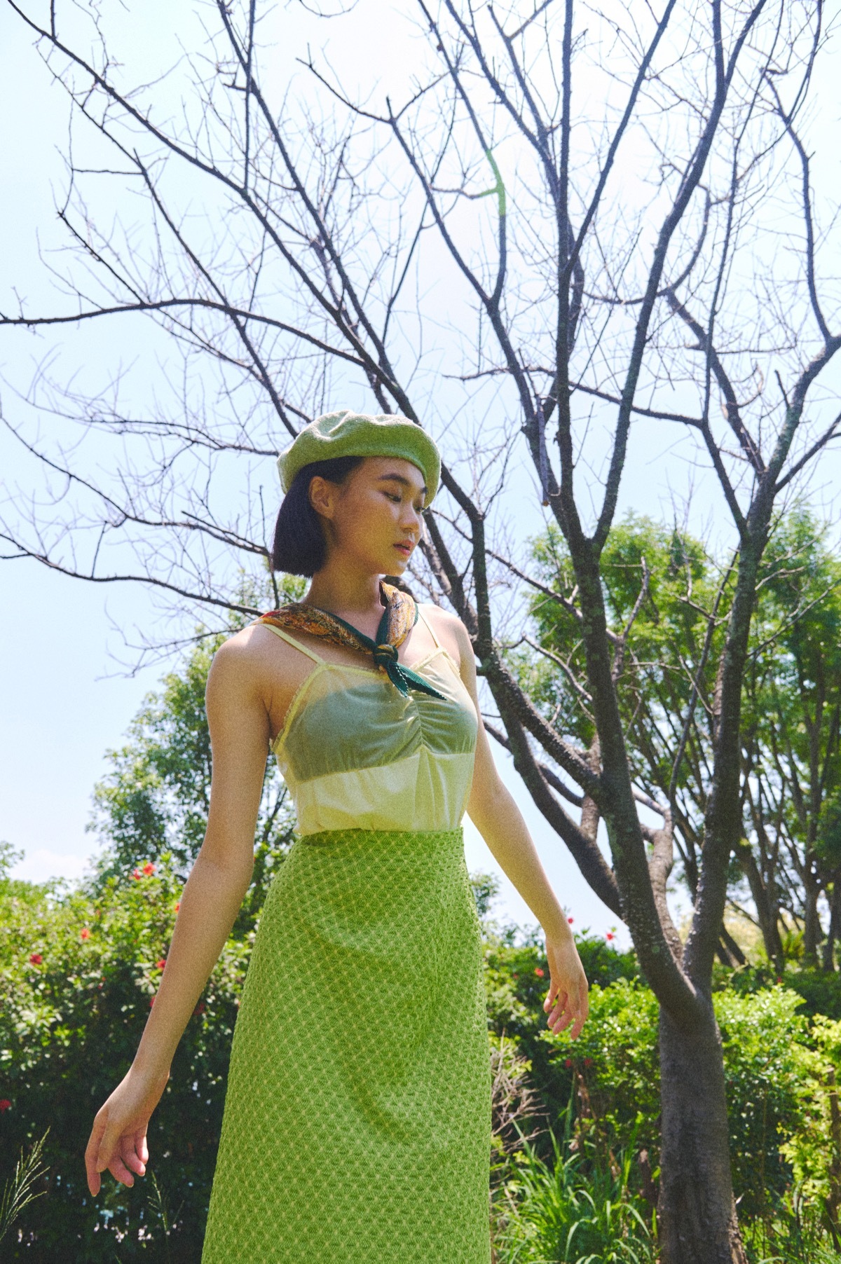 草莓聖代的魅力在於與人共享的愉悅,趕在冰淇淋融化前,用湯匙挖下一口口可愛的情懷,更不用說獨自享用時的滿足感了,儘管雀躍、豪邁地品嚐!這場多人或一人也能成立的約會,就穿上甜美多彩的裝束,以一襲輕盈優雅的 F5 Vintage Danish Army Mesh Shirt 搭配 Vintage 蕾絲裙,用柔美的丁香花紫、滿懷能量的柑橘色,相襯出這個季節的浪漫穿搭,最後繫上一只紅色絲巾,增添有如花朵綻放的迷人風采。