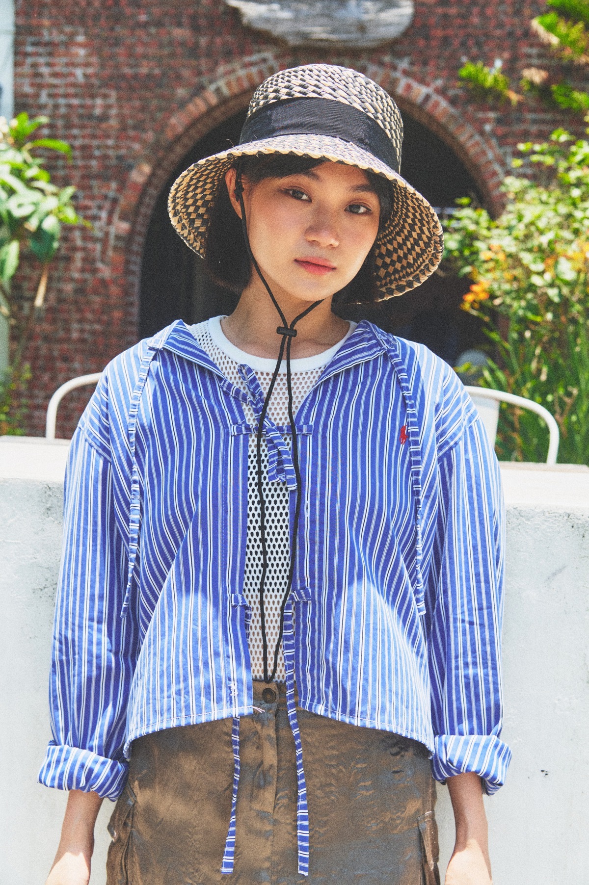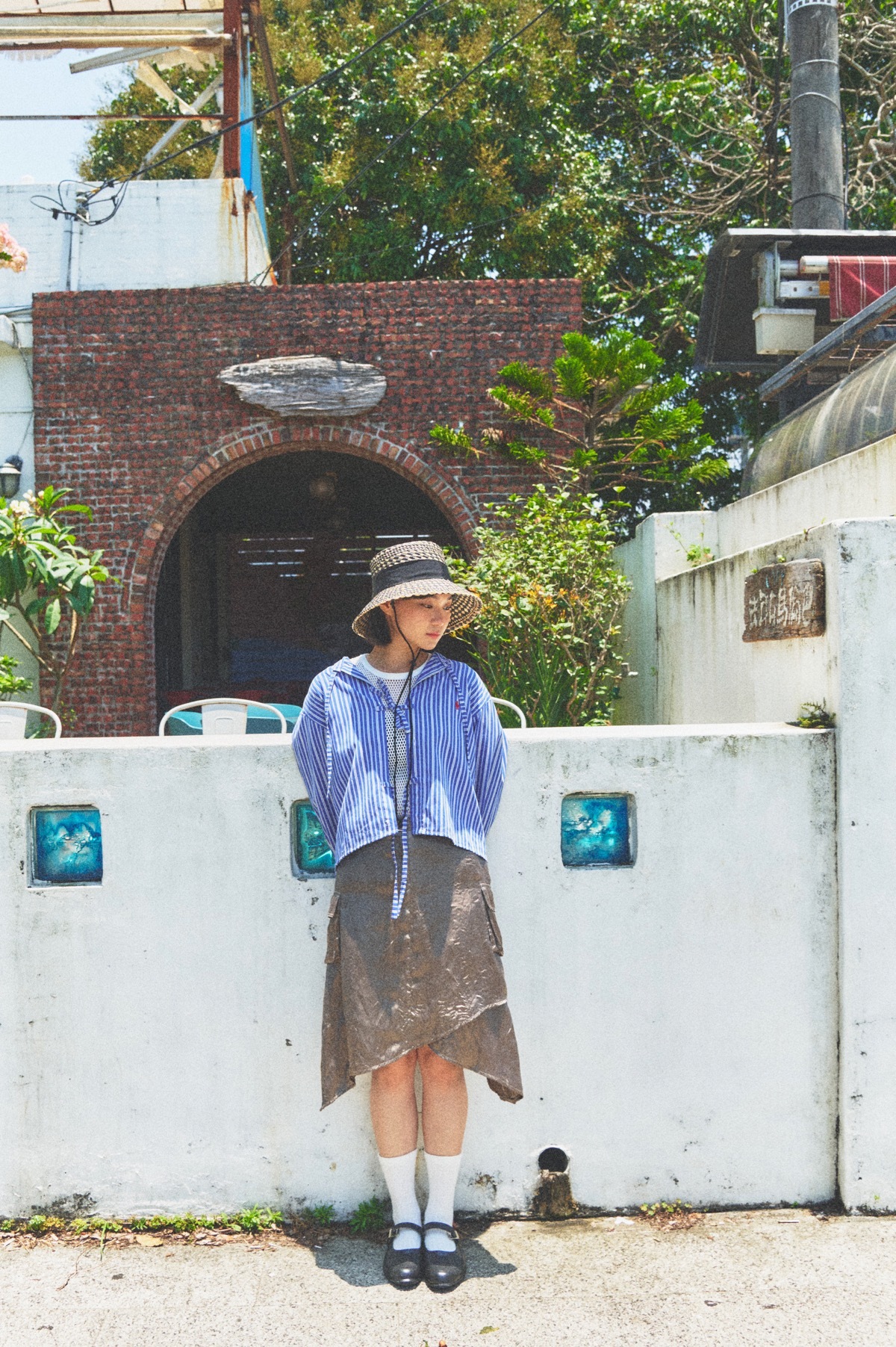 提到遮陽,我們推薦還可外搭由 VINTAGE 襯衫改製的 F5 綁帶襯衫,有著獨一無二的花紋,