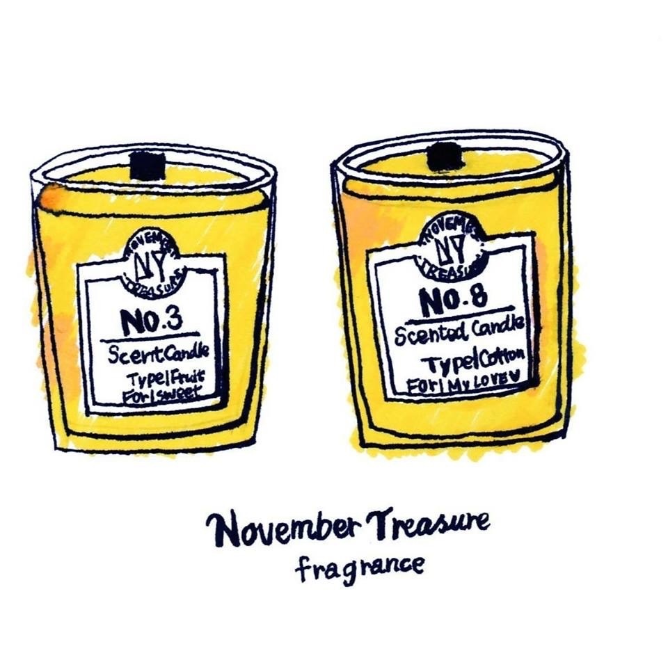 自 2014 年創立的 November Treasure,是台灣第一個使用木芯的香氛蠟燭品牌,堅持使用 100% 植物蠟結合椰子油、乳油木果脂等天然基底,搭配美國與法國產的高級香氛精油,在自然獨特的香氣之中,擁有出色的擴散性,並堅持全手工方式調香、灌製與包裝,無論是香氛蠟燭、香水、擴香、線香、織品噴霧,都乘載著 November Treasure 的暖心與美好生活的想望。