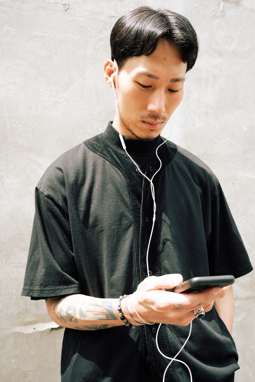 今天不希望別人打擾,於是穿了一身全黑,戴上耳機,進入自己的世界。為了讓全黑搭配更有趣,選擇了Jackman BB Shirt,棒球襯衫的異材質門襟設計與深淺不同的顏色,是讓全黑襯衫更有層次的畫龍點睛之處。