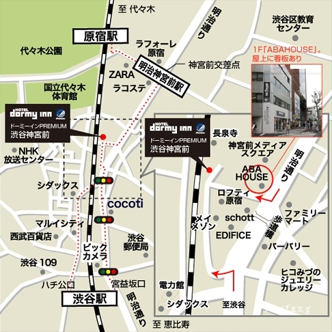 位於澀谷的「澀谷神宮高級客棧 」(Dormy Inn Premium Shibuya Jingumae),就在JR山手線原宿車站步行約10分鐘的路程。我認為可以安心入住的乾淨舒適旅館。房間內部是商務旅館式中規中矩的陳設,值得一提的是豐富的附加設施,除了基本的早餐Buffet,還包括「免費」的宵夜拉麵、裸湯浴池、自行車租借、車站接送服務等,非常適合我們這種腳勤且容易疲憊的旅客。