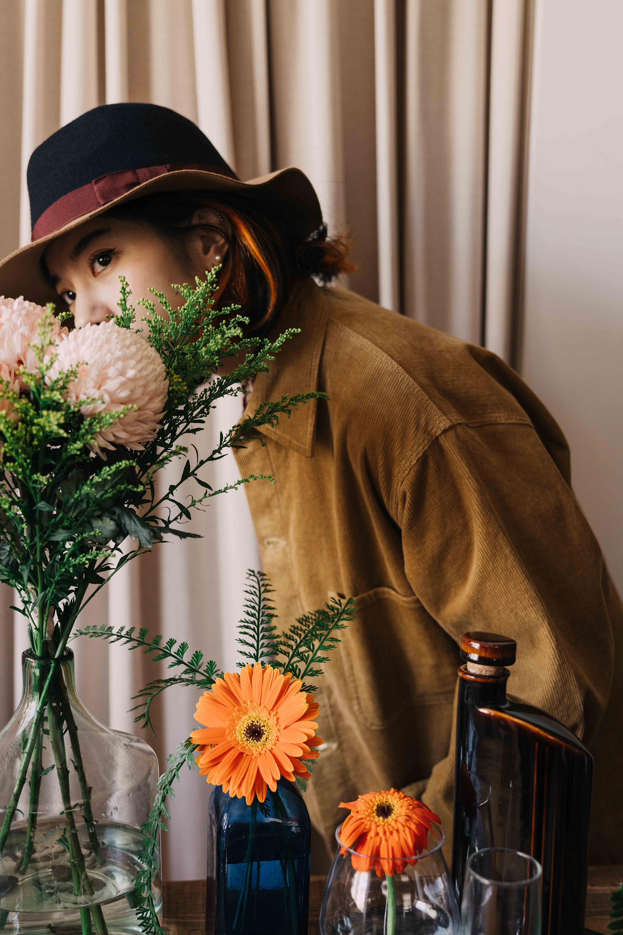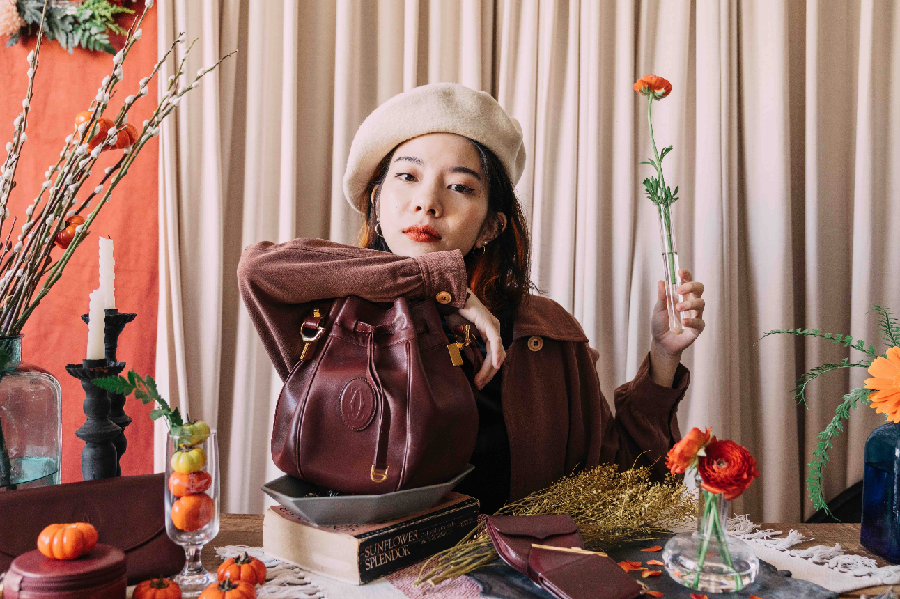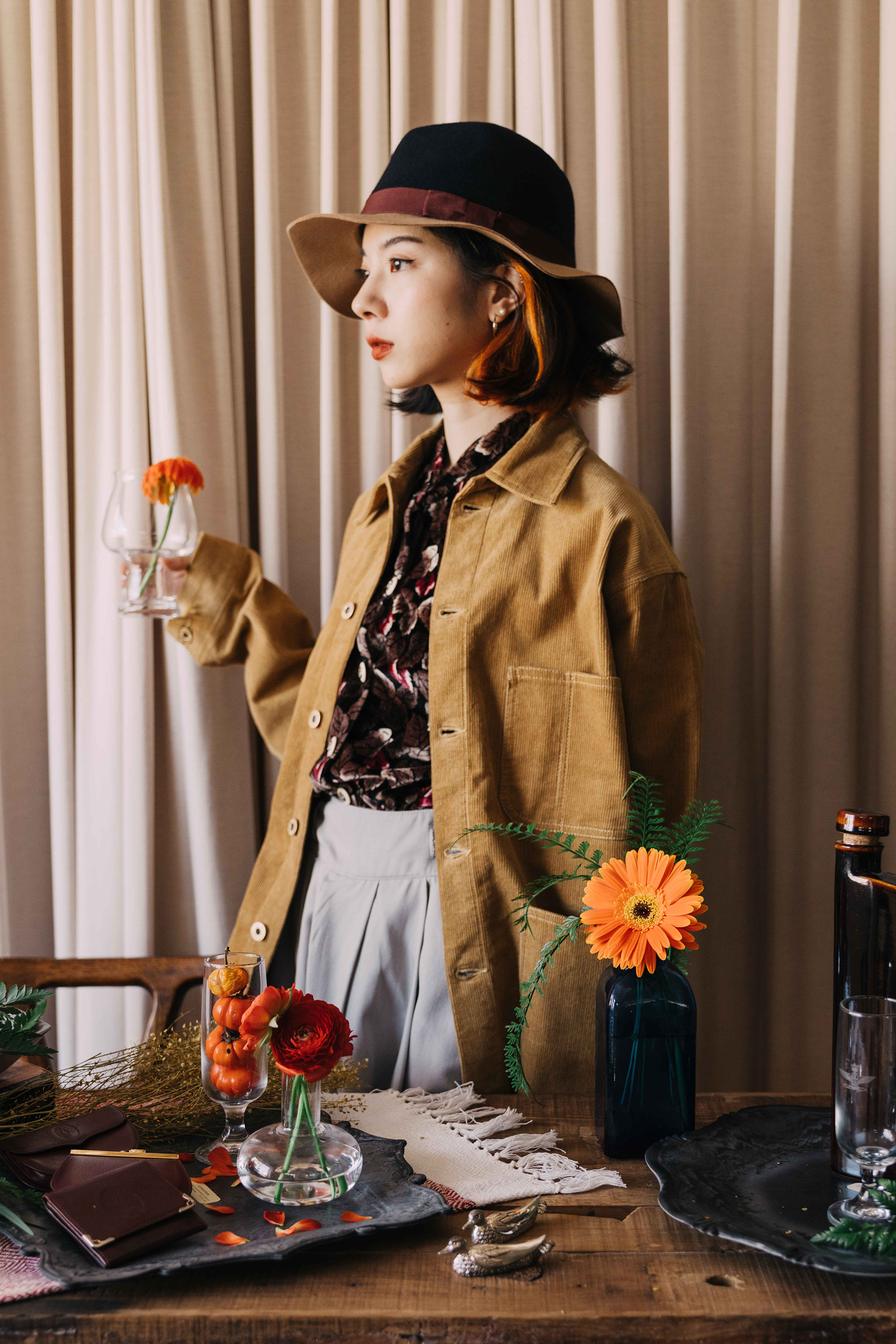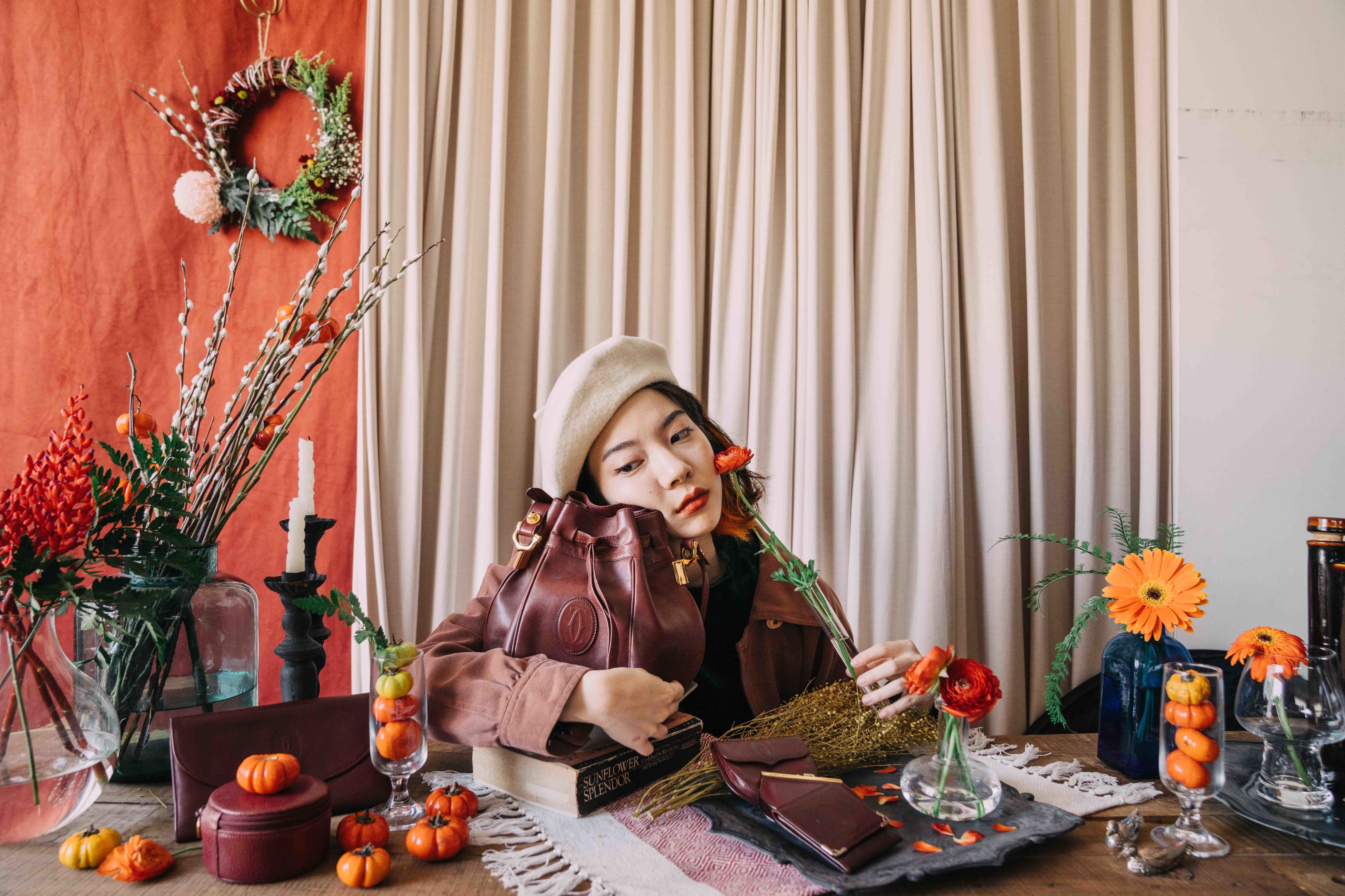 比起鮮紅色與大紅色,酒紅色的單品既不張揚又有品味,再搭載高貴又優雅的天鵝絨面料,又更能襯托出你的內斂氣質。用古著天鵝絨半高領上衣配上 YELLOW 108 棕色紳士帽,大地色的組合展現出你的穩重,配上 A ROOM MODEL 自製裙與黑色古著皮包,正式又體面。天冷時不妨穿上 Universal Overall 毛絨款外套,發揮保暖效用之餘還賦予一點點的可愛。