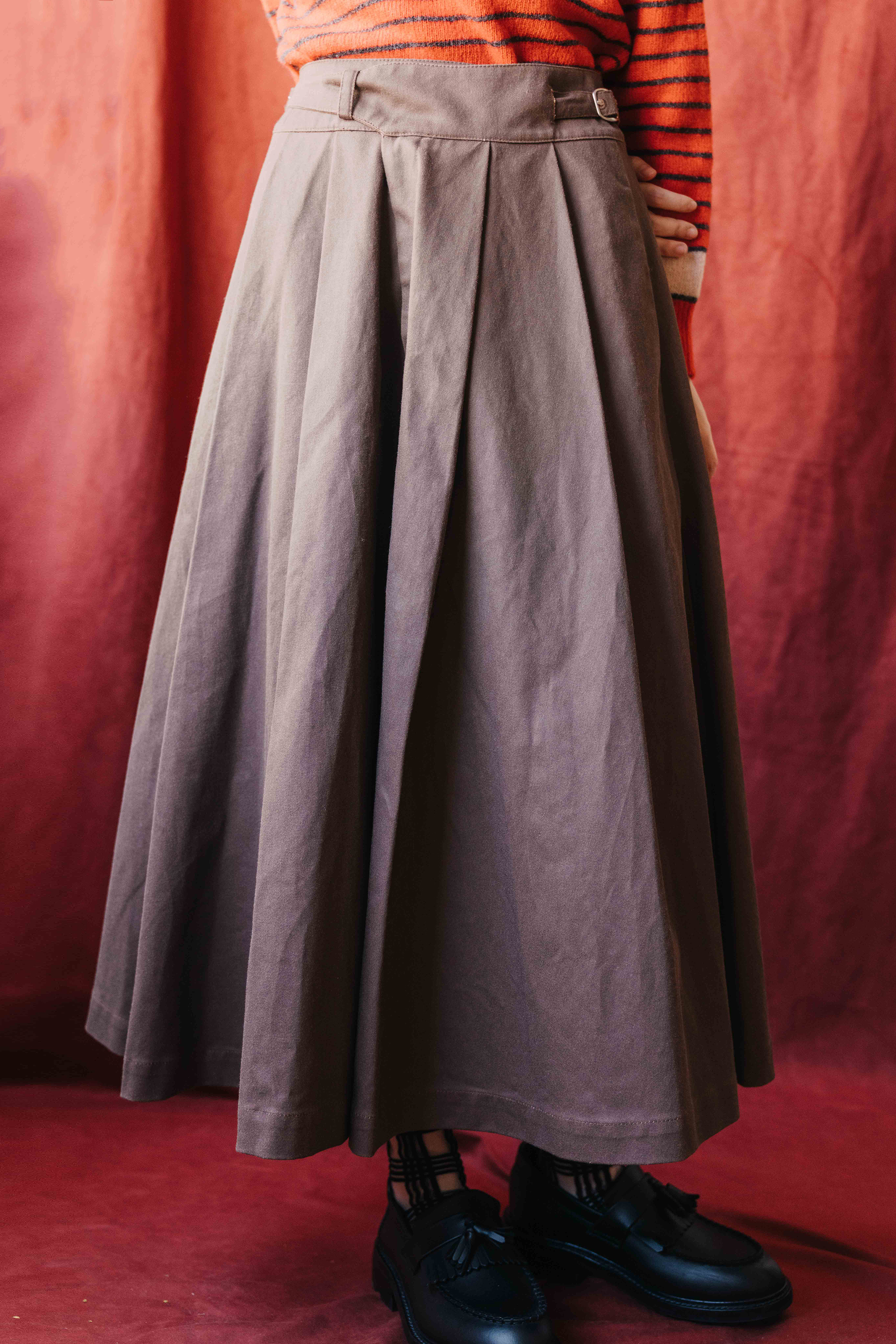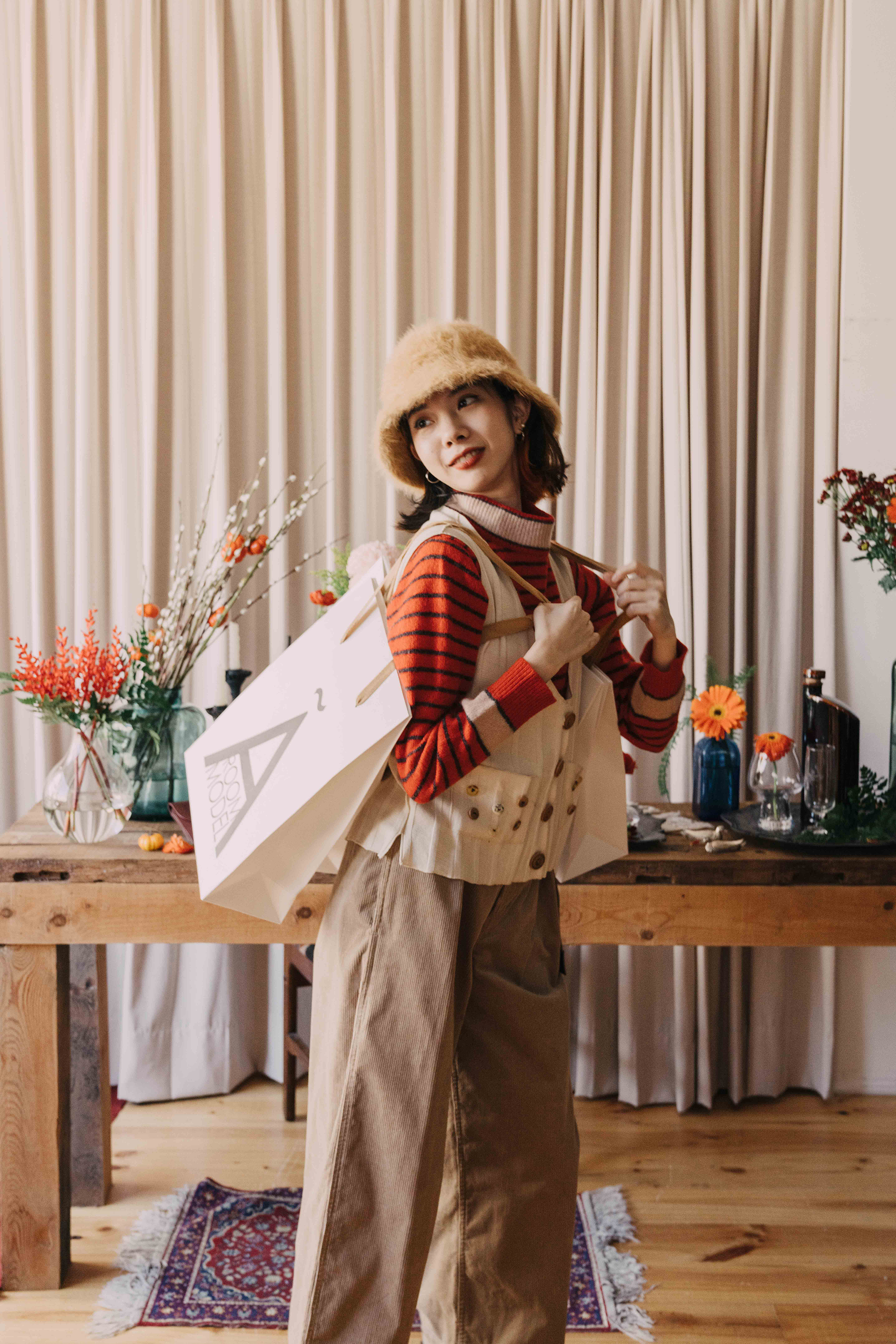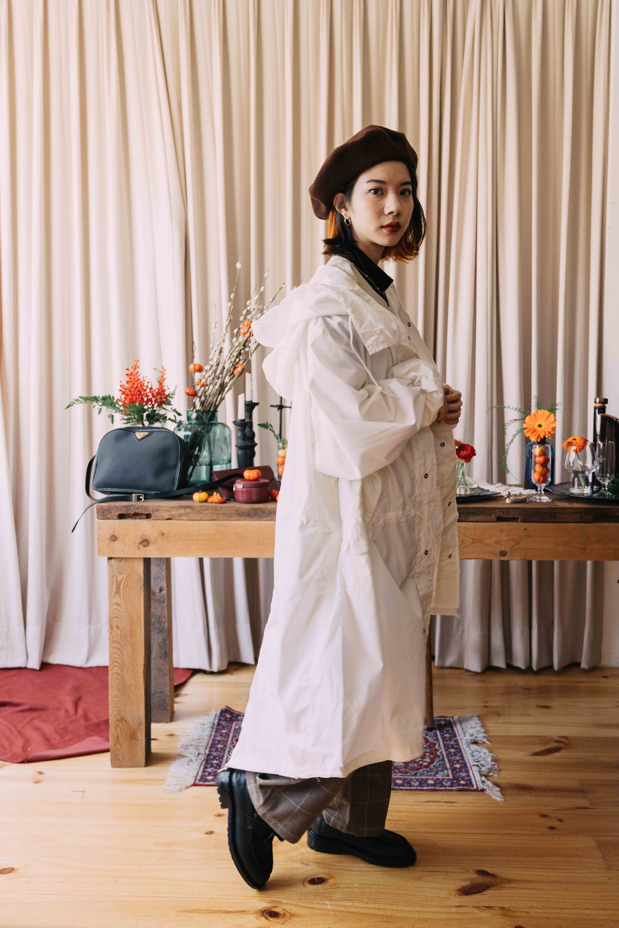 走春拜年時,總有些場合會碰上敬重的長輩,此時襯衫即是最佳選擇,搭配淺灰色的 A ROOM MODEL 自製裙,整個人自然散發出一股溫柔氣息,還可戴上來自美國洛杉磯品牌 Yellow108 的帽子,由回收羊毛手工製成,質感厚挺又優雅。